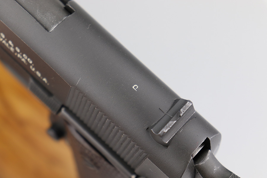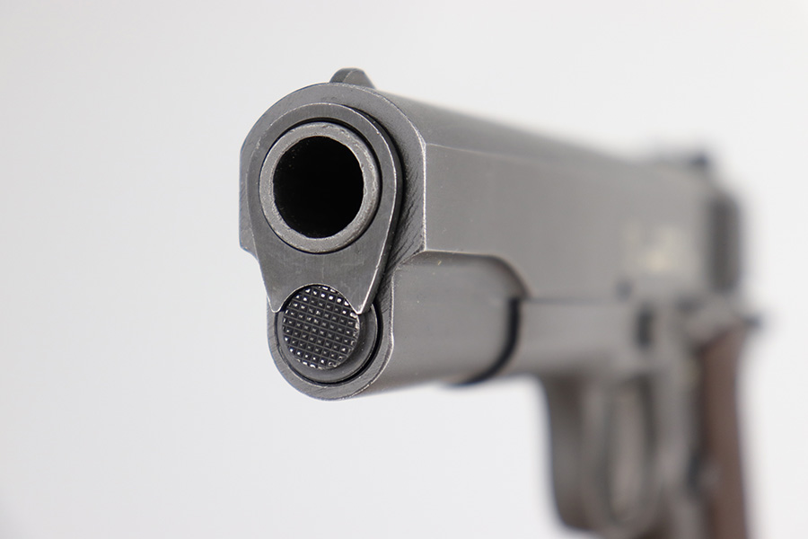 12/15/22 -This is a rare Union Switch & Signal made 1911A1 from 1943. While it is in terrific shape, the finish was professionally restored at some point. The serial dates this pistol to October of that year, one of the last few thousand made. The finish looks terrific and was very well done, and the markings are still clear. The barrel did get parkerized, but is a correct HS barrel. No concentric circles on the barrel bushing. ‘L’ marked magazine. Excellent grips and bore.