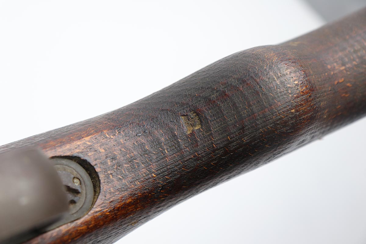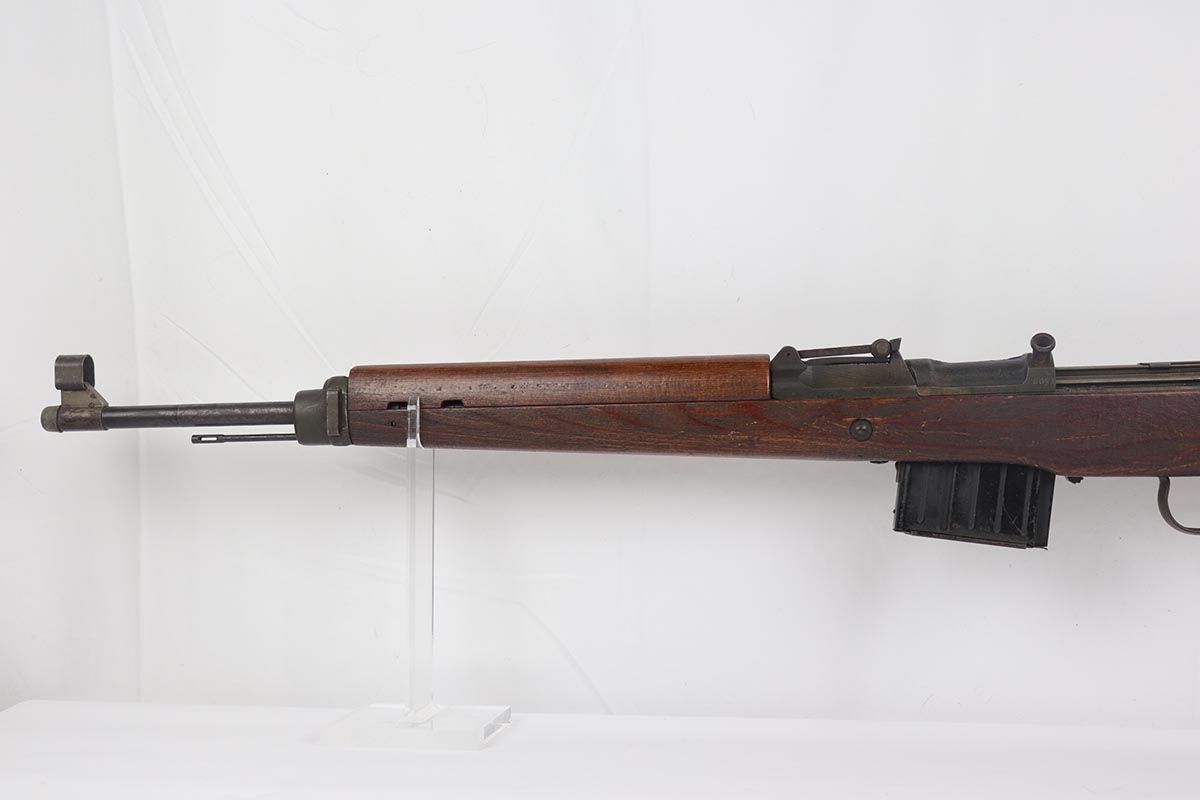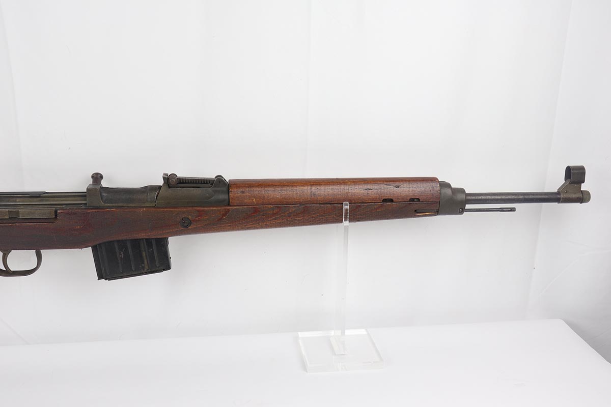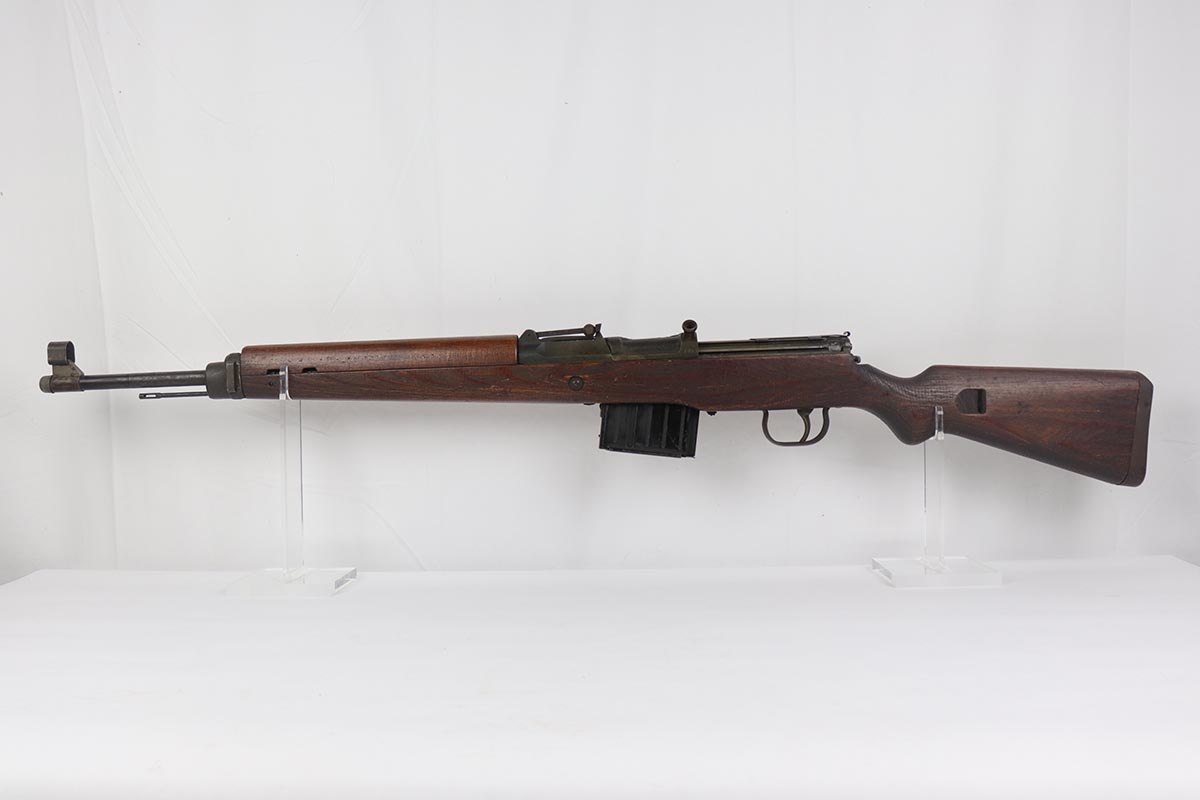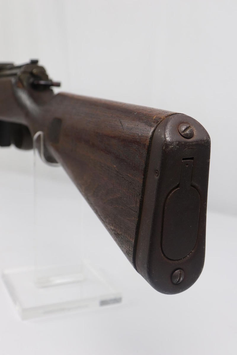 4/11/19 – This is a great example of an all matching and original Walther G43, made in 1945. This is a particularly interesting example as many parts feature a phosphate finish, some with that desirable greenish tinge to the color. There is minimal finish loss to the metal parts aside from the butt plate, but some oxidation and discoloration on the barrel and front sight. Excellent stock with multiple sharp waffenamts. Only very minor dings, no cracks or chips. Terrific bore. Magazine is ‘aye’ maker marked, with WaA843 proof. Original sight hood and cleaning rod. All matching numbers, and stock is properly unnumbered for an example this late.