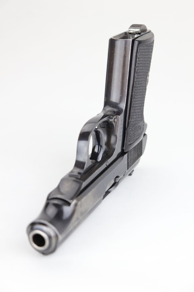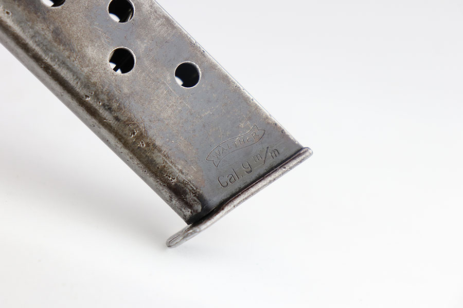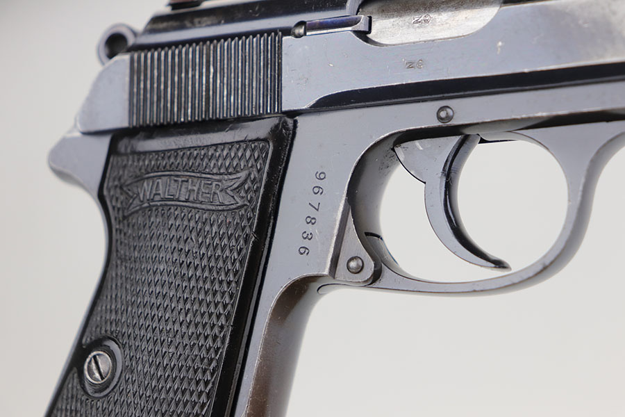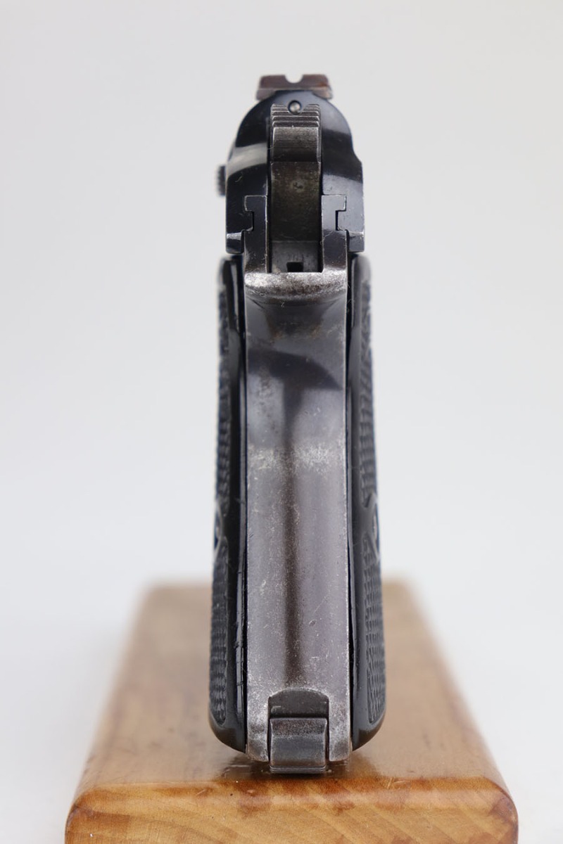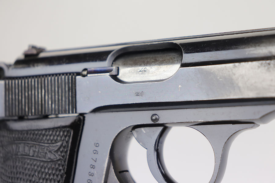 3/27/20 – This is a scarce Nazi era Walther PP chambered in the popular 9mm Kurz. Only about 3.5% of total Walther PP production was in this caliber. The straps show some browning throughout, left side slide has some freckling at the edges, but right side shows an area of notable surface corrosion. Grips shows some handling wear but no cracks. Minty bore, so this one could be a good shooter.