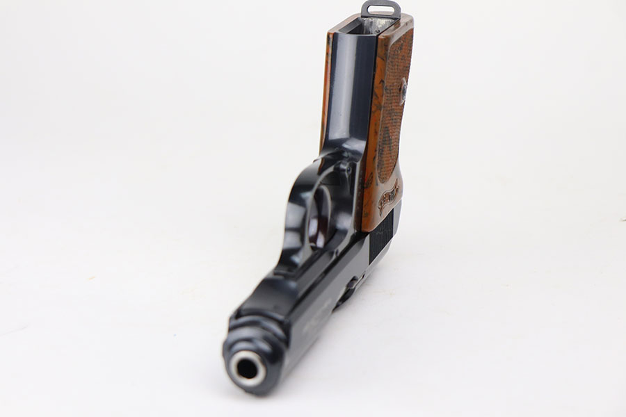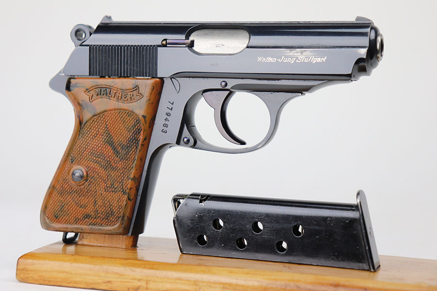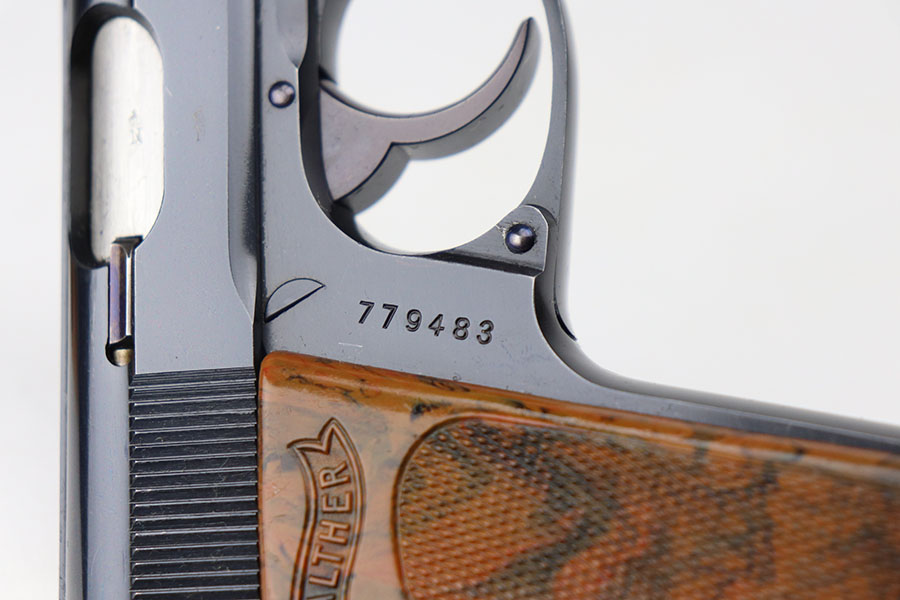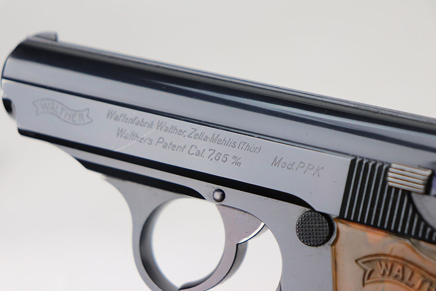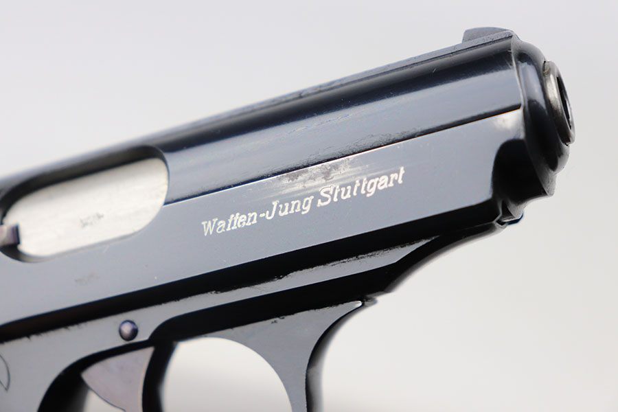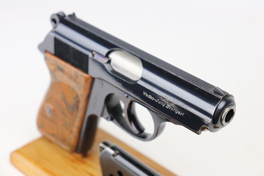 4/21/21 – This is a scarce and excellent Walther PPK from 1933 that is marked ‘Waffen-Jung Stuttgart’ on the slide, indicating it went to a private retailer in Germany. It has just a minor area of finish loss on the right side of the slide, and a thin surface scratch on the left side. Mint bore. Excellent grip with no chips or cracks. Hischier collection.