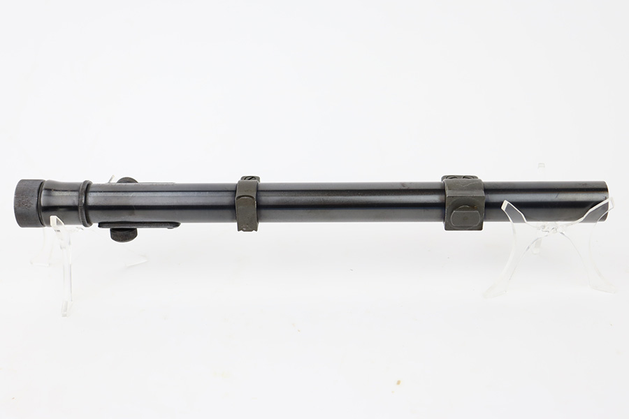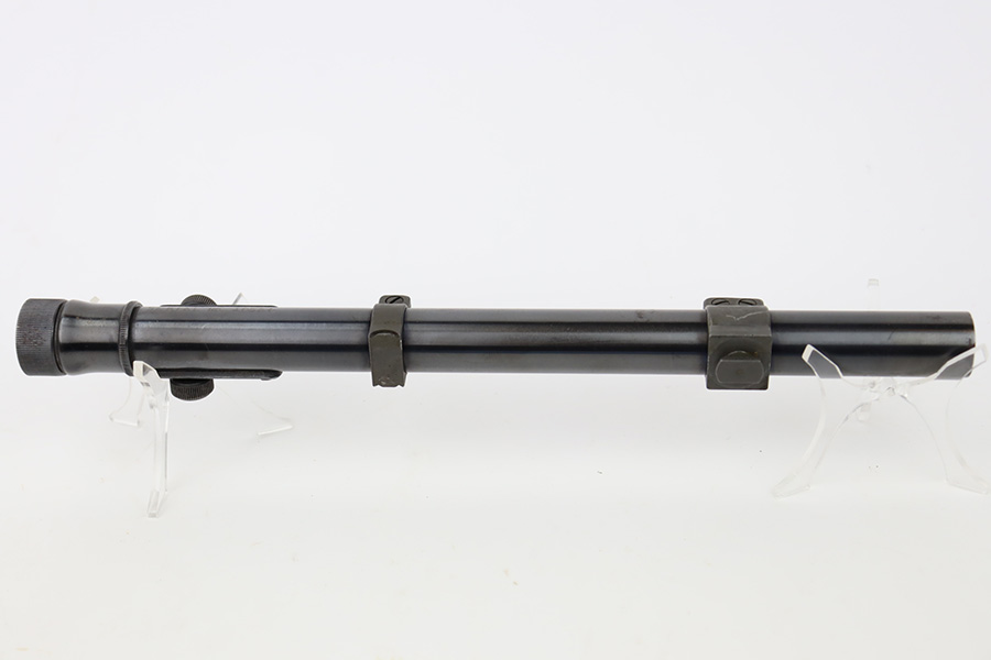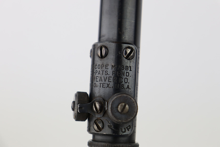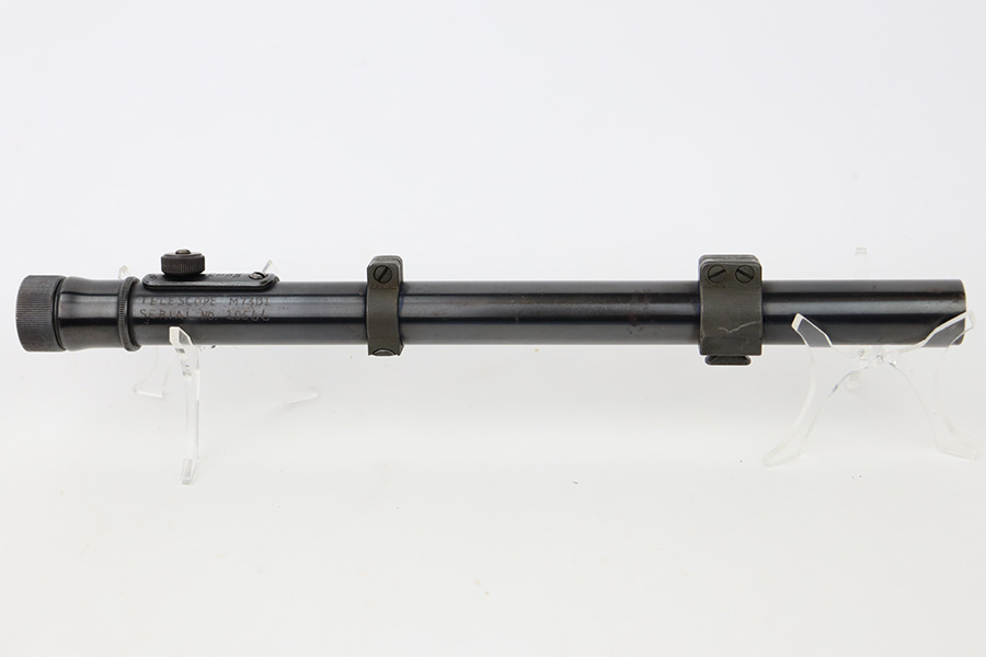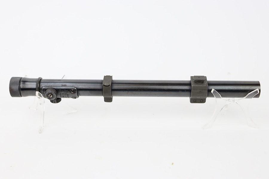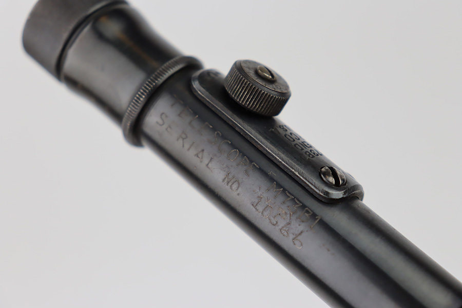 10/20/23 – This is an original Weaver M73 B1 Scope. These were used on the Springfield 1903-A4 sniper rifles during WW2. The scope is excellent with crisp, clean optics. Tiny bit of obfuscation around the edges. Exterior condition is also excellent with only minor oxidation in various areas. The serial number is hand-etched “10566”. An excellent collector rifle scope. Still has the original rings.
