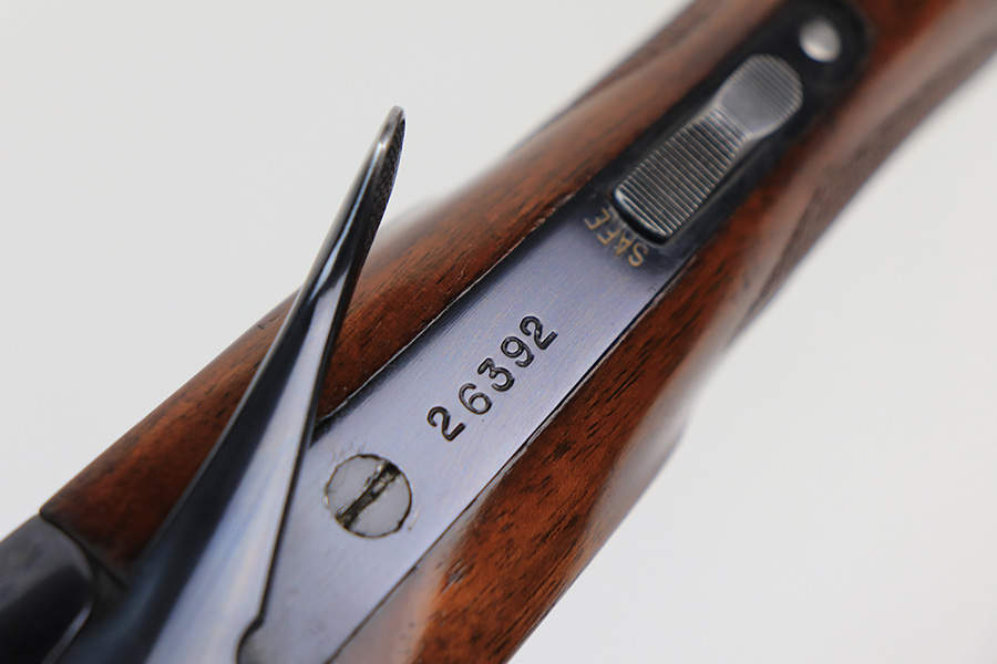 1/20/22 – This is a rare Winchester Model 21 SxS shotgun in excellent condition. Made in 1950, there are only about 32,000 ever produced. It’s all original with about 90% of the blue remaining. Wear around the high edges of the receiver, but most of the bluing loss is on the underside, in front of the trigger guard. Excellent bores. 28in barrels, 14in LOP. Excellent stock and forend with just a couple of minor surface scratches on the top of the buttstock. One barrel is modified choke, the other is IMP CYL.