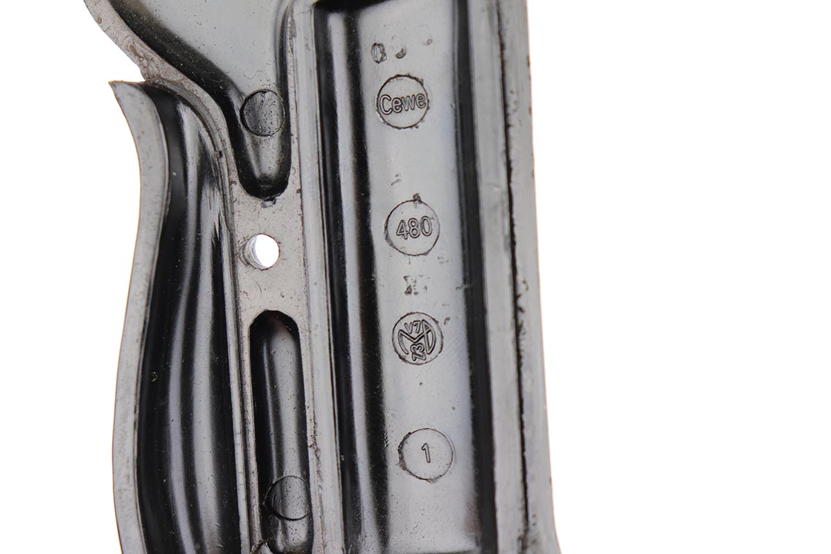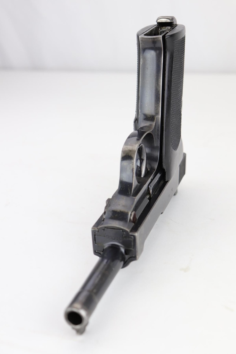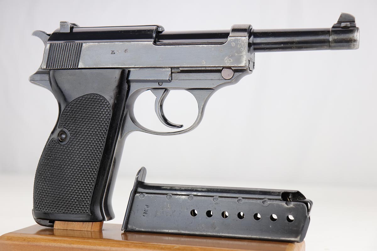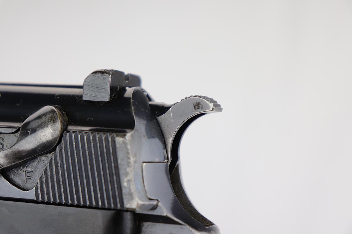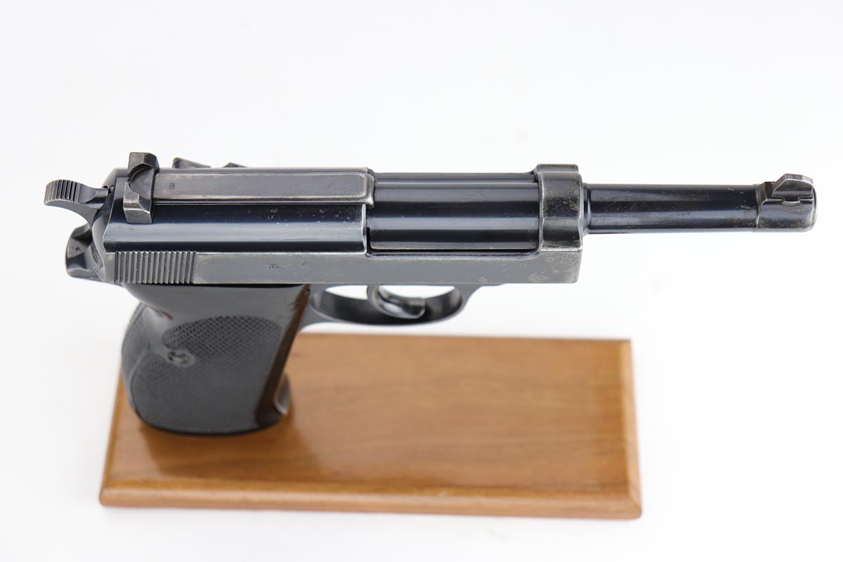 1/8/20 – This is a scarce Zero Series Walther P.38 from 1940. It’s a third variation example, one of about 10,000 produced. The pistol is all matching and original, including the grips. Magazine is not numbered. All small parts properly have Walther marking on them. The bluing is original and rates at about 75+% a smattering of finish loss on all major areas. There is also some pinpricking on both sides of the slide, mostly toward the front edge. Grips are in excellent condition. Bore is very nice too, with only minor frosting. Walther magazine. Safety/de-cocker does NOT work.