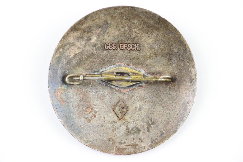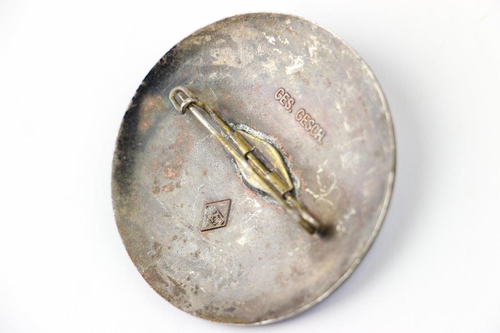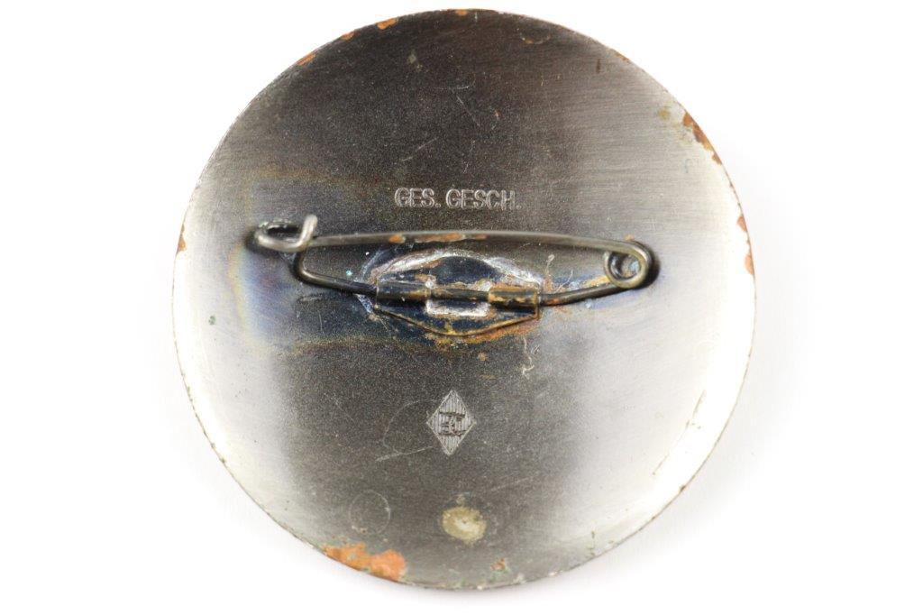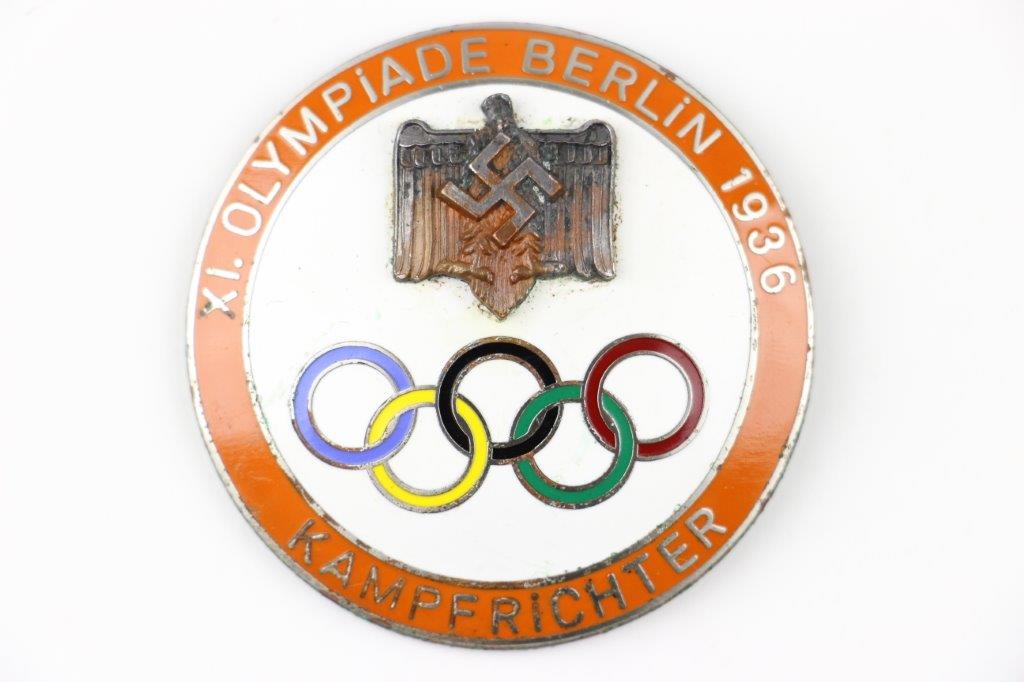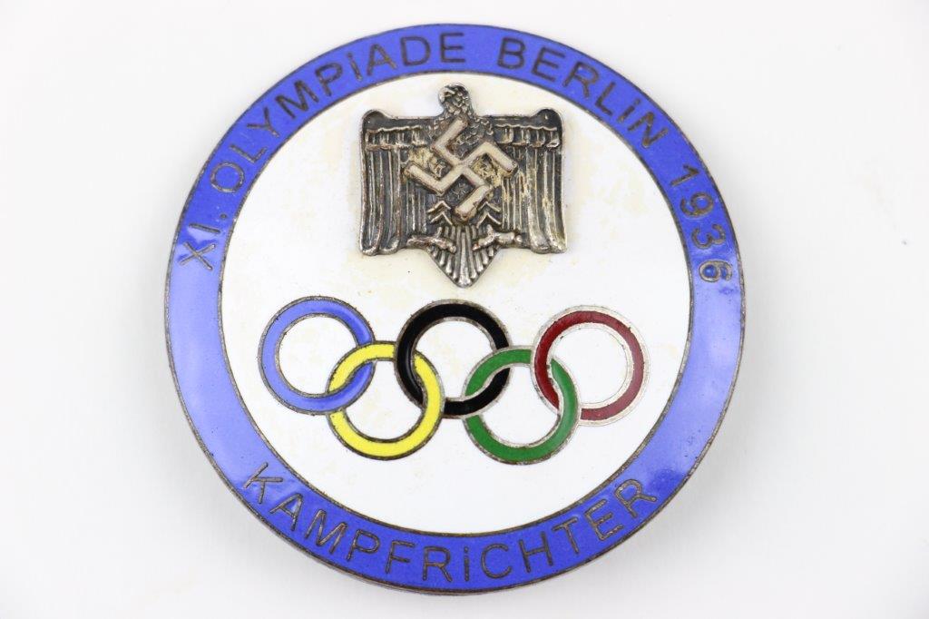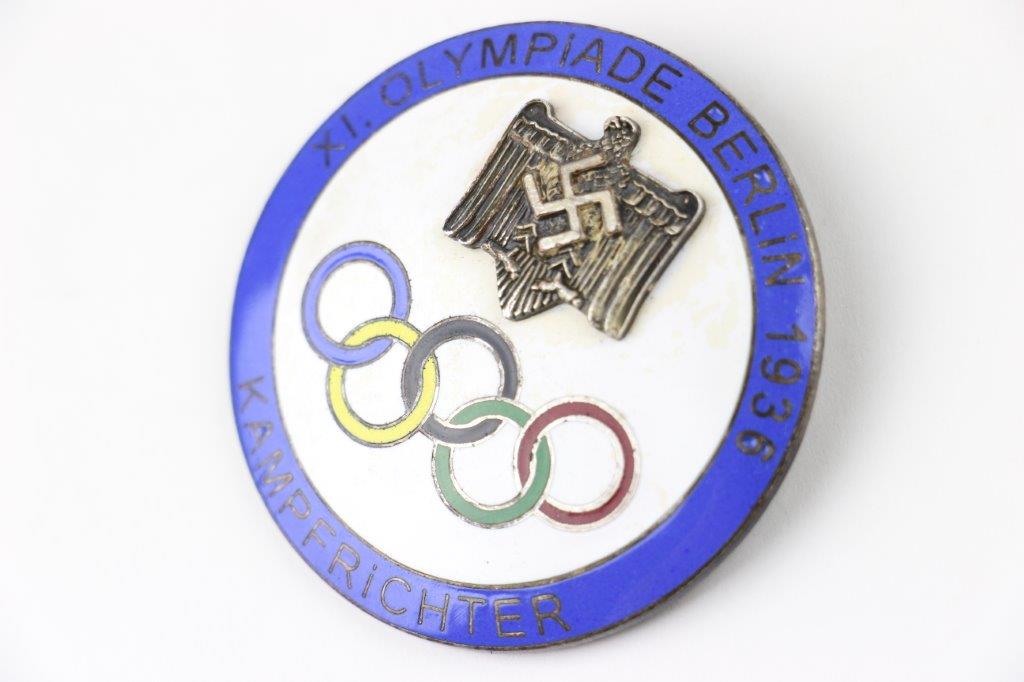 3/21/24 – This is a set of 4 WW2 German 1936 Olympic Games Referee Badges. The badges are each different colored, with each color representing a different event. All 4 are in very good to great condition. The red colored badge has had the emblem re-glued in place. The rest of the badges have secure emblems and original fastening pins intact and functional. Each badge is maker marked on the reverse by the same maker logo (this logo appears to show initials PJC). There’s some mild patina and surface wear on each badge, as shown in photos. The orange and blue badges have some mild spots of rust but this is minimal. Most of the original paint and markings are clear however, and the wear is not excessive.