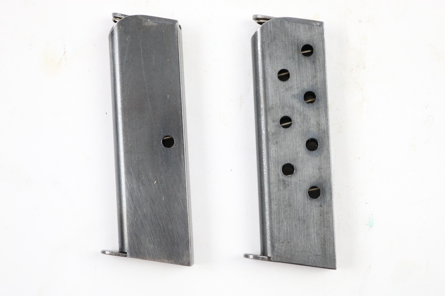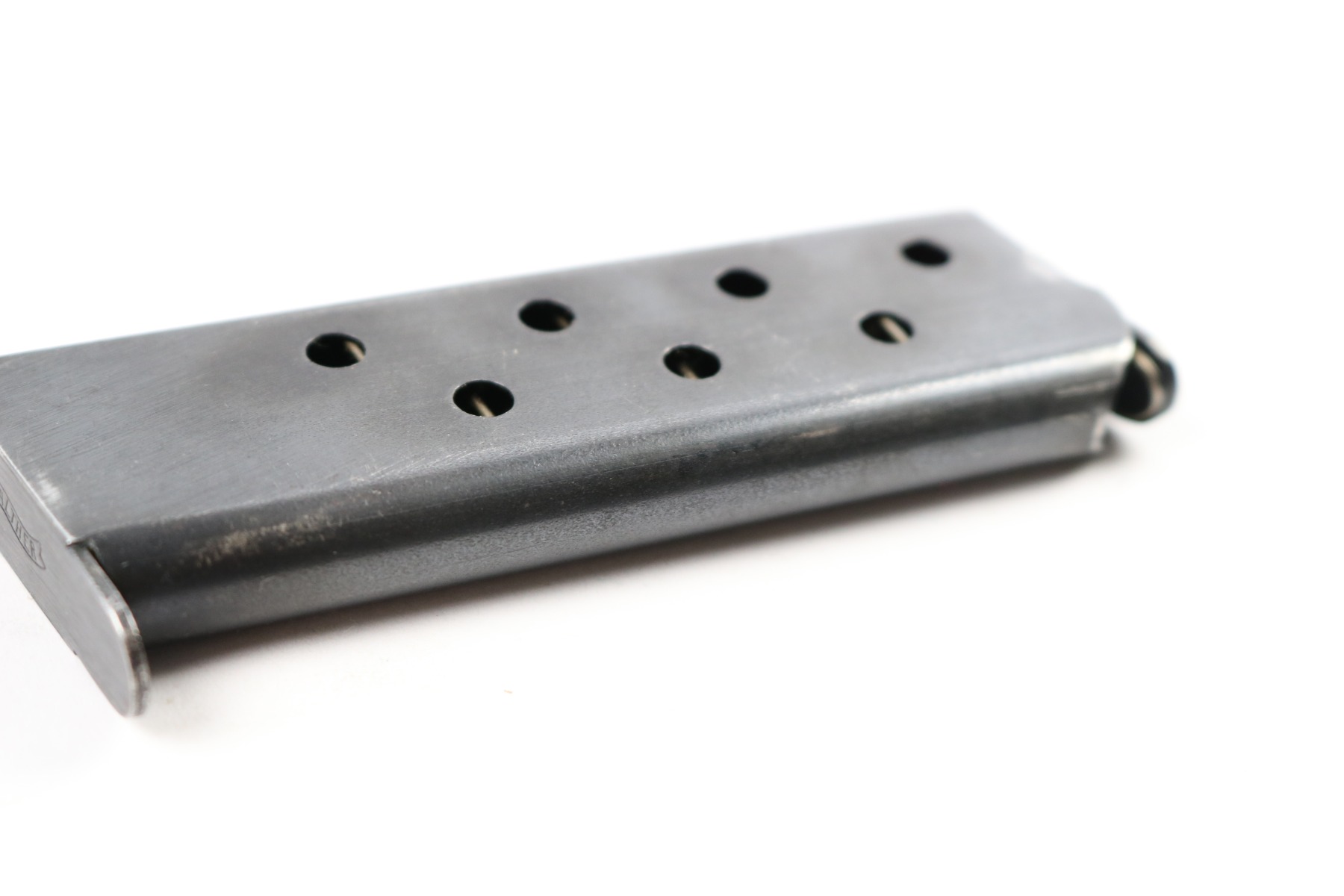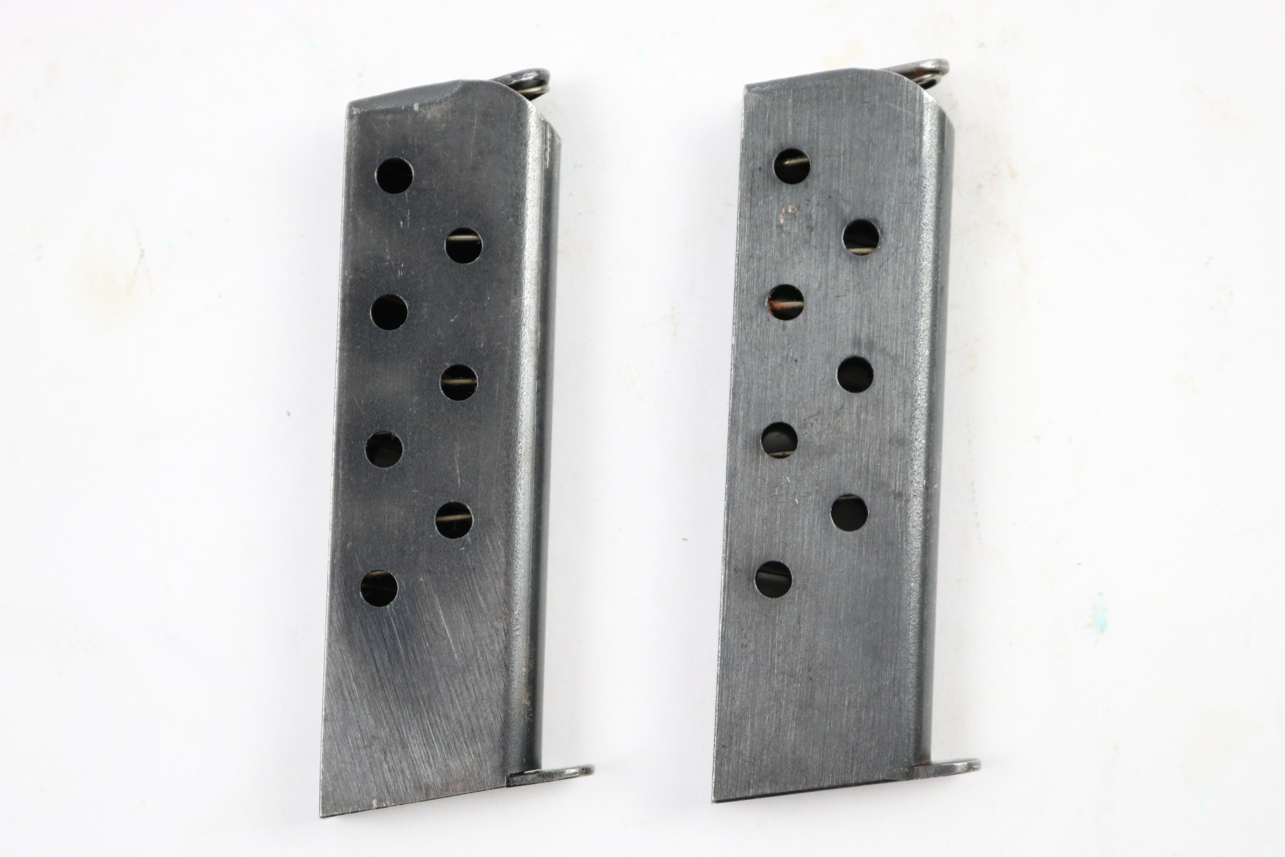 5/24/18 – This auction is for two original early / pre WW2 production Walther model 8 magazines. The magazines are both excellent and original with strong fully functional springs. They have two different styles of Walther banner stamps on their bases, but both are original to the 1920s-1930s production. No rust or pitting and guaranteed original.