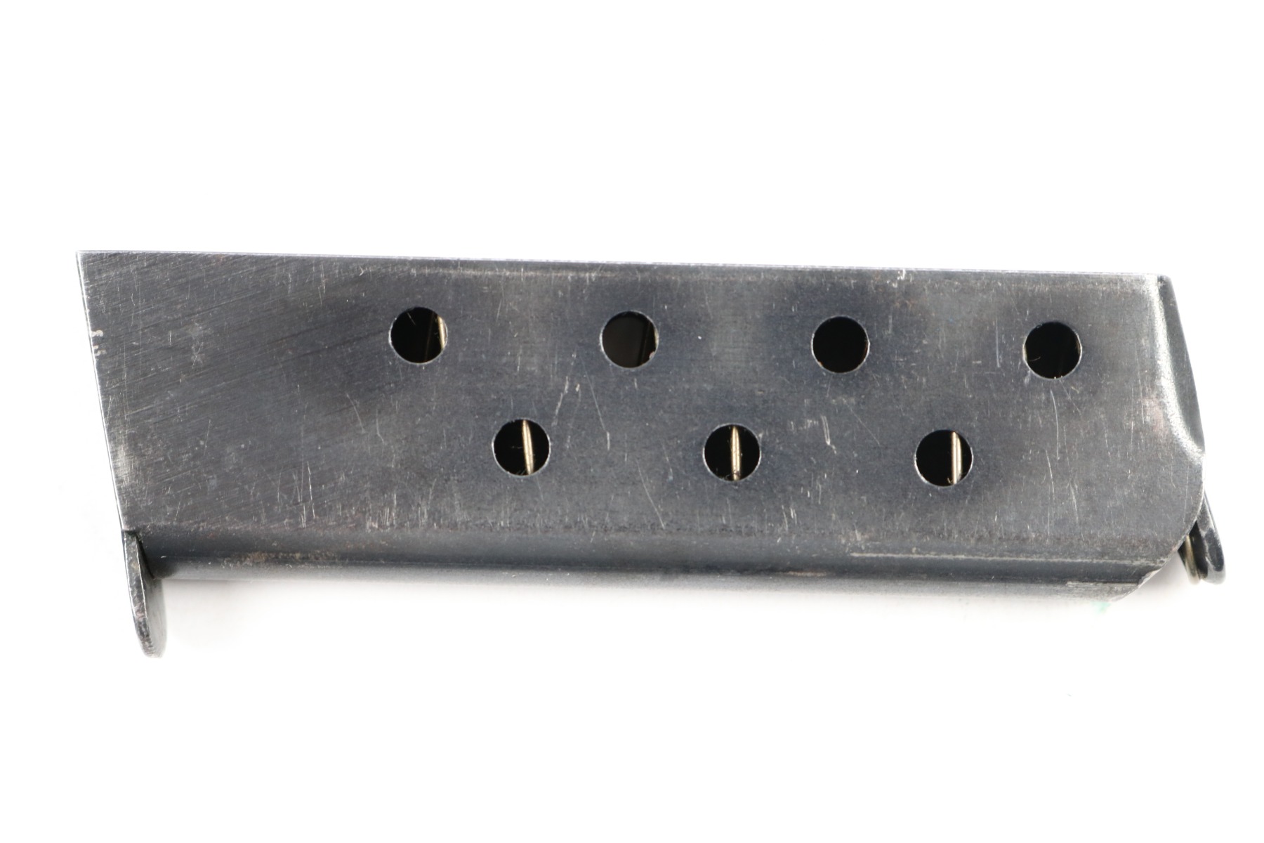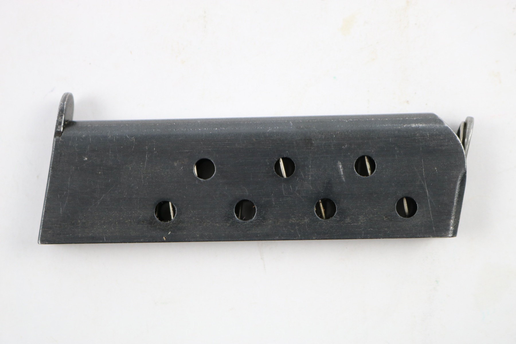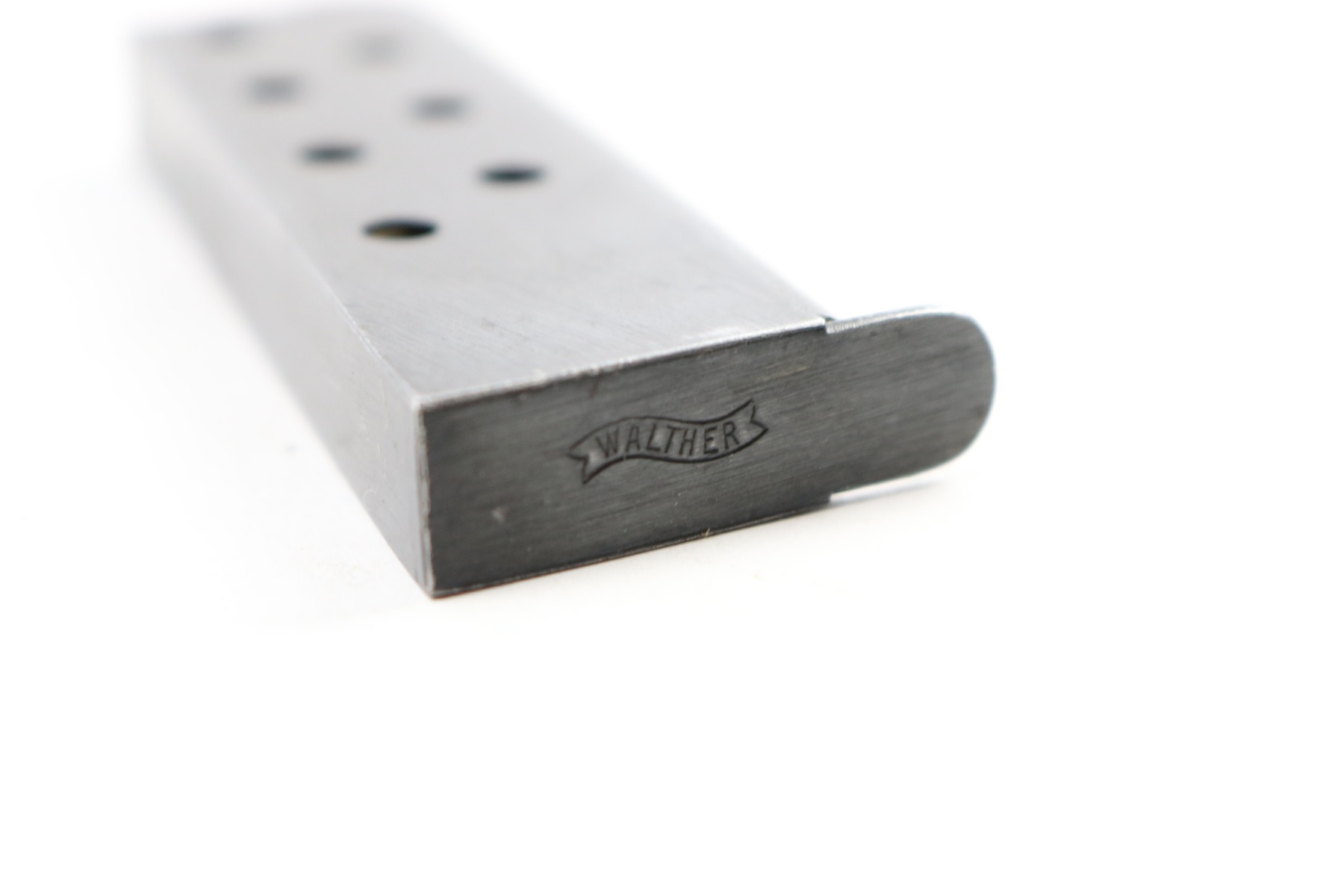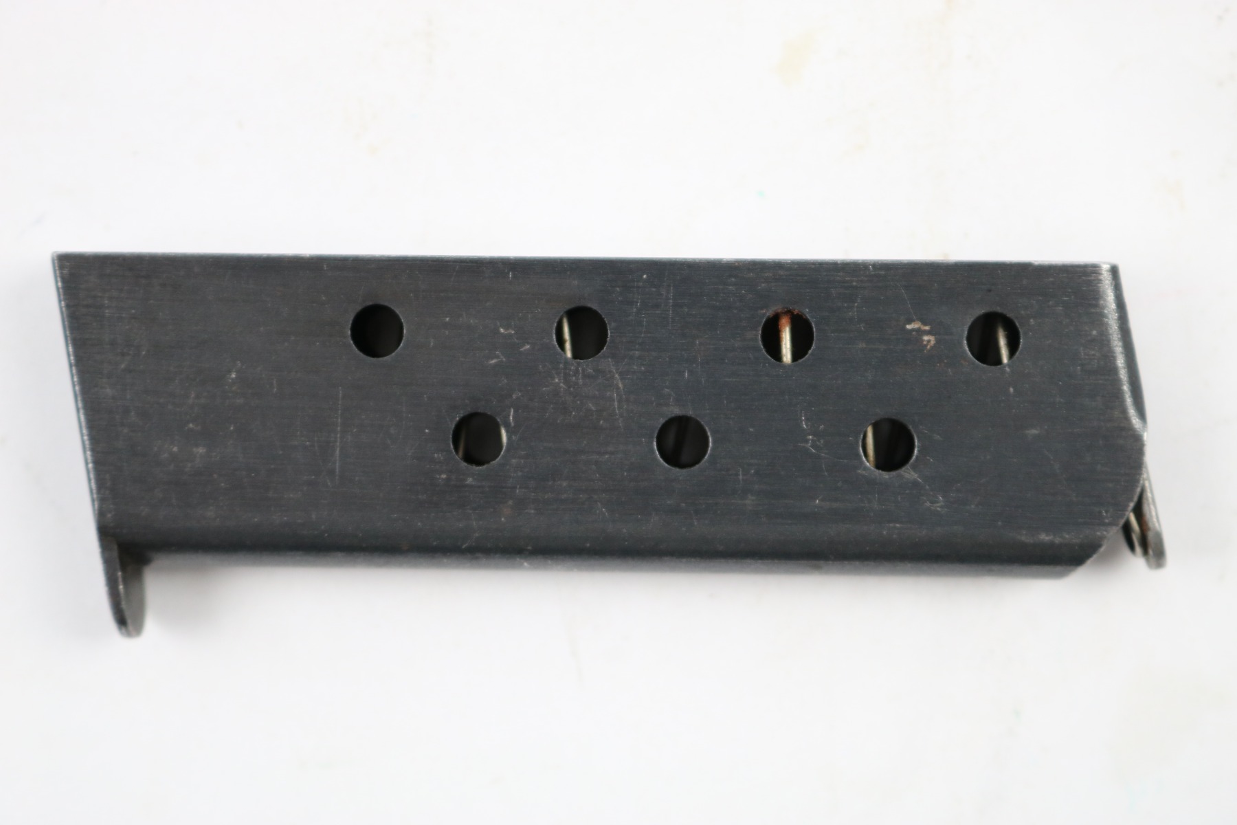 5/24/18 – This auction is for two original early / pre WW2 production Walther model 8 magazines. The magazines are both excellent and original with strong fully functional springs. They have two different styles of Walther banner stamps on their bases, but both are original to the 1920s-1930s production. No rust or pitting and guaranteed original.