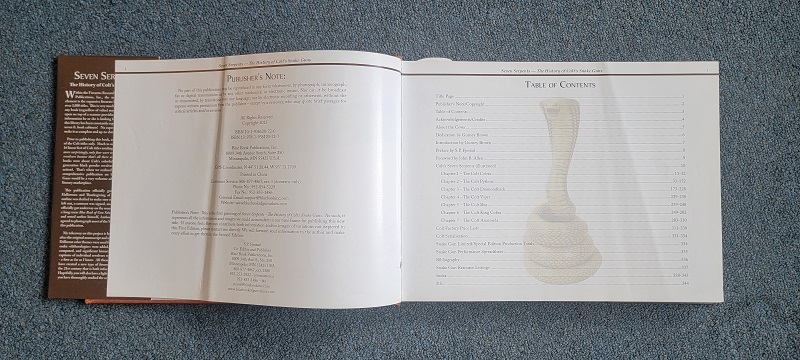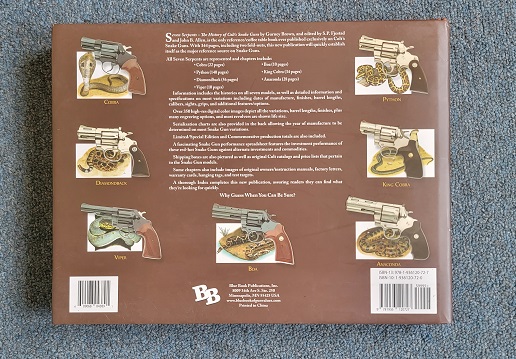 6/2/23 – This is a lightly used hardcover book (with sleeve) covering the histories on all 7 “snake model” revolvers by Colt. Contains detailed information and specifications on most variations including dates of manufacture, finishes, barrel lengths, calibers, sights, grips, and additional features/options. 350 color photos. A few of the front pages are wrinkled, but all pages are intact and in great overall condition.
