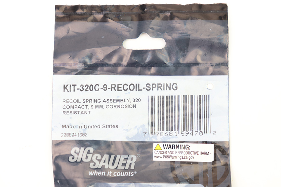 9/28/22 – This is a set of spare parts for a Sig P320 compact pistol. It includes two flat bottom magazines and a recoil spring. The magazines are both in excellent like new condition. The followers and springs are strong and functional. The recoil spring is for a still sealed in its original packaging from Sig Sauer.