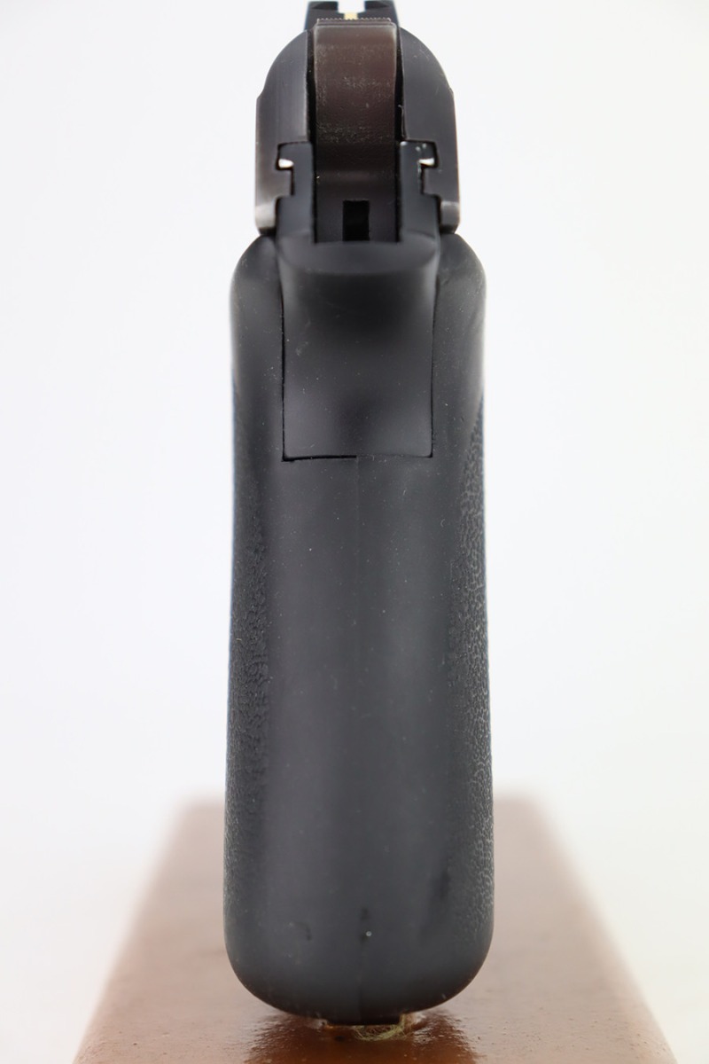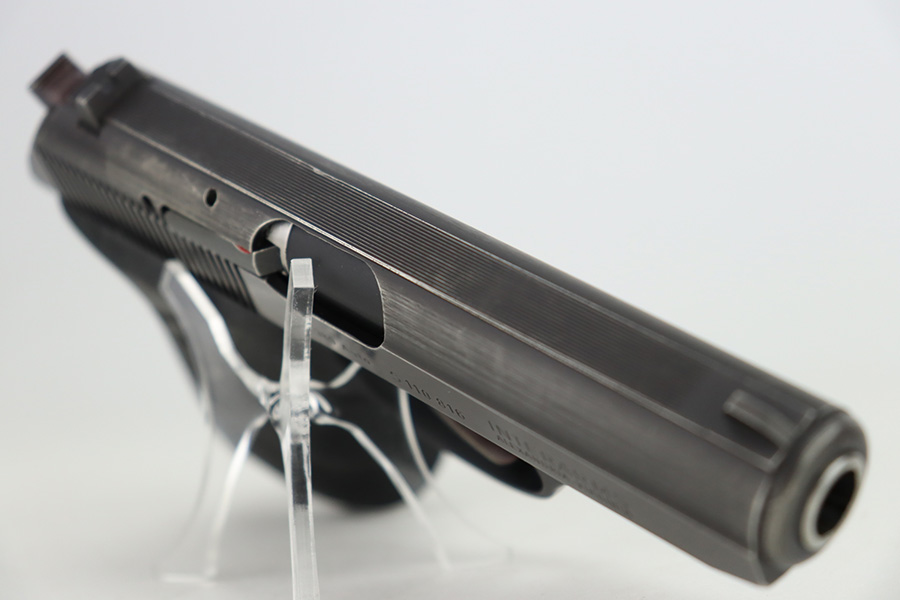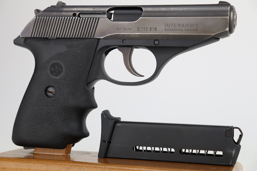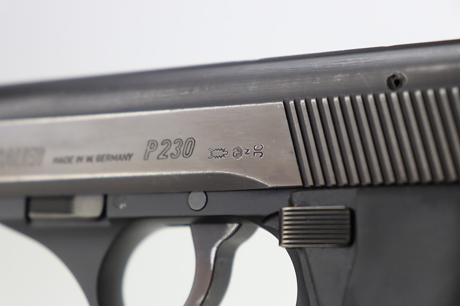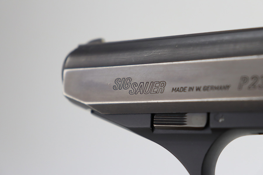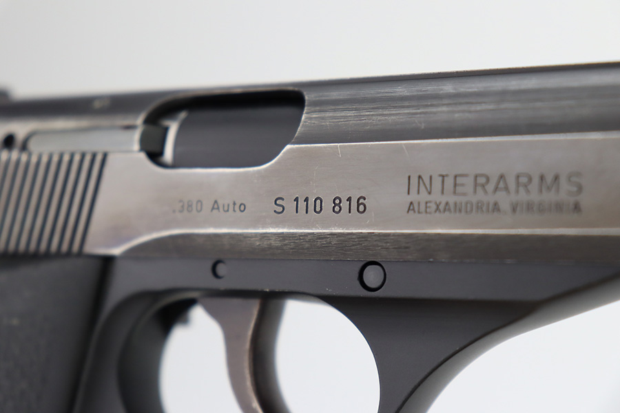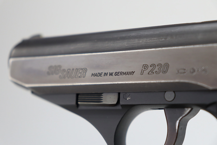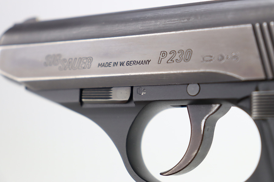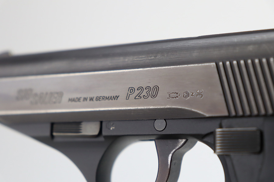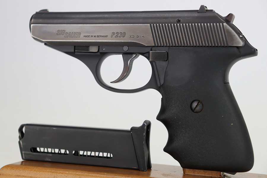 2/20/24 – This is a very nice Sig Sauer P230, manufactured in 1982 and chambered in .380 ACP. It is matching with an Interarms marking on the right side of the slide. The finish rates about 95% with very minor thinning along the slide and some tiny scuffs and handling marks here and there. Fitted with a nice black rubber Hogue grip. Comes with one proper magazine. Excellent bore with strong rifling.
