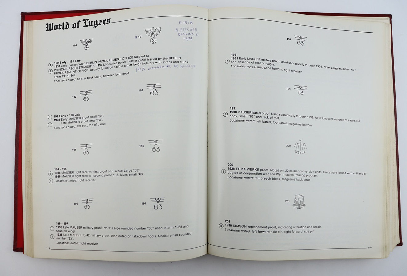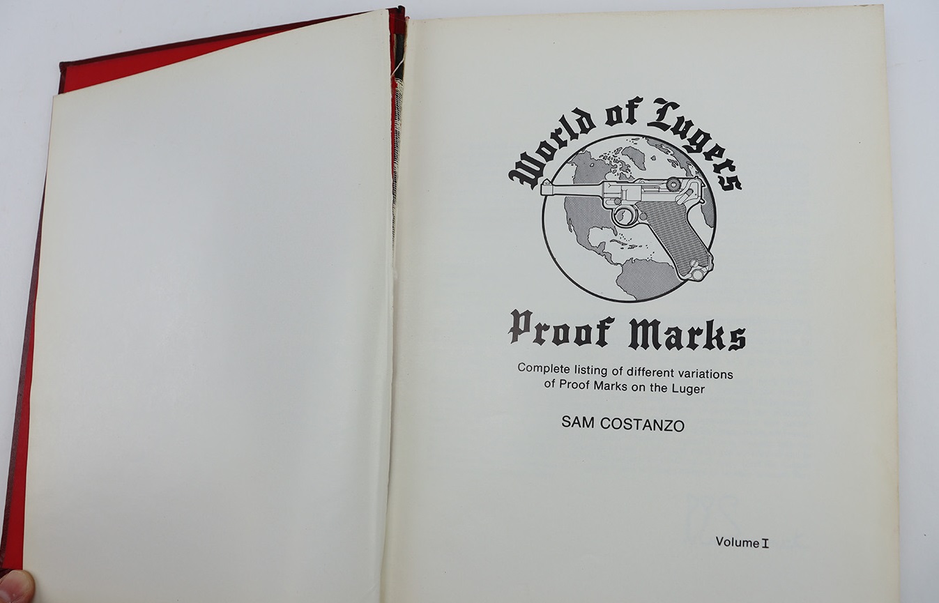 12/8/23 – This is a hardcover copy of Sam Costanzo’s “World of Lugers: Proof Marks”. Signed by the author on the interior cover page. This copy has some wear on the binding and spine of the cover, as shown in photos. Price reduced accordingly. All pages are still intact.
