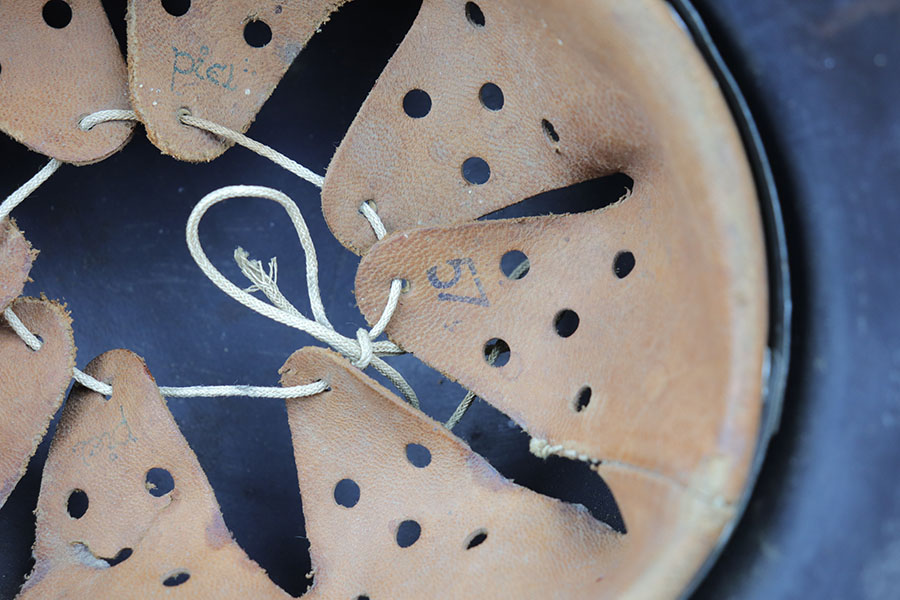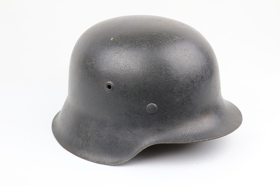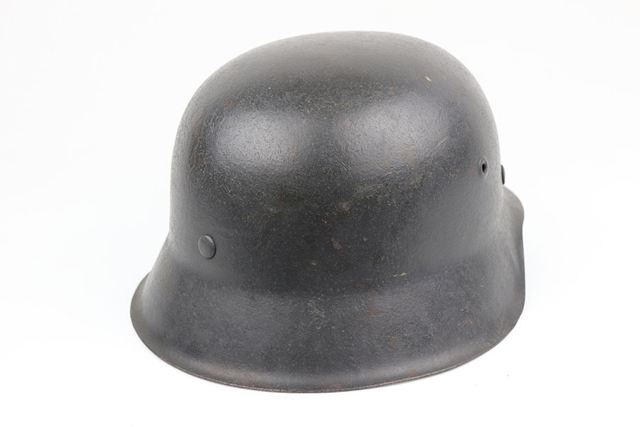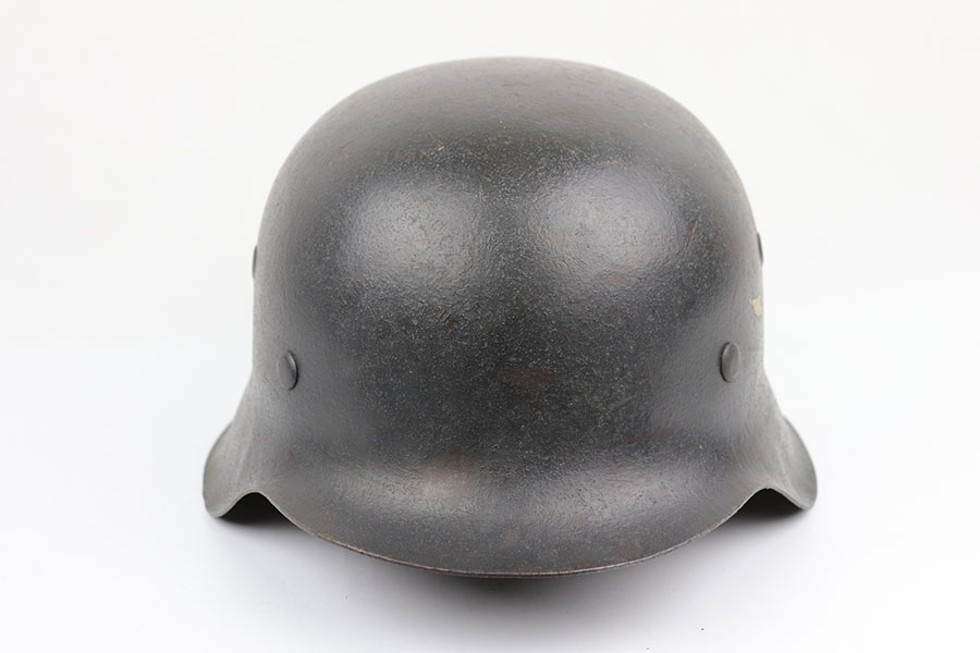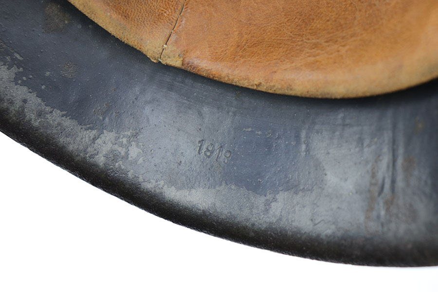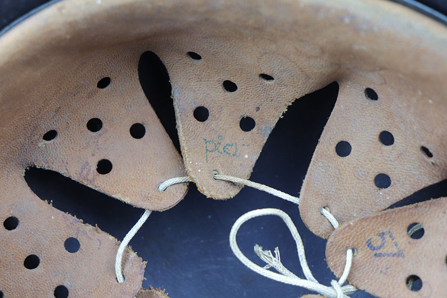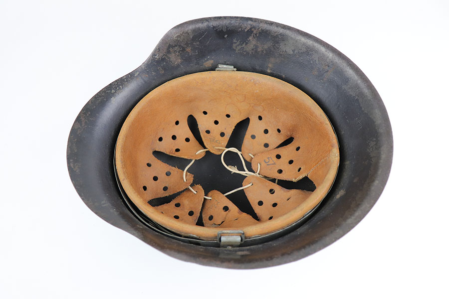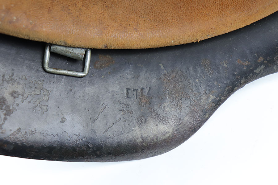 2/17/20 – This is an original WW2 Luftwaffe helmet, model 42. The helmet has a luftwaffe decal on the left side of the shell, with about 90% of the decal in tact. There is wear / textured patina throughout the shell on both the external and internal sides – but mixed in with the original painted finish. The interior of the shell is ET maker stamped with size 64 and lot number 1818. The original leather liner is in great condition with some light / normal wear around the edge of the liner. Overall a nice, straight forward piece.