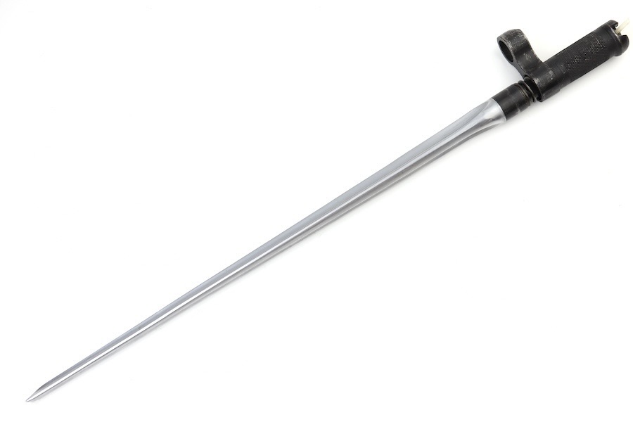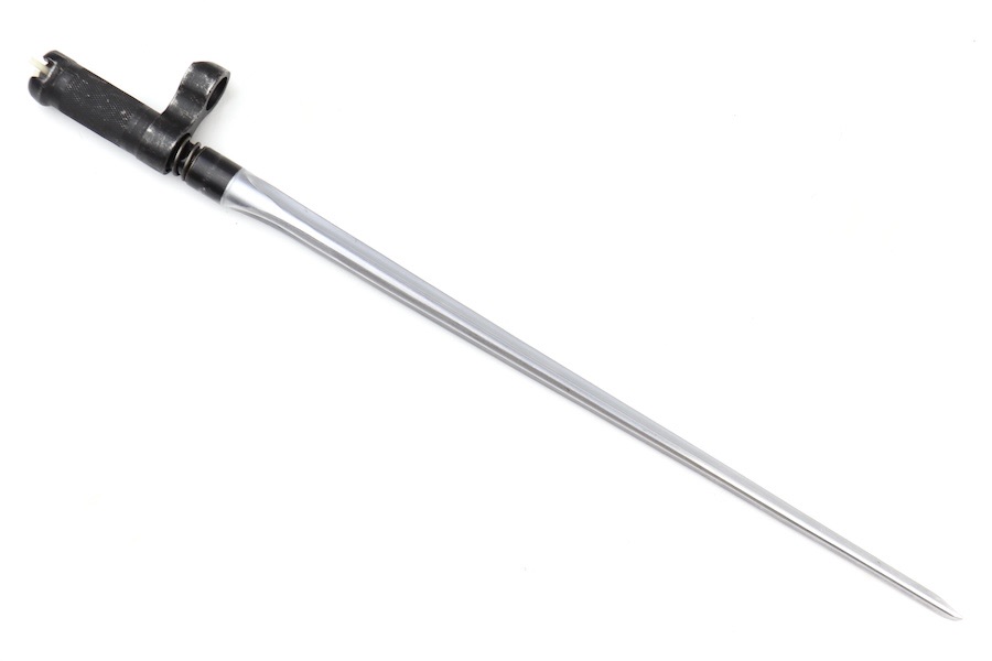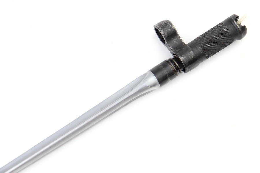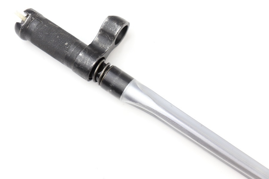 12/13/23 – Excellent and original condition SKS spike bayonet. Spike has little to no outer finish loss, socket only has light edge wear with no rust or pitting. There is a zip tie through the socket just to keep the spring from flying out.