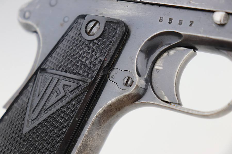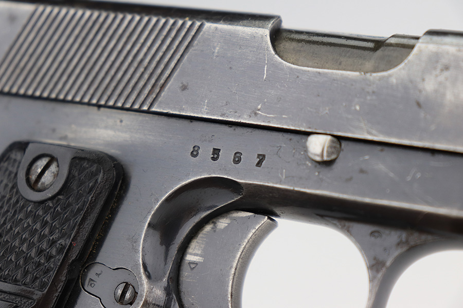 1/17/23 – This is a fair example of an early Radom VIS 35 possibly issued to the Nazi Navy during WW2. This is an early variation with 3 levers and a slotted frame. York’s book on Radoms states many of the early pre-alpha examples with blued barrels and removed lanyard ring went to the Navy, and this one fits those characteristics. This one is all matching and original, but shows thin finish on both sides of the slide and especially the front strap. Excellent black grips with only minor handling wear. The bore has strong rifling but some frost and freckling in the grooves. The magazine appears to have a waffenamt on the toe but it is covered up by some surface rust that the buyer can likely clean up a bit. Proper mechanical function, including the de-cocker.