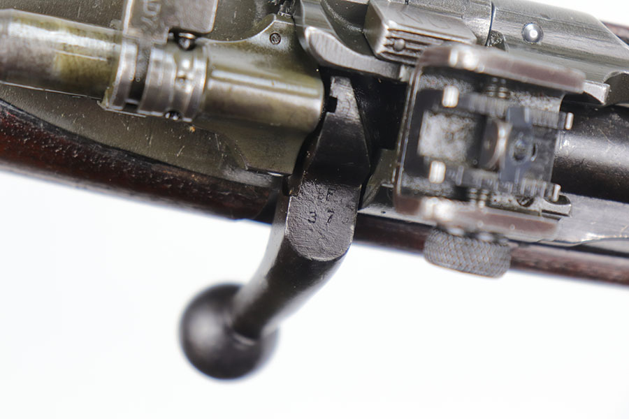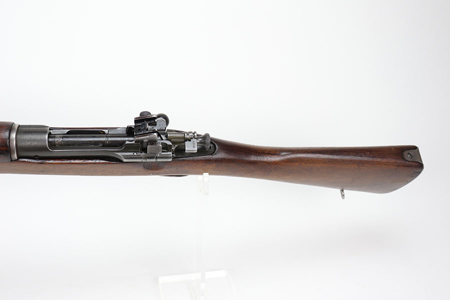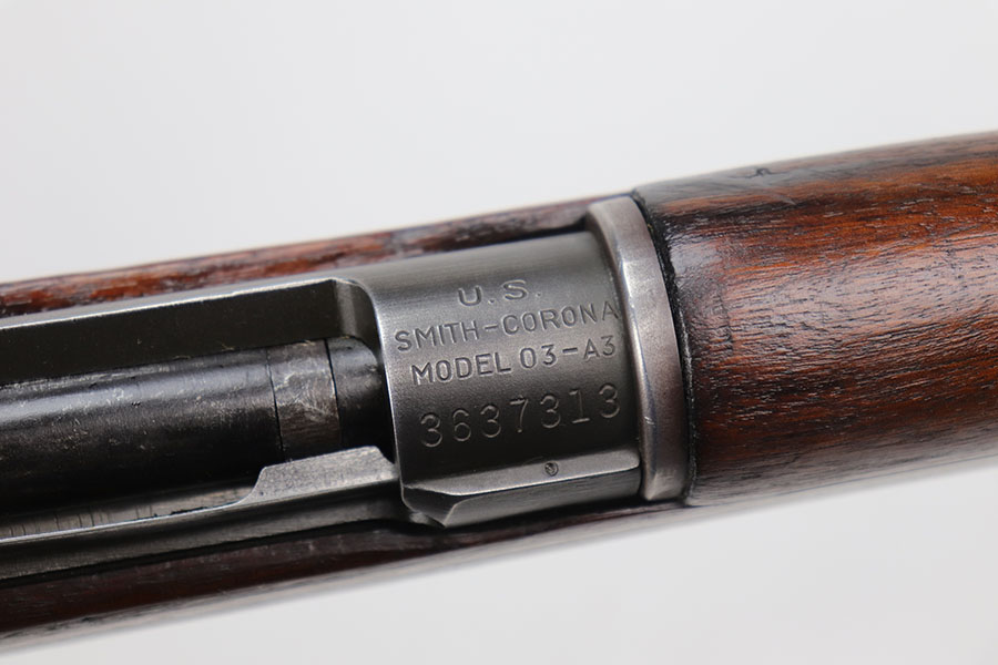 11/12/20 – This is an original Smith-Corona 1903-A3 rifle from World War II. Barrel is SC marked with date of December, 1942. Original finish on the metal parts shows general thinning, with the most pronounced wear on the trigger group. Stock is in excellent condition with no major cracks or chips. Faint circle P proof on the wrist, it’s possible the stock was lightly sanded. Bore has pronounced rifling but frost throughout.