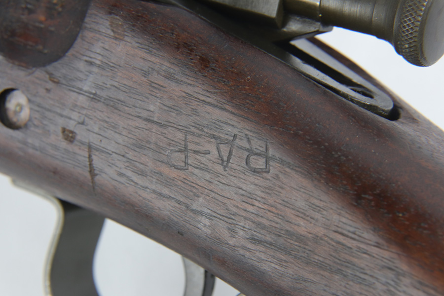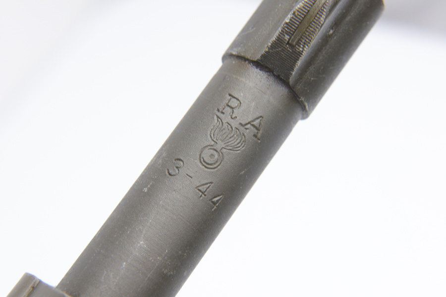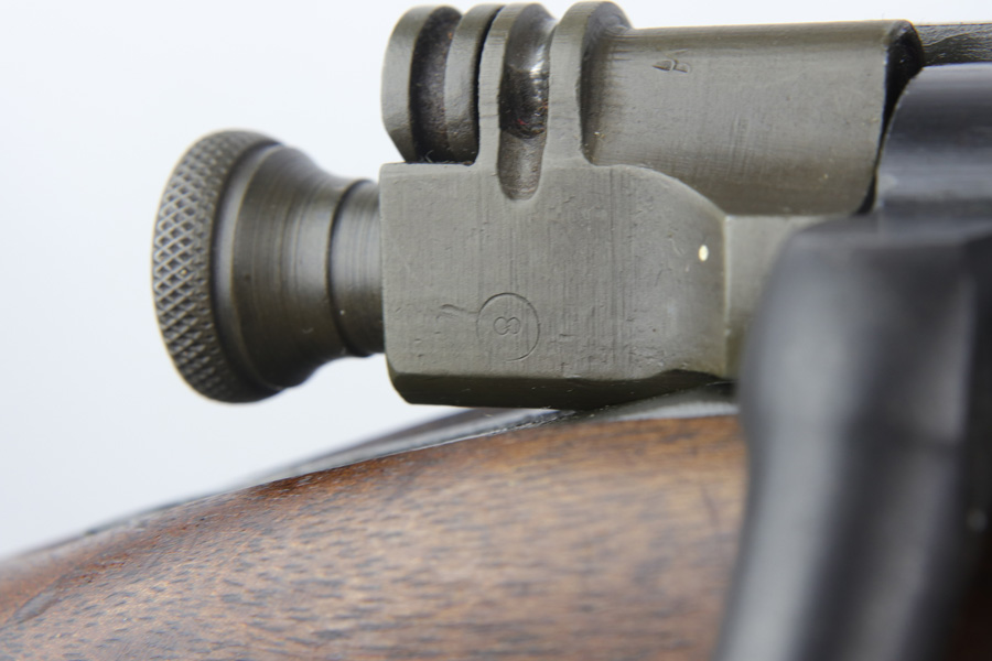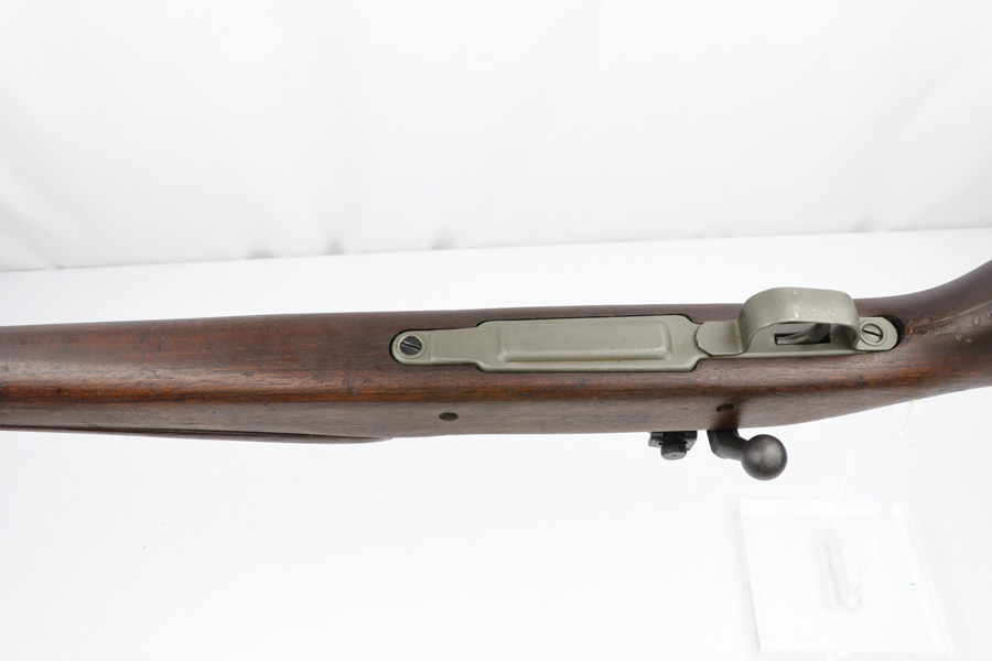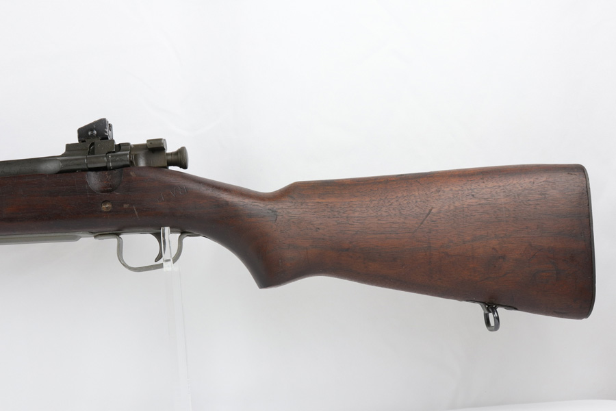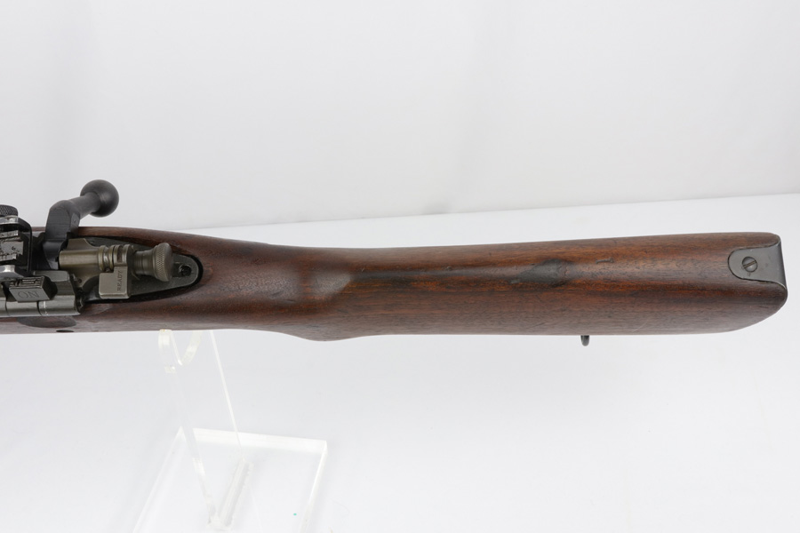 12/7/18 – This is an original Smith Corona model 1903-A3 rifle that was used in WW2, and then later rearsenaled in 1944 by Remington at the end of WWII. The metal parts are in excellent condition, with only some brown patina on the bolt. The bore is minty as well – shiny with good rifling and only a hint of residue. The barrel is Remington Arsenal stamped with a U.S. flaming bomb and ’44 date. The stock is also Remington Arsenal stamped. Guaranteed original and fully functional.