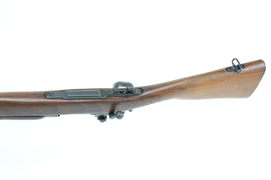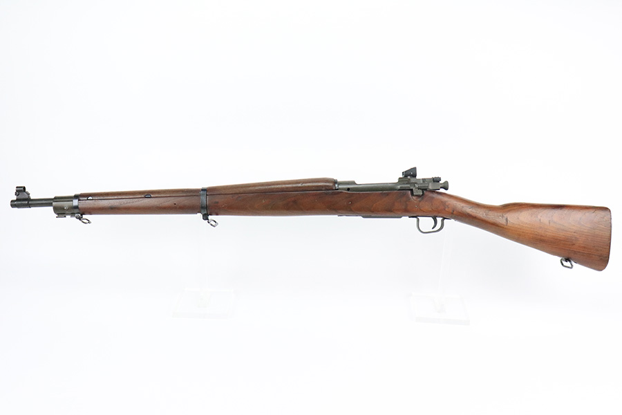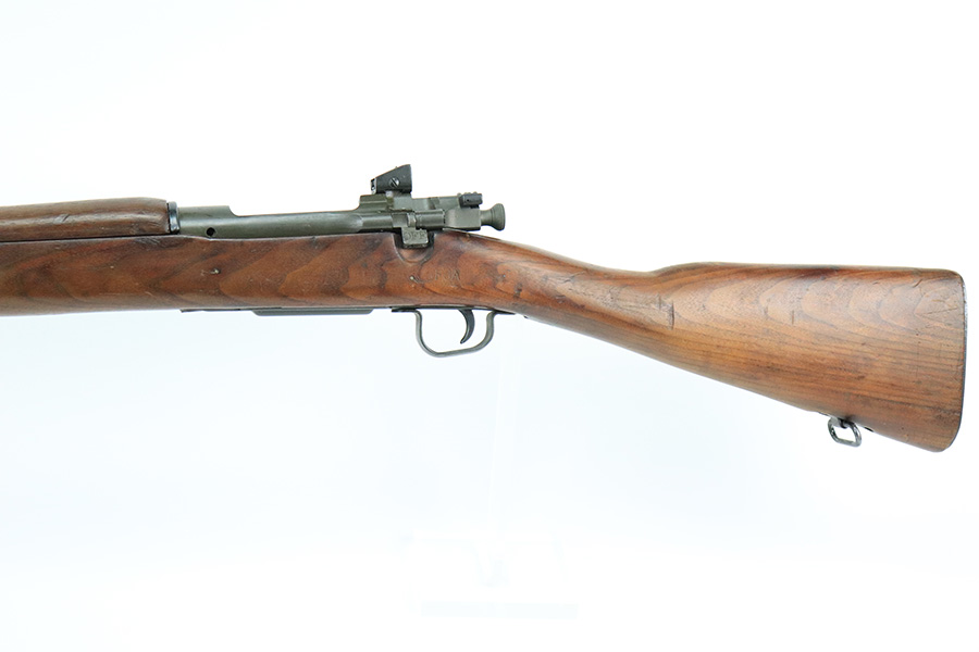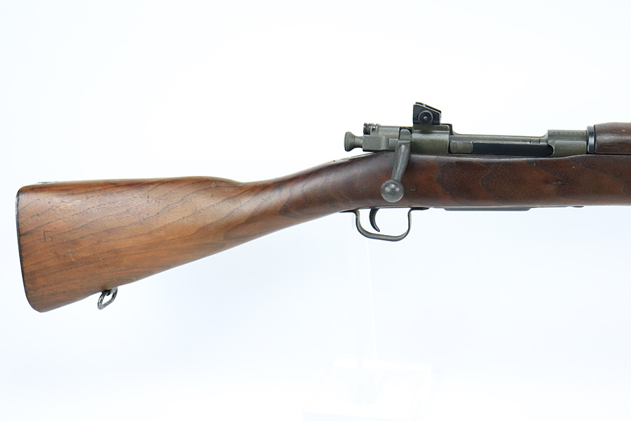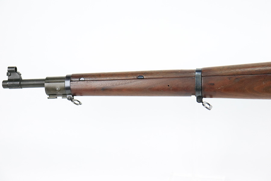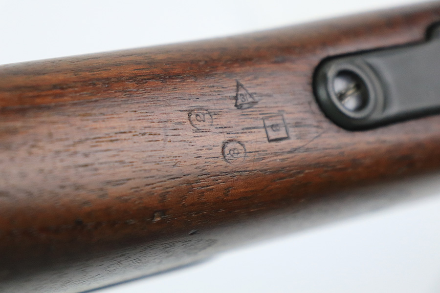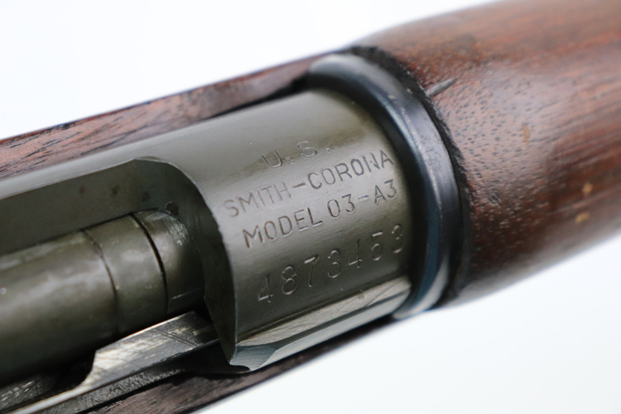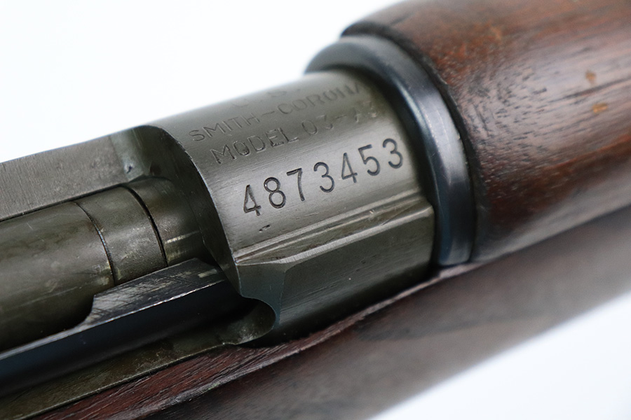 6/14/22 – This is an excellent example of a Smith-Corona Model 03-A3 issued to the US military in 1943-44. The barrel is SC marked and is dated August of 1943. The stock has the proper “P” proof, FJA military inspection stamp, and cross-cannon military cartouche. The bolt is Remington marked. Overall, the gun is in excellent condition with very little actual finish loss. Just some minor discoloration on the receiver and front barrel band. The stock is excellent with only minor bruises and handling marks here and there. Mint bore. Comes with a front sight hood that is “US” marked and has a flaming bomb proof.