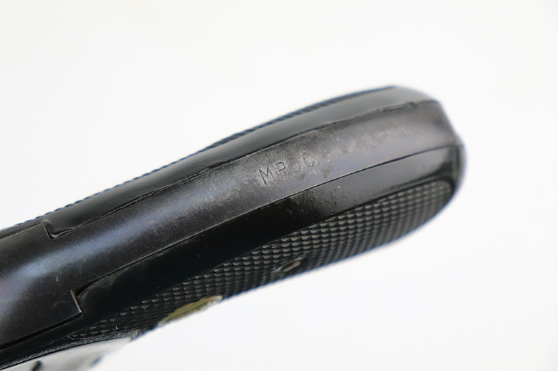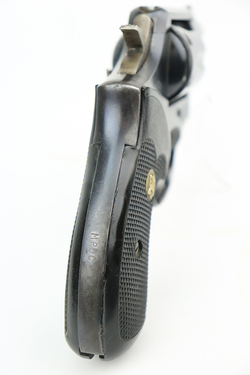8/31/22 – This is a nice example of a Smith and Wesson Model 10-5 Revolver manufactured in the 1960’s. It is all matching and has an “MPDC” marking on the back strap, indicating it was issued to the Metropolitan Police Department of Washington DC. It has retained roughly 85% of its bluing. There is thinning on the back strap and spotty wear throughout, most noticeable on the barrel and on the cylinder. Nice case-hardening on the hammer and trigger. Comes with a nice set of black rubber Pachmayr grips. Excellent bore – shiny with strong rifling. The cylinder is tight, and the action is smooth.