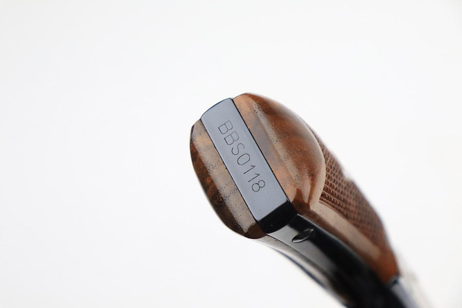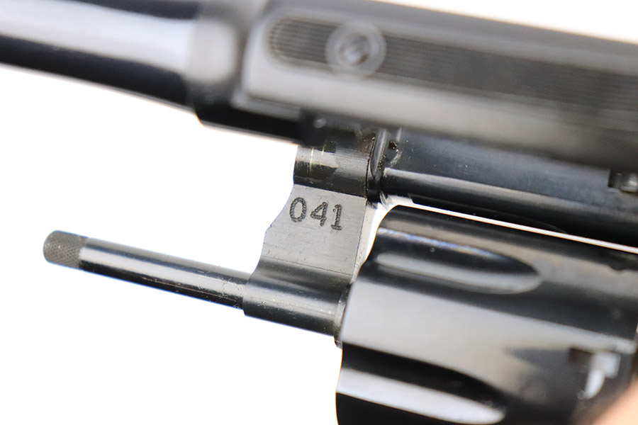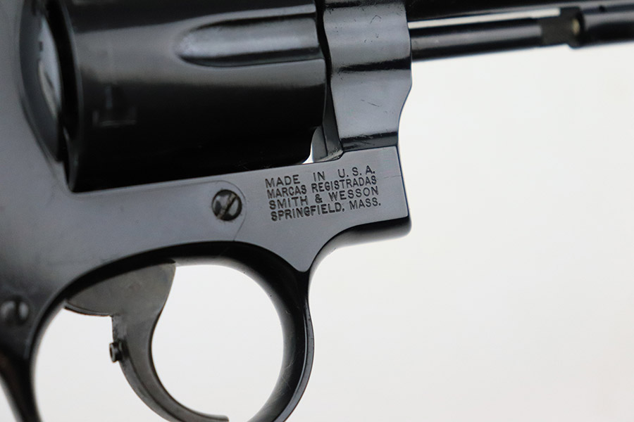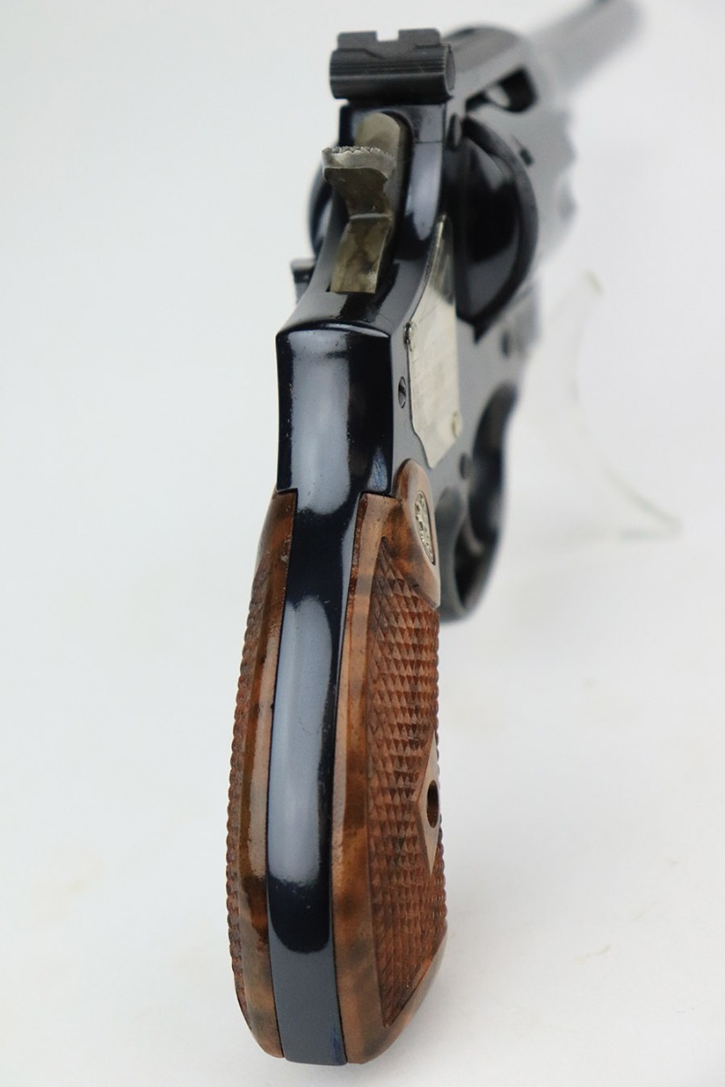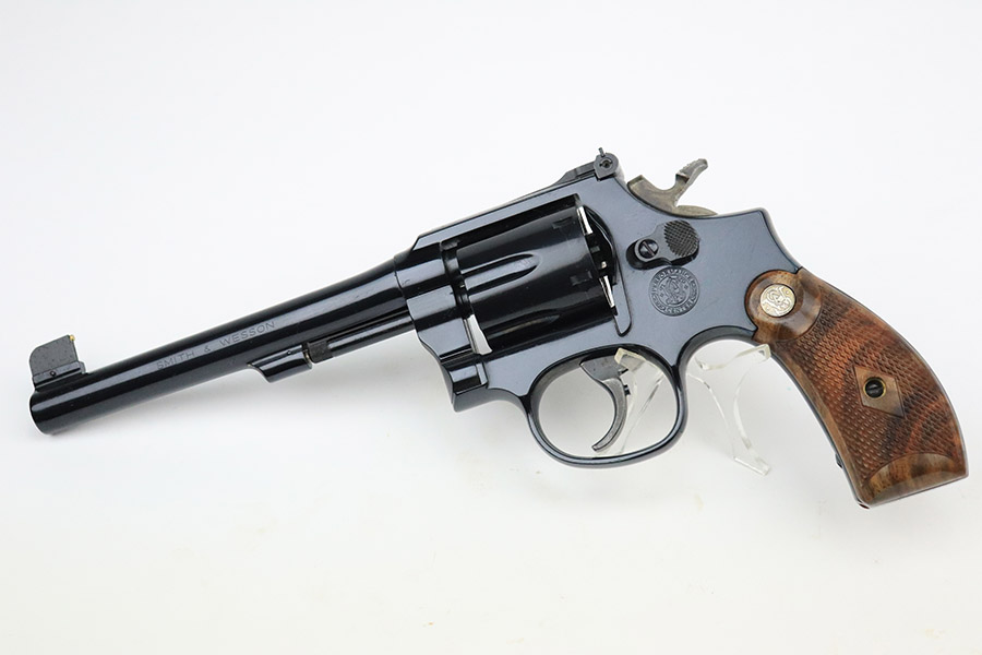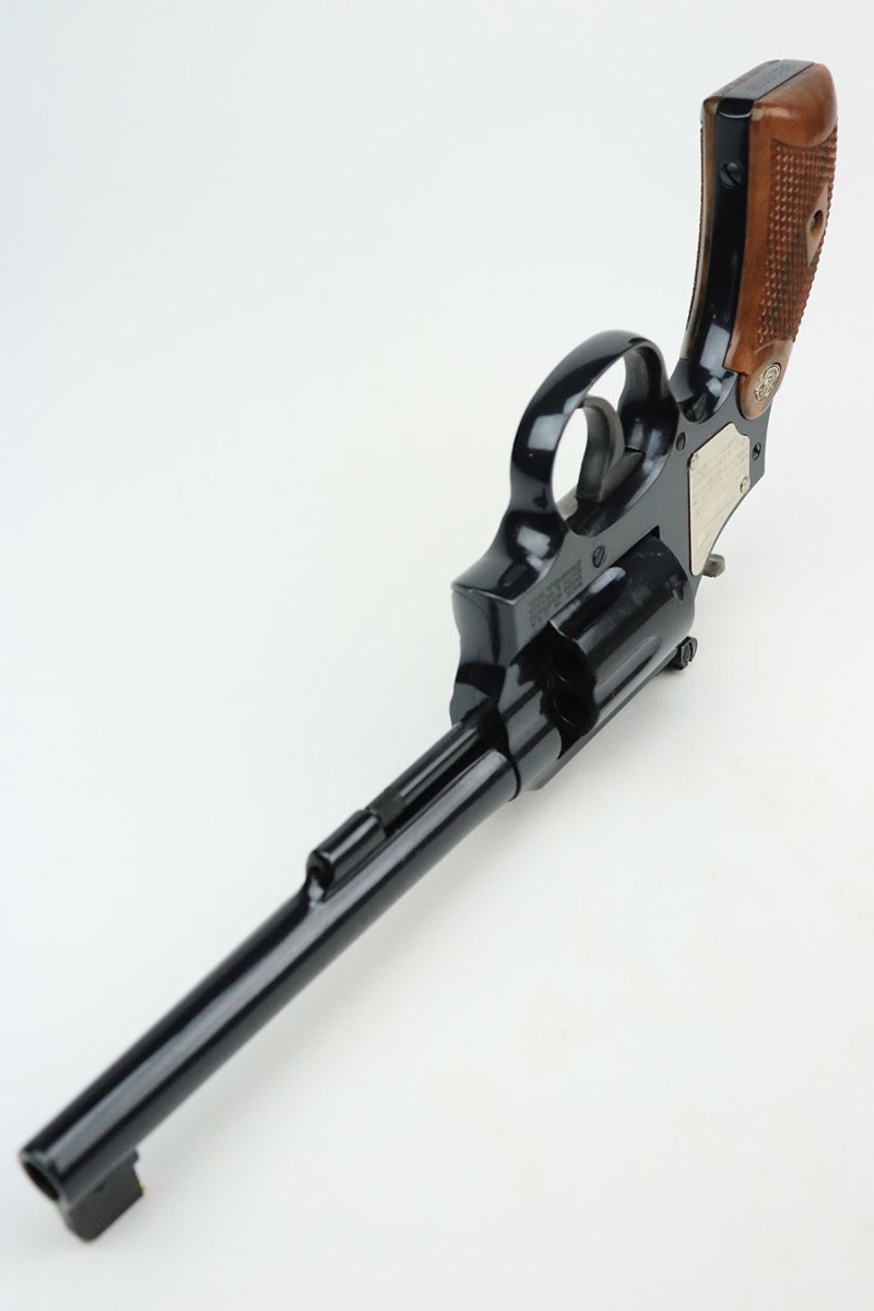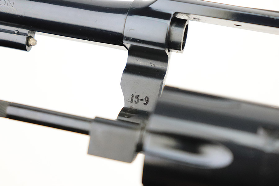 11/15/22 – This is an ANIB Smith & Wesson 15-9 that was produced as part of the Heritage Series to commemorate famous speed shooter, Ed McGivern. It’s got just a tiny hint of a turn line on the cylinder, and otherwise appears nearly unfired. Beautiful case-hardened trigger and hammer. Minty, checkered wood grips. The frame is mounted on the right with a plaque displaying McGivern’s world records from 1934, just as his own revolver did. The left side is marked with the S&W Performance Center logo. Complete with original box numbered to gun and trigger lock. Six inch barrel.