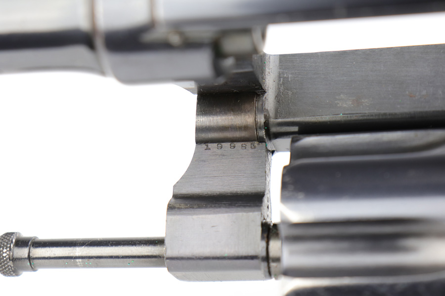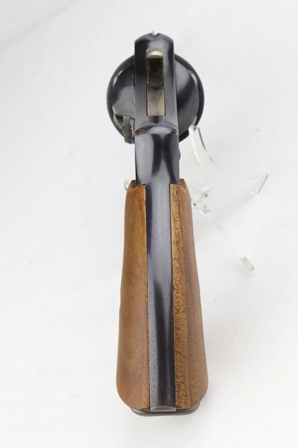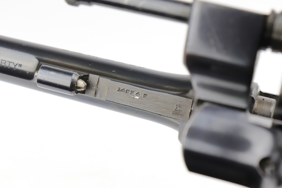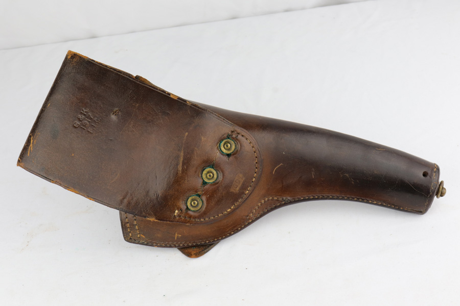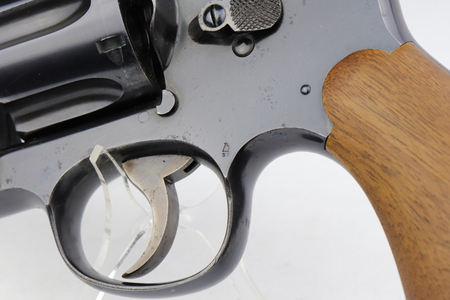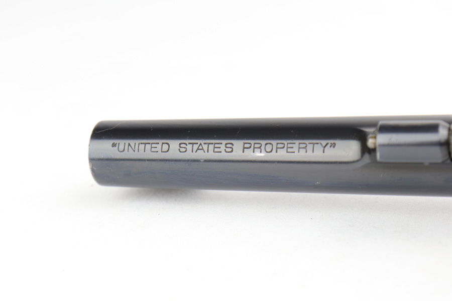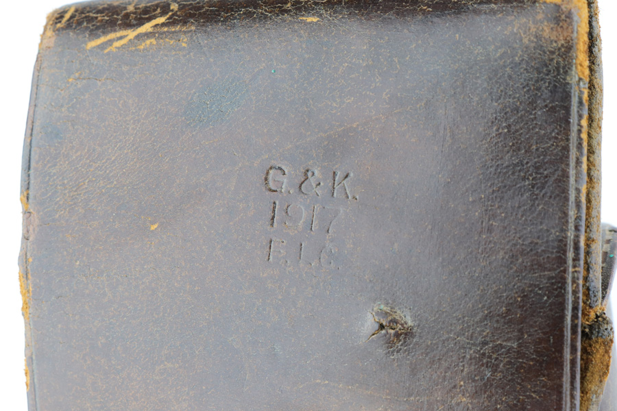 3/20/19 – This is a very nice example of a US Army Smith & Wesson M1917 with scarce G&K holster. The revolver is all original and correct with 95-96% bluing. There is minor muzzle and barrel wear, as well as some finish loss on the cylinder. The trigger and hammer still show nice, original case hardening. Barrel is marked UNITED STATES PROPERTY on the underside. Frame also shows very minor oxidation. The grips are minty but may be replacements. Mint bore and action/timing seem flawless. Comes with a terrific 1917 dated holster that is marked G&K, as well as FIC.
