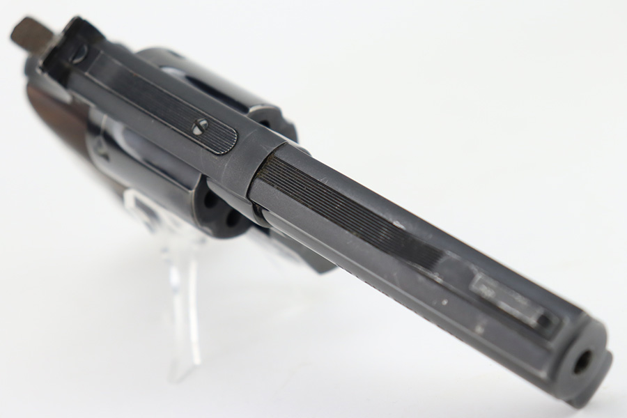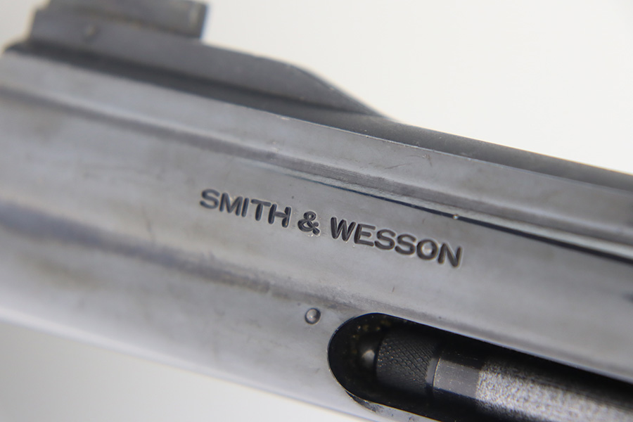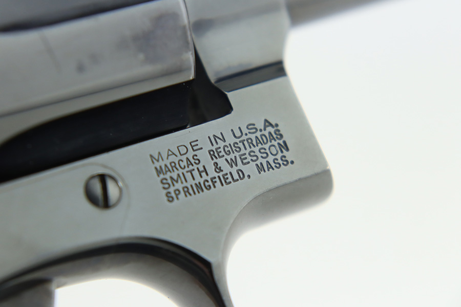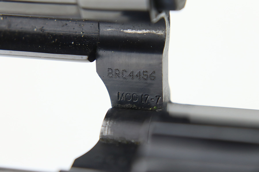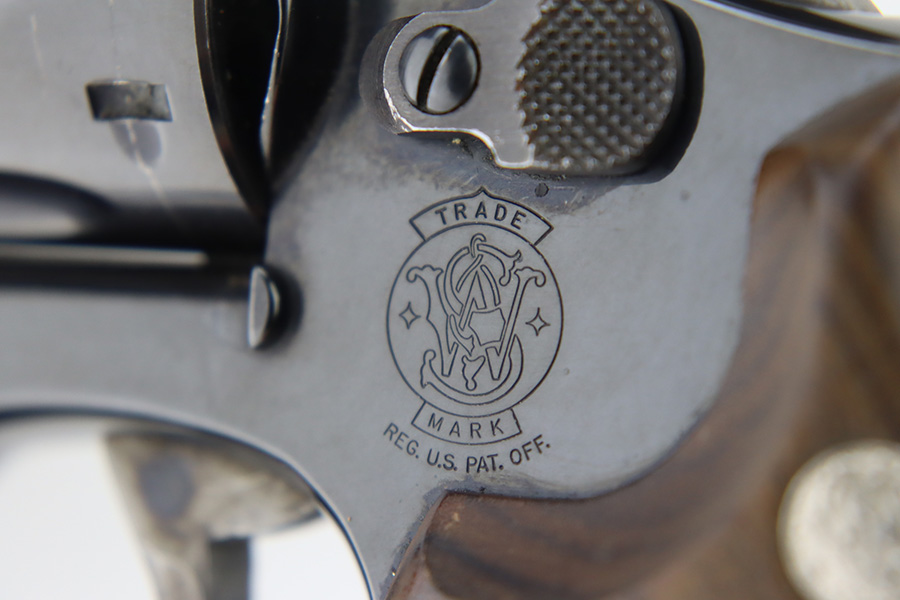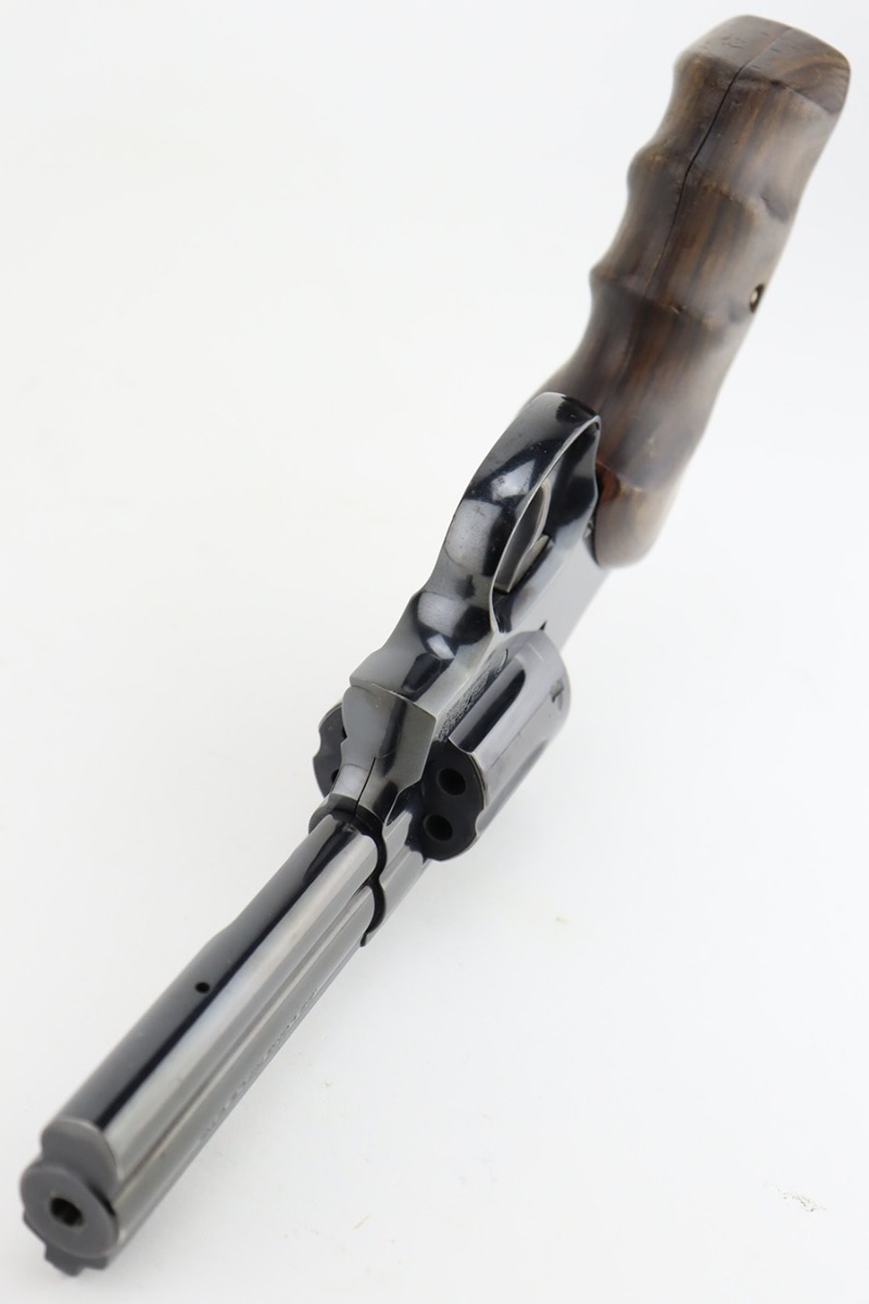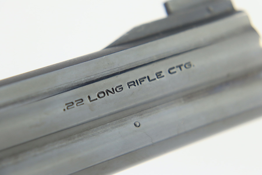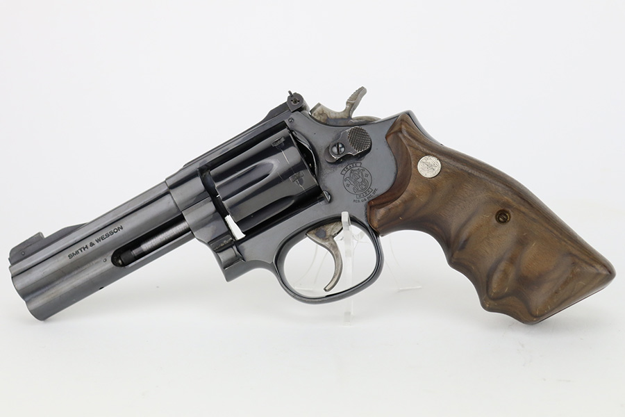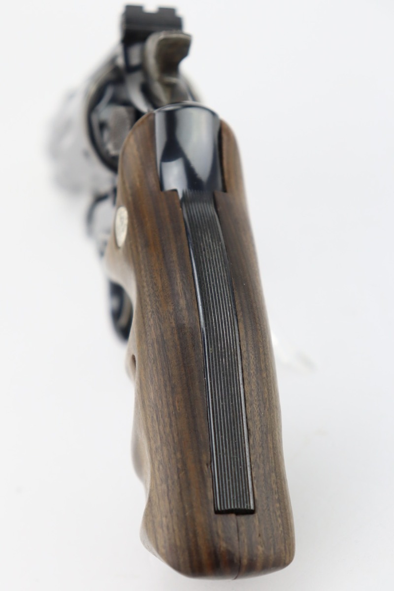 1/15/24 – This is a minty example of a Smith & Wesson Model 17-7 revolver, chambered in .22 LR with a 4.25″ barrel. It has retained nearly all of its original high polish finish with a hint of muzzle wear, a very light roll mark on the cylinder, and a few tiny handling marks here and there. Fitted with very nice wood grips. Mint bore. Smooth action.