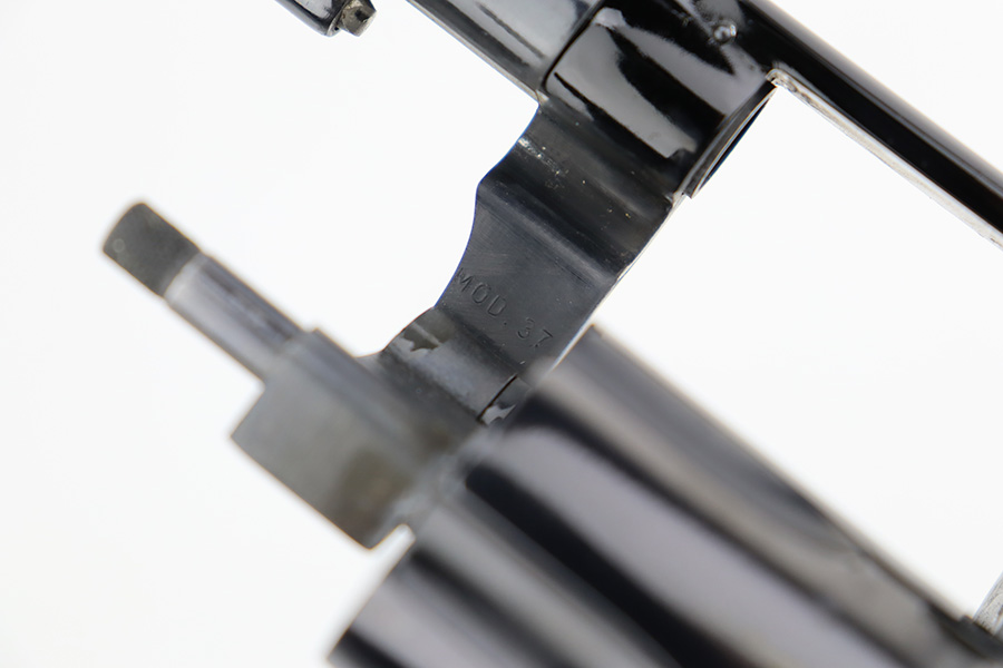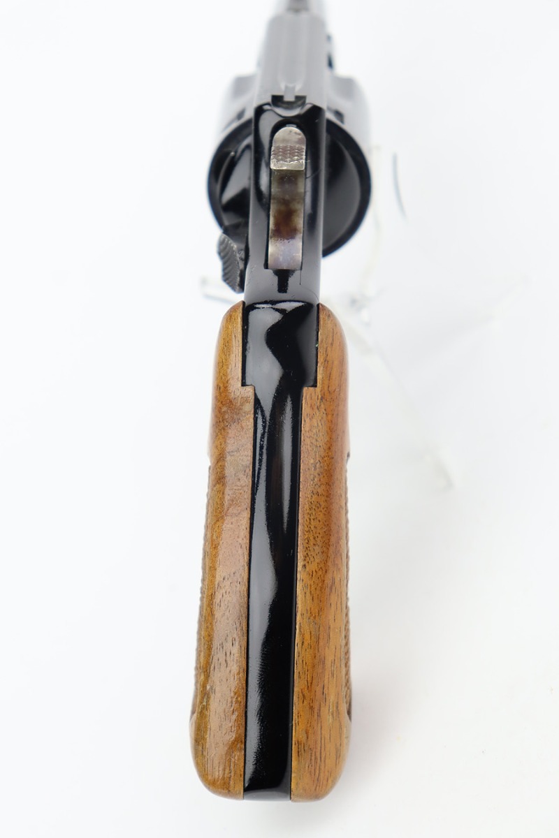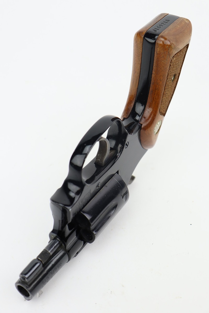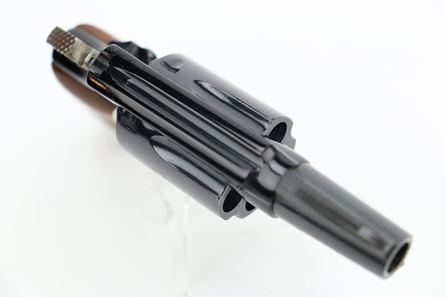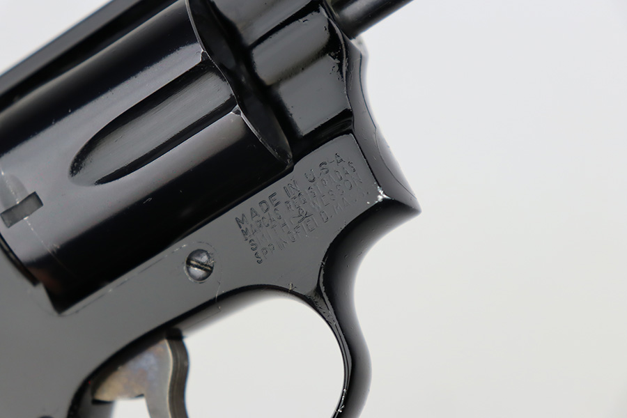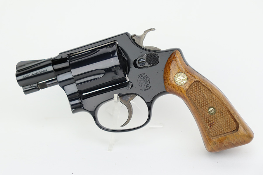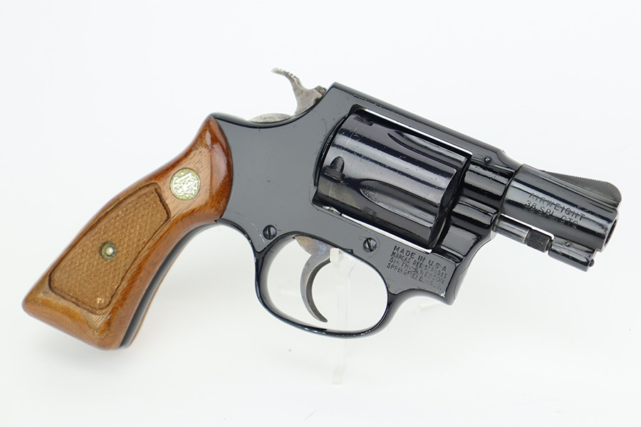 8/24/23 – This is a near-mint example of a Smith & Wesson Model 37 Airweight revolver, manufactured in the 1970’s and chambered in .38 Special. 2″ barrel with a lightweight aluminum alloy frame. It has retained nearly all of its original finish with just hints of wear around the muzzle and on some of the high edges. Faint roll mark on the cylinder. Fitted with very nice hand-checkered wood grips. Near-mint bore.