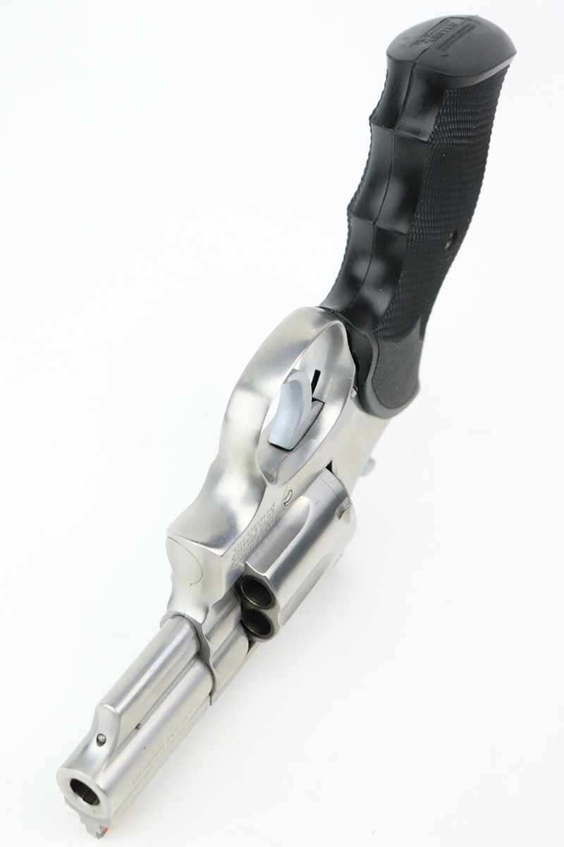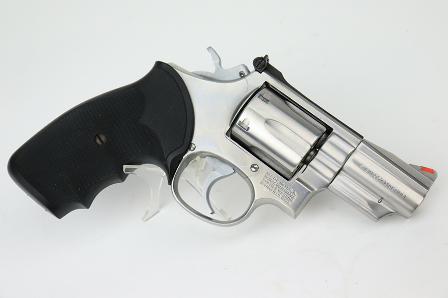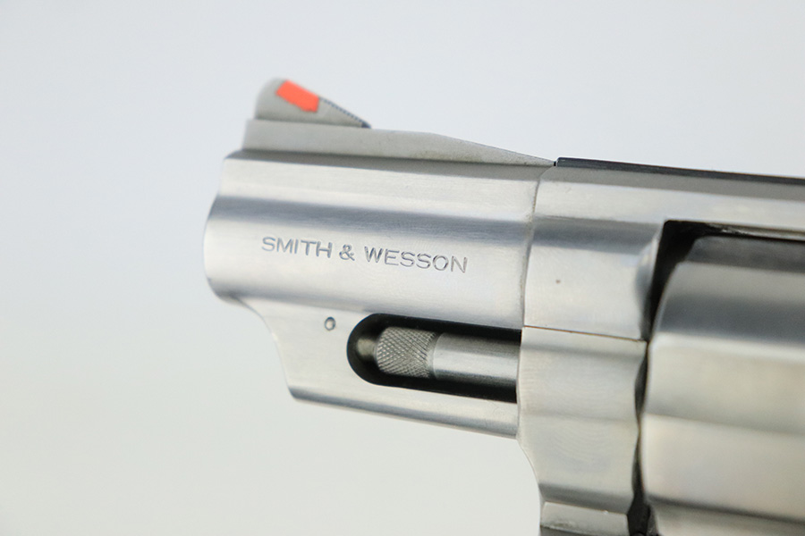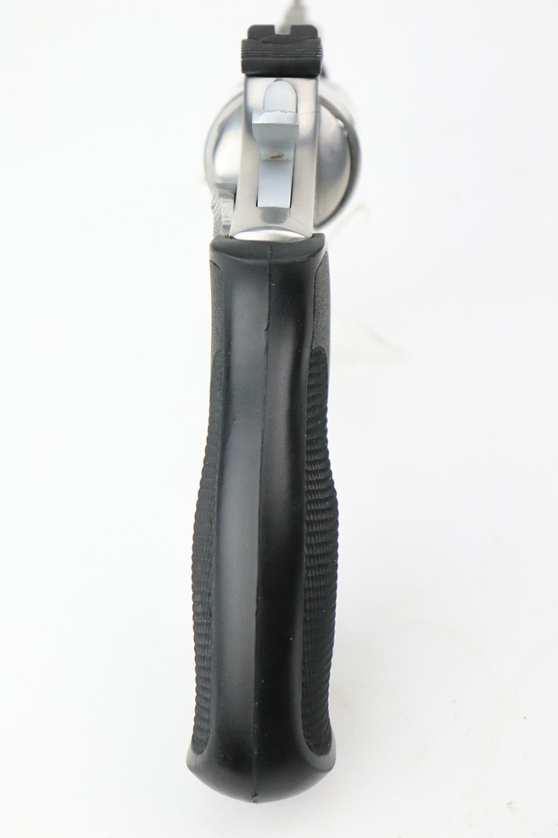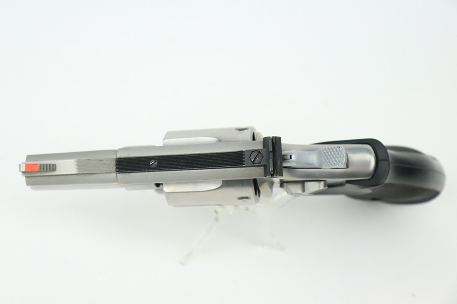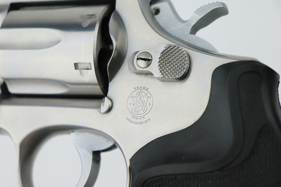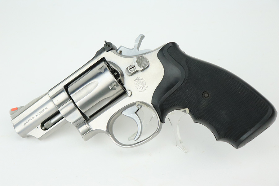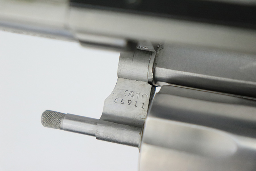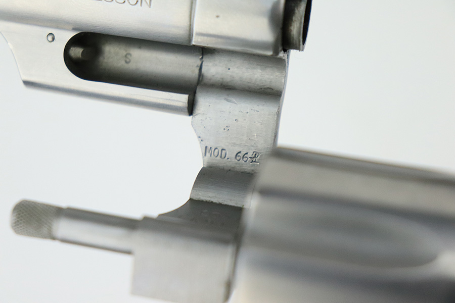 8/2/22 – This is a minty example of a Smith & Wesson Model 66-2 Revolver, chambered in .357 Magnum. 2.5″ barrel. The gun has a stainless finish and is in minty condition overall. There are just some very light handling marks here and there. Light roll mark on the cylinder. Comes with an excellent black rubber grip. The bore is near-mint. The cylinder is tight, and the action is very smooth.