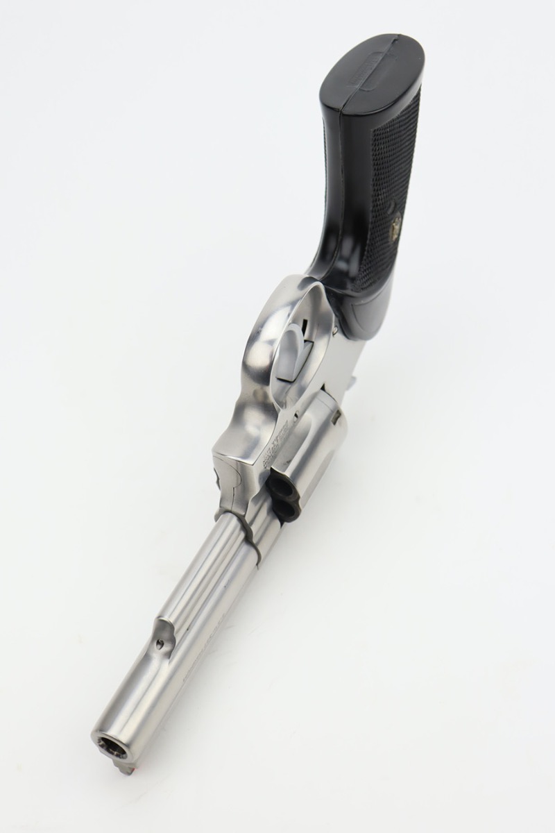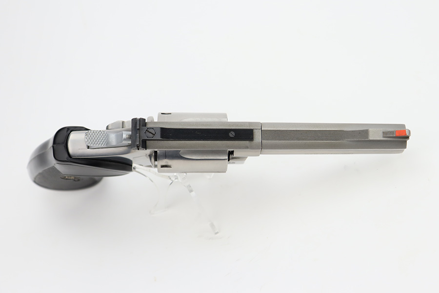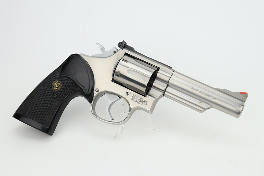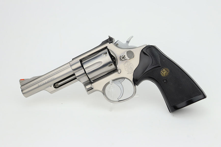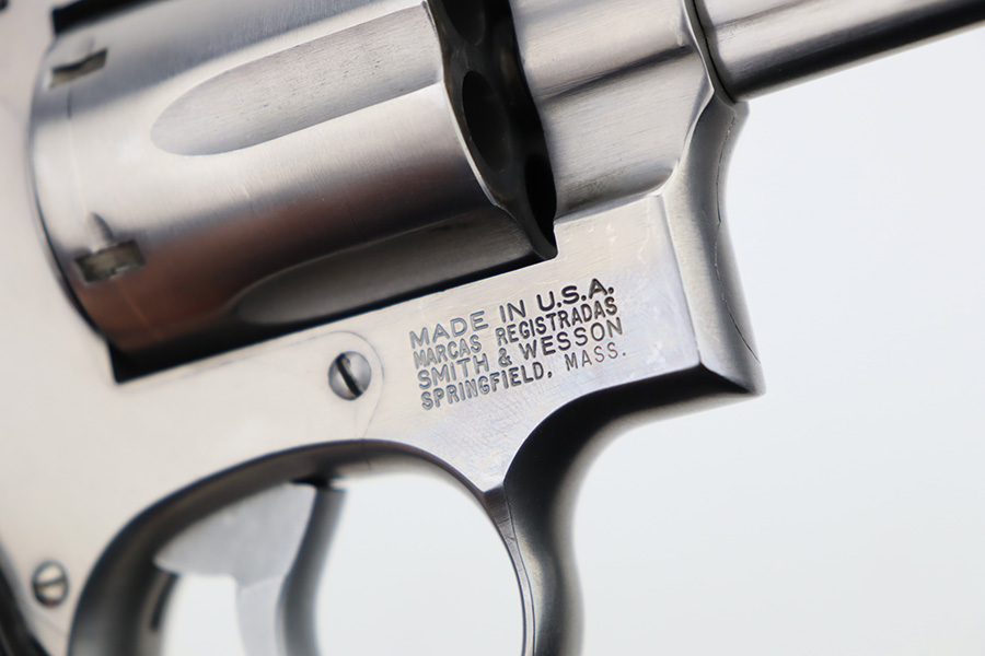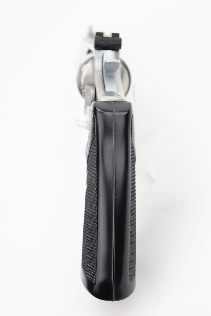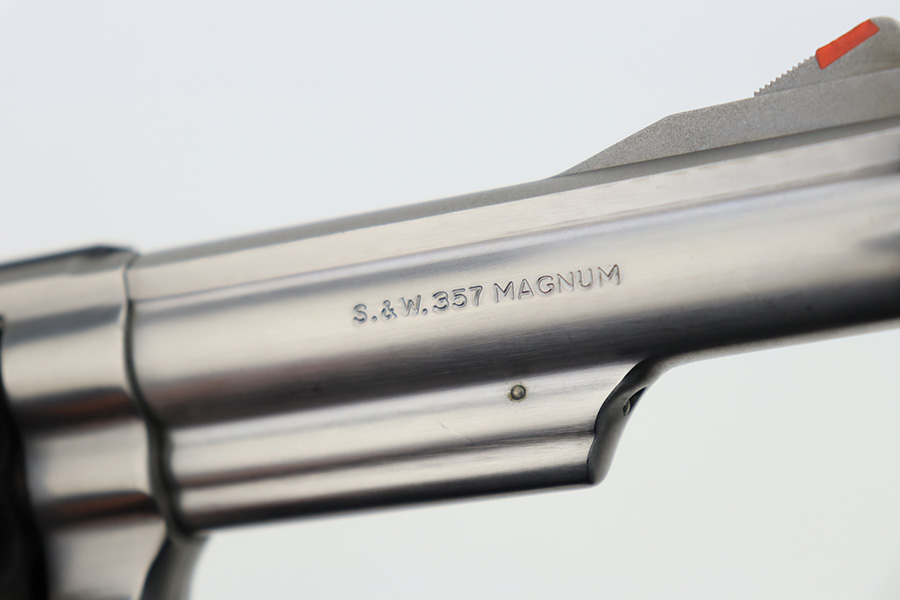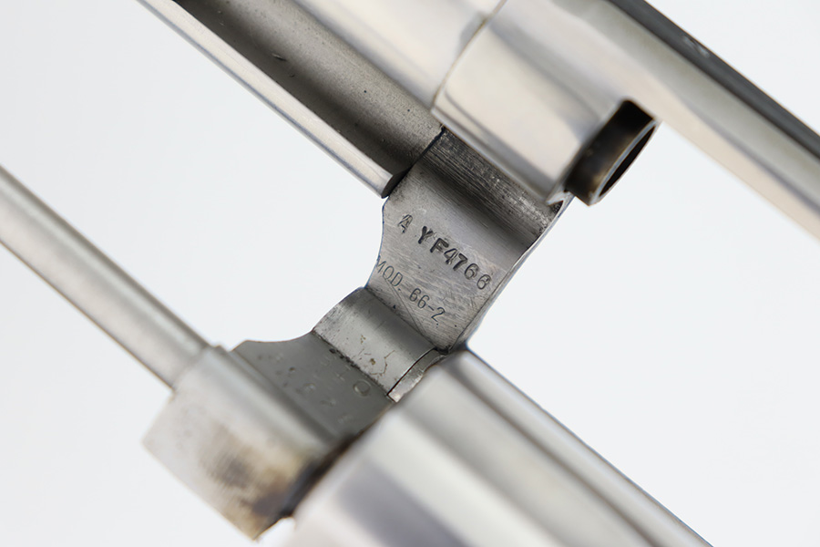 12/4/23 – Up for listing is a stainless Smith & Wesson Model 66 chambered in .357 Mag and has a 4″ barrel.. The handgun is in good shape with minimal finish loss throughout. The only places of note are some wear marks on the cylinder. The bore is bright with good rifling. There’s some carbon fouling that should clean up easily. The action locks up nicely and the trigger break is crisp. The plastic grips are free of any cracks.