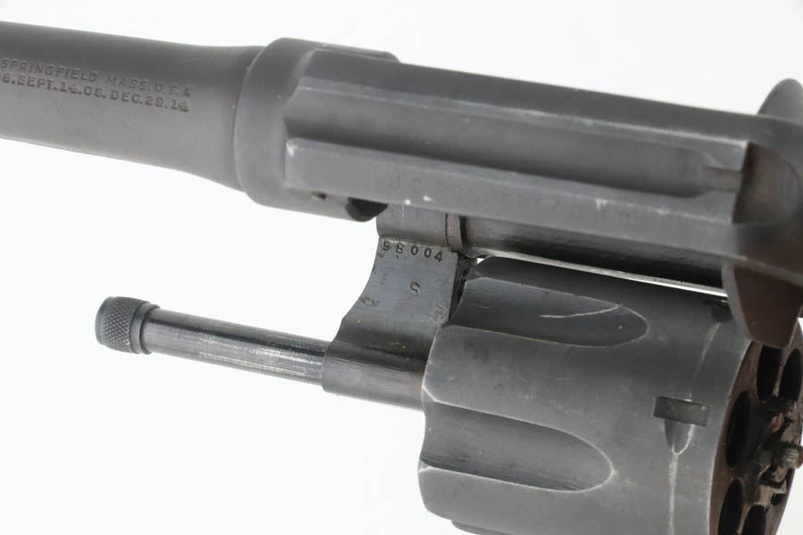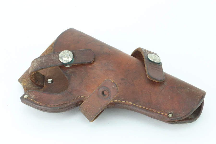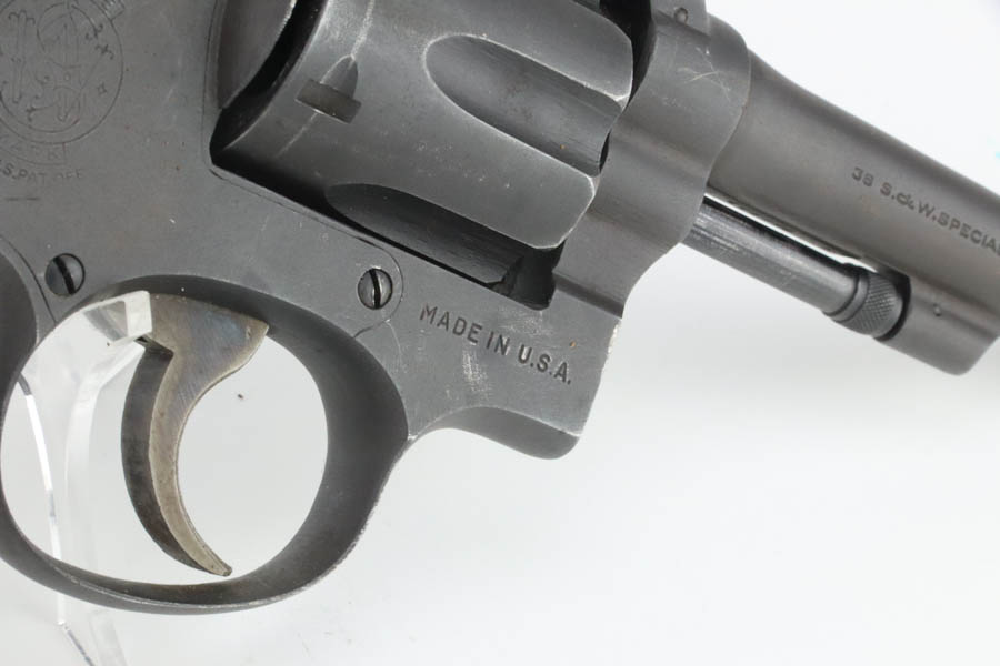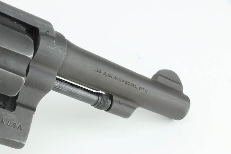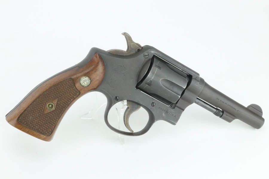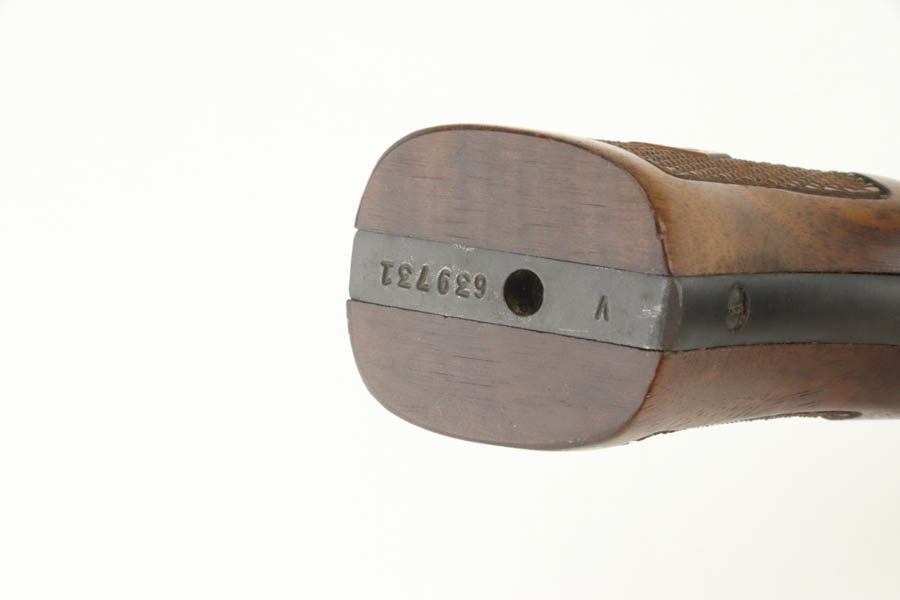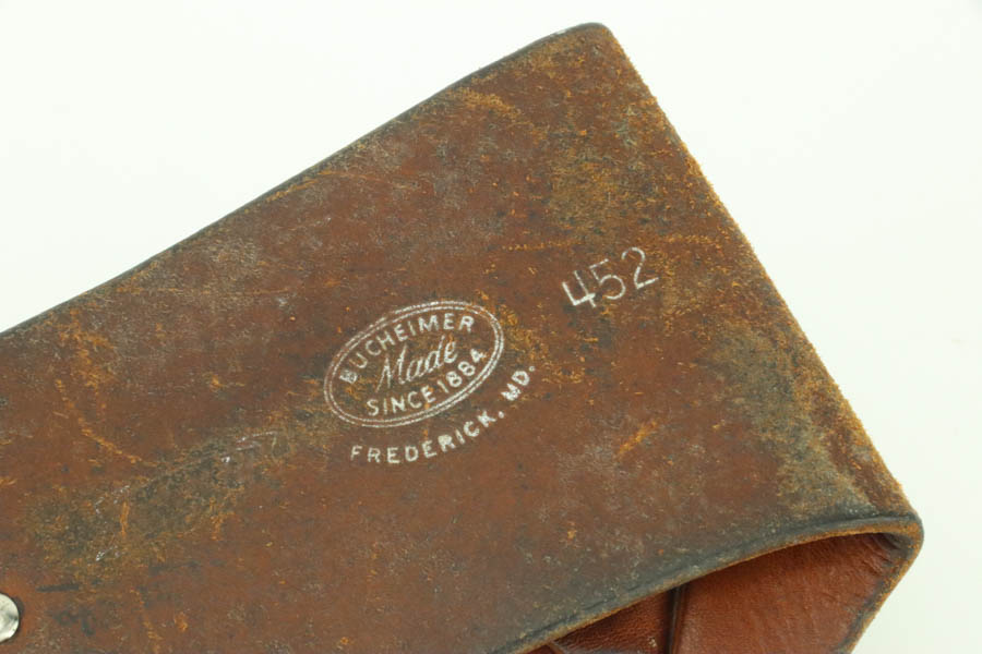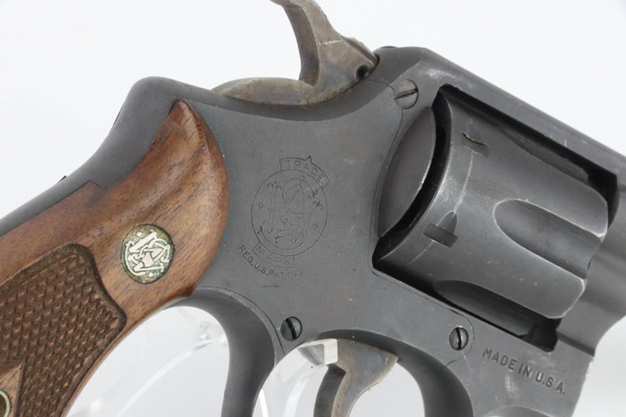 8/7/24 – This is a Smith & Wesson Victory Model rig from World War II. It is U.S. Made from 1942 to 1944, with a production run of ~500,000, these were standard issued side arms for US Navy and Marine air crews due to their size and ease of operation. Property marked and G.H.D (Guy H. Drewry) inspector marked. It is all matching and has the serial number stamped on the butt of the frame, the underside of the barrel, and on the back of the cylinder. Flaming bomb proof is slightly faded but clearly visible on the top strap to the left of the U.S property marking. There are military “P” proofs on the left side of the frame, cylinder, and underside of the barrel. The gun has retained about 95% of its finish, with wear on some of the high edges, and some surface scratches and handling marks here and there. A couple small dings on the left side of the barrel, and some very minor oxidation on the back strap. A bit of muzzle wear, and a roll mark on cylinder. Minty bore, and excellent mechanics. Fitted with an excellent set of hand-checkered commercial grips, and a commercial Bucheimer holster that fits perfectly.