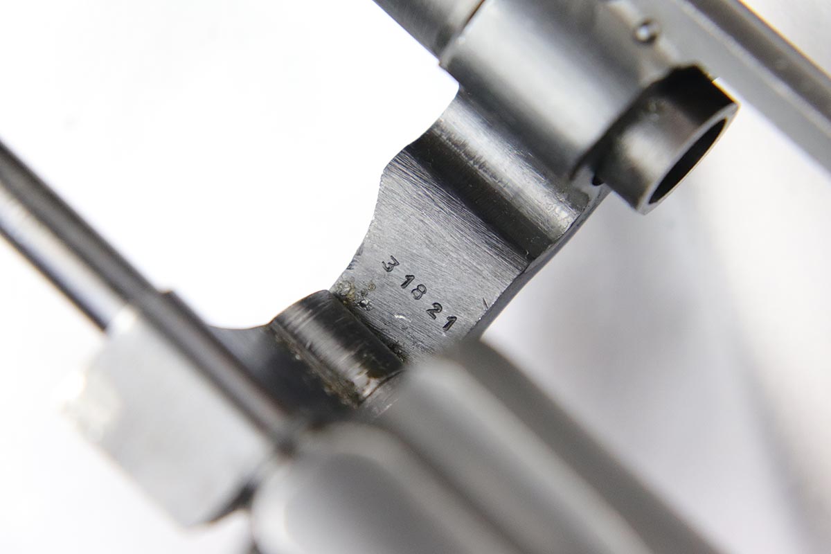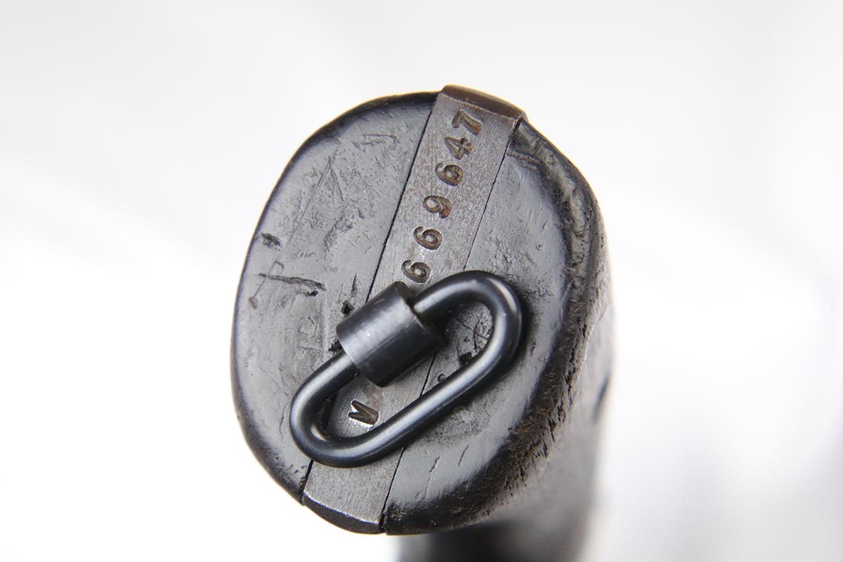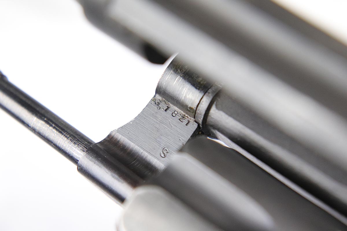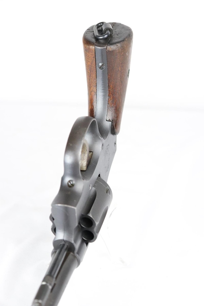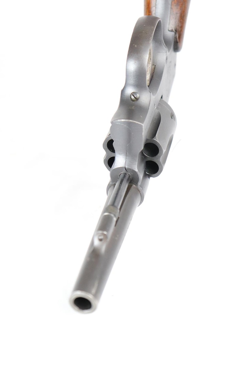 4/25/18 – This is a Smith & Wesson Victory Model from World War II. It is U.S. Property marked and G.H.D (Guy H. Drewry) inspector marked. The original finish is about 97% with some thinning on the frame and roll marks.  Excellent bore. Made from 1942 to 1944. All had a V prefix. There were a little over a half million made. They were standard issued side arms for US Navy and Marine air crews due to their size and ease of operation.  It is .38 S&W special that the U.S. military used.