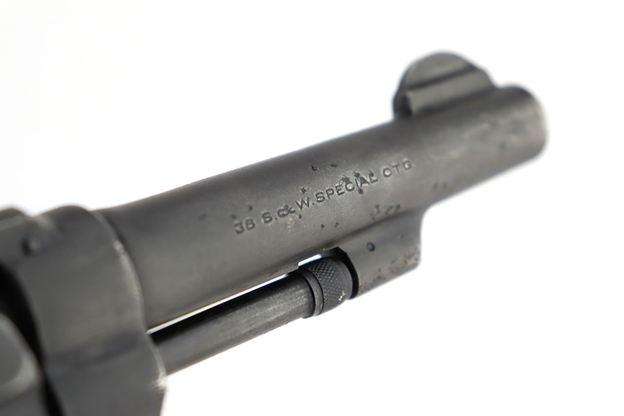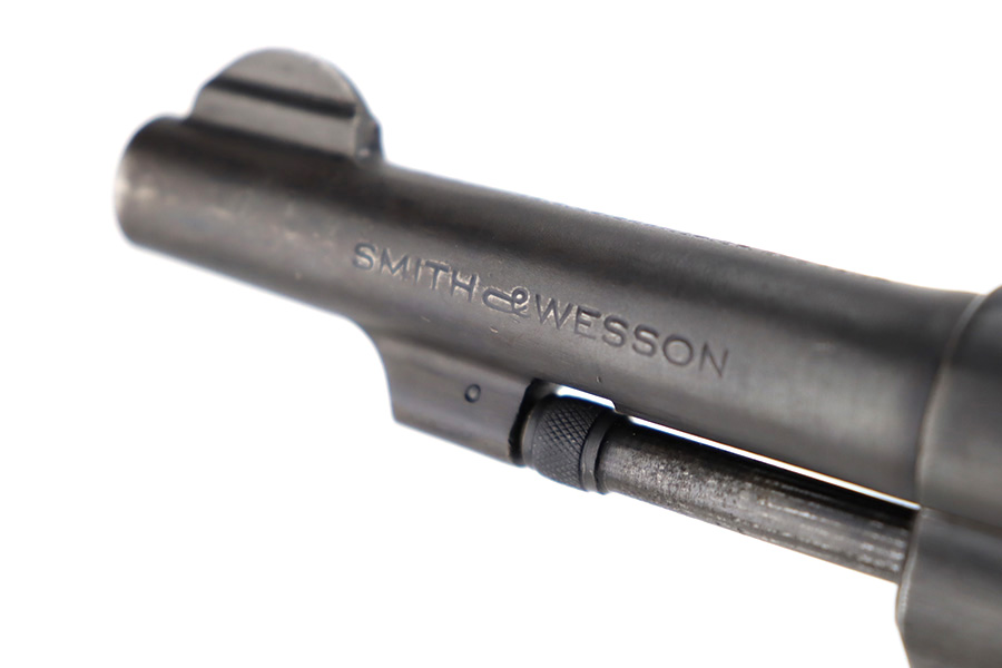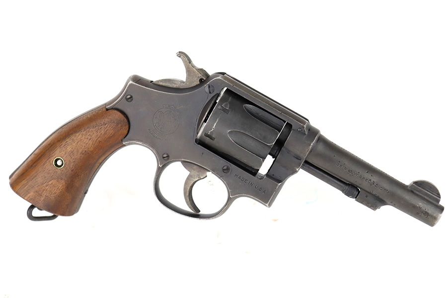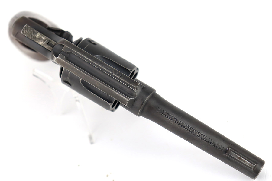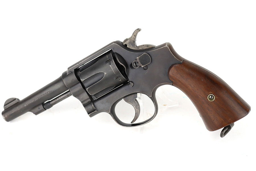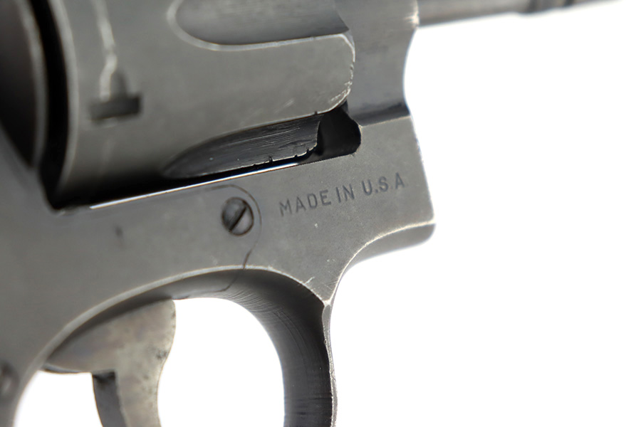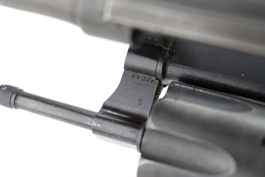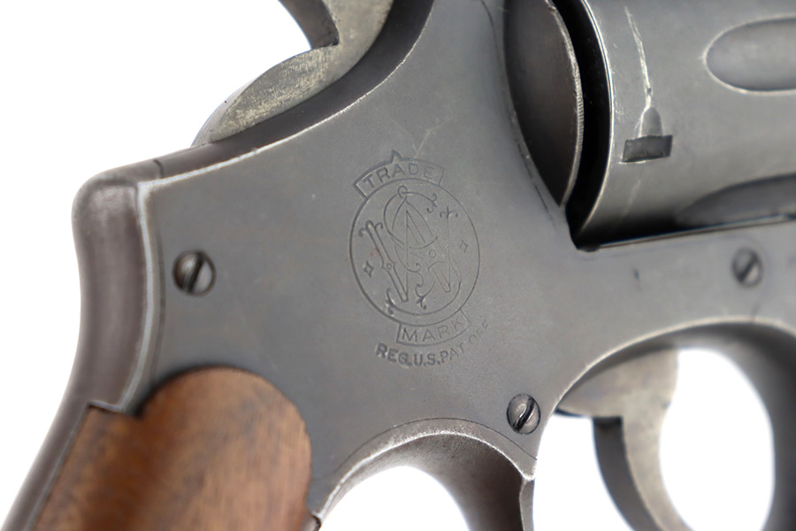 12/14/23 – This is a very nice example of a Smith & Wesson Victory revolver issued to the US military during WW2. It is all matching, “US Property” marked, and has the proper “GHD” inspection stamp. The original finish rates roughly 85%. Most of the wear is on the back strap, but there is also minor wear around the muzzle, and some small pits along the right side of the barrel. Fitted with un-numbered wood grips. Mint bore.