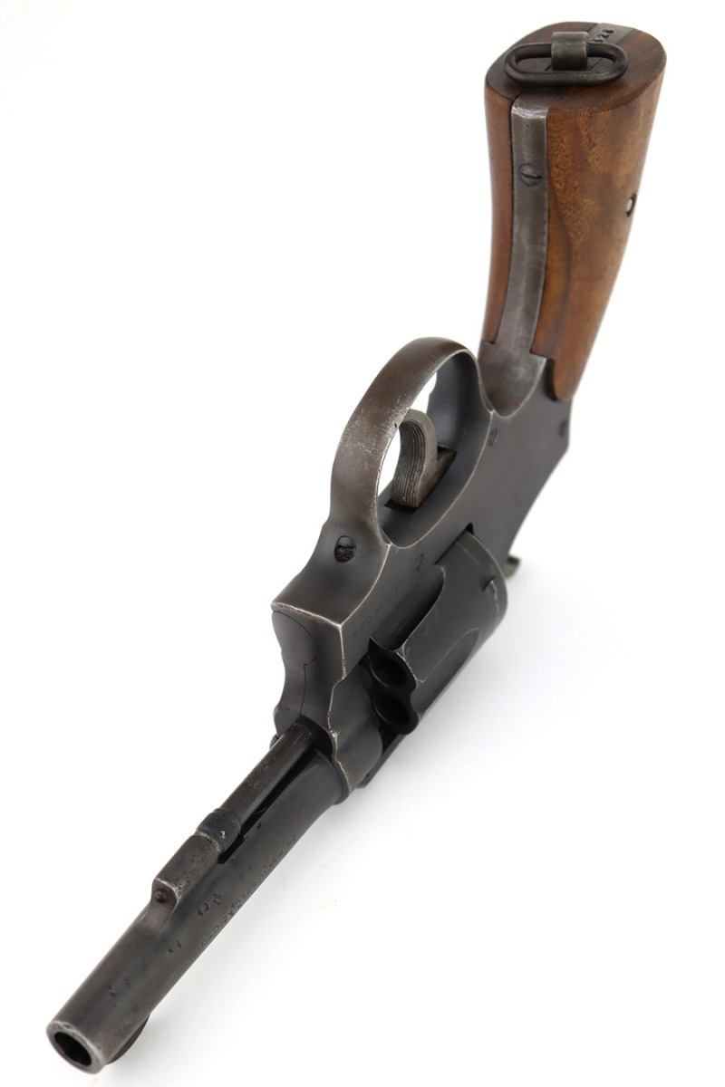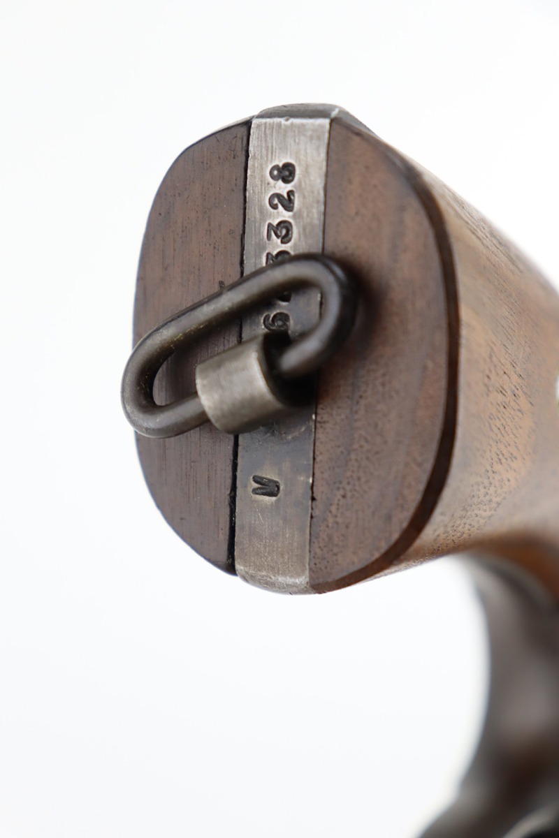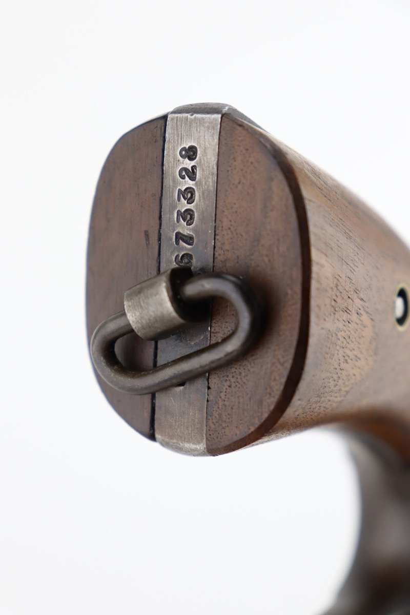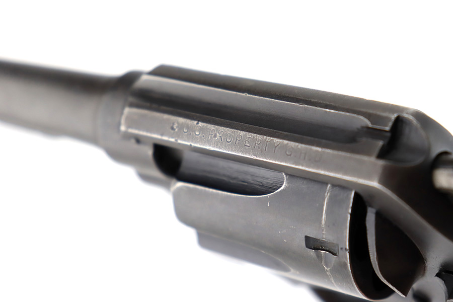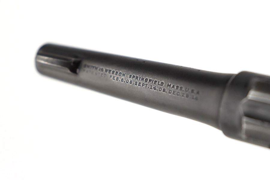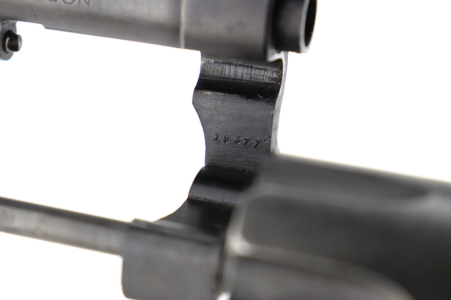 12/14/23 – This is a very nice example of a Smith & Wesson Victory revolver issued to the US military during WW2. It is all matching, “US Property” marked, and has the proper “GHD” inspection stamp. The original finish rates roughly 85%. Most of the wear is on the back strap, but there is also minor wear around the muzzle, and some small pits along the right side of the barrel. Fitted with un-numbered wood grips. Mint bore.
