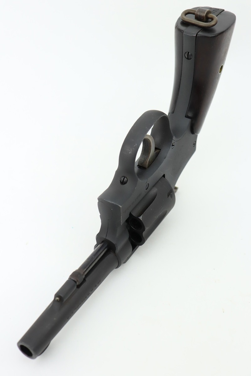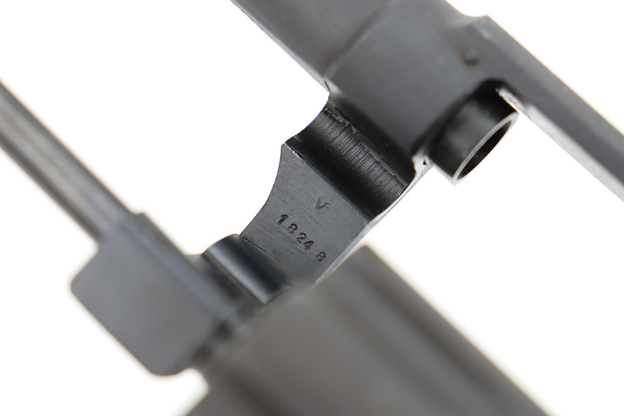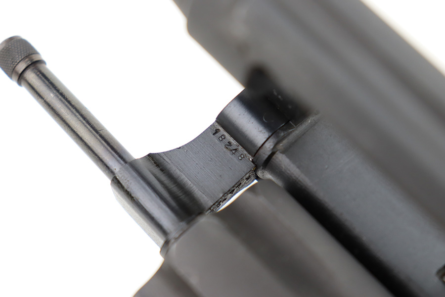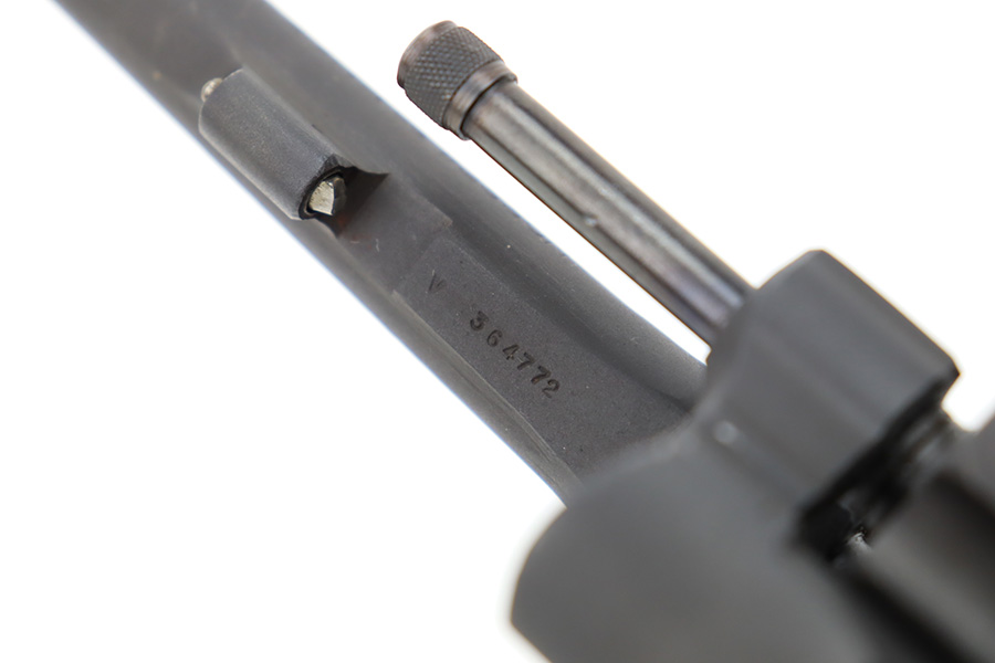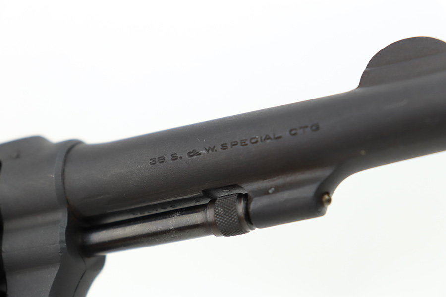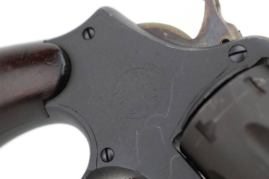 12/26/23 – This is an excellent Smith & Wesson Victory Revolver issued to the US military during WW2. All matching, “US Property” marked, and has the proper military proofs. The entire gun has been refinished, but there is next-to-no actual finish loss, just some very light surface scuffs and scratches here and there. Hairline crack in the left grip panel. Mint bore.