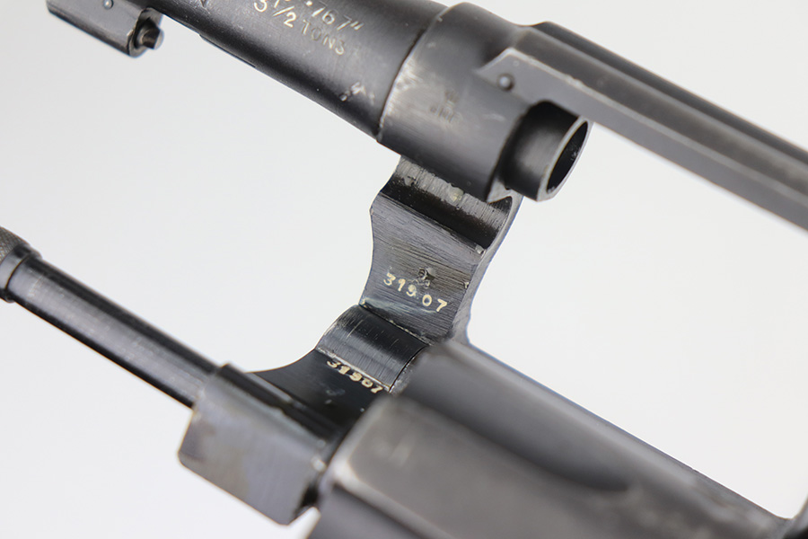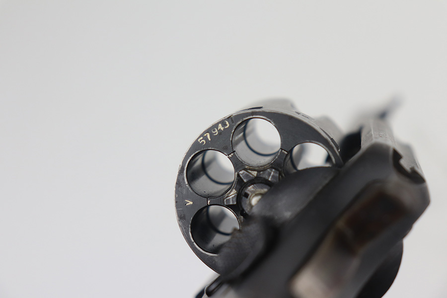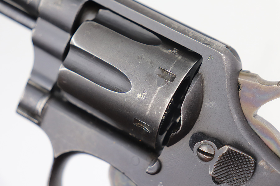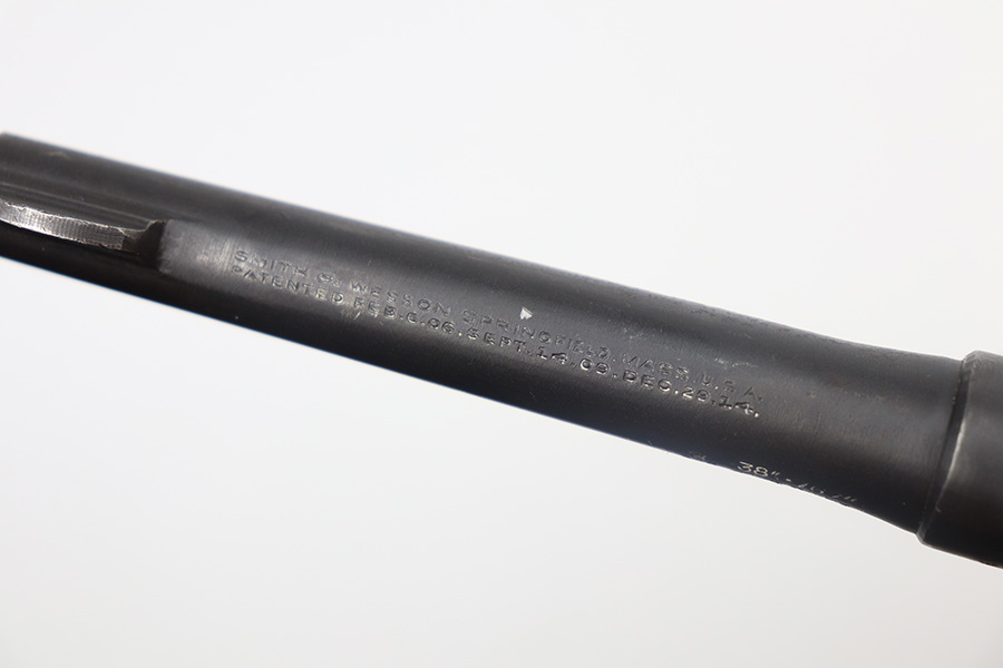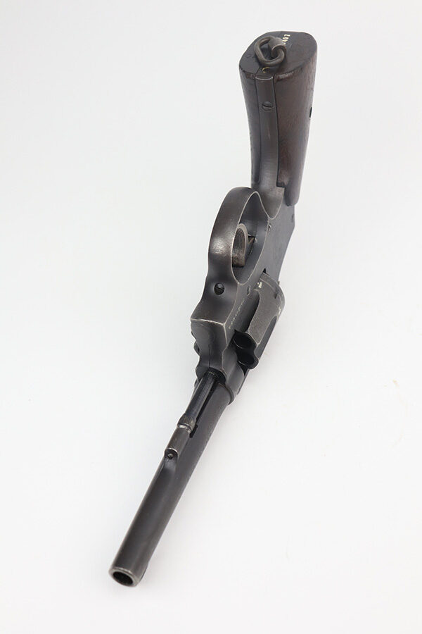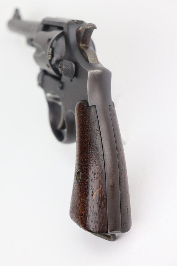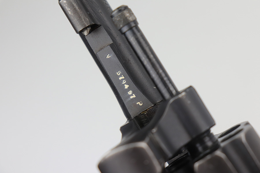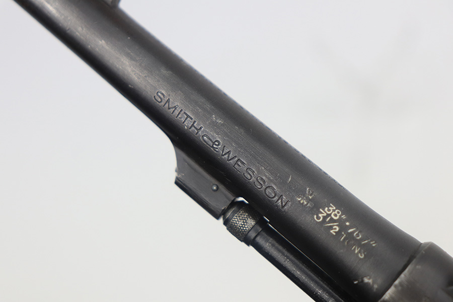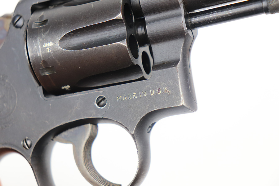 5/26/21 – This is a nice Smith and Wesson Victory Revolver that was part of the British Lend Lease Program with the US during WW2. The gun is all correct, matching, and has the proper “US Property” marking. British proofs throughout. There is an “SMC” marking on the bottom of the grip. What not sure what it means. If someone knows, please feel free to email us. It has retained about 92-93% of its original finish. Generally, there is wear on the high edges and around the muzzle. Small handling marks here and there. Light roll mark on the cylinder. Minor patina on the straps. Case hardening is intact on the trigger and hammer. The cylinder is tight and the action is smooth. Excellent grips. Mint bore.