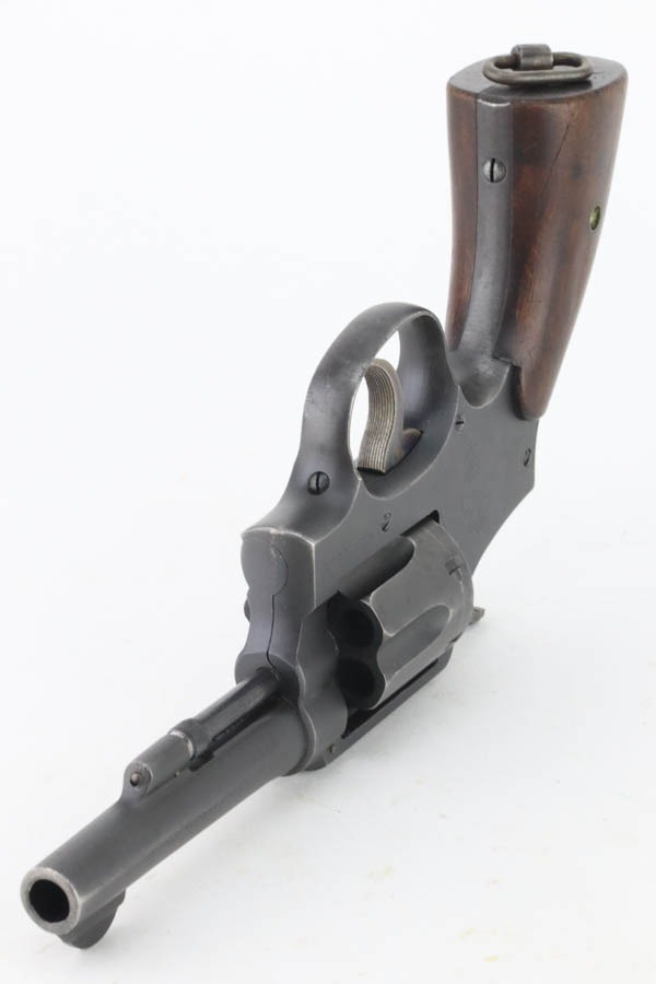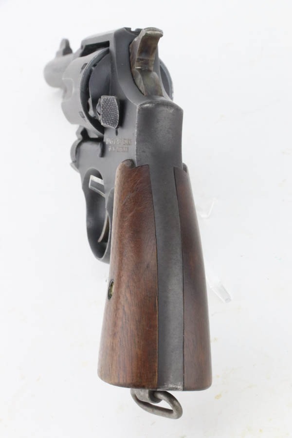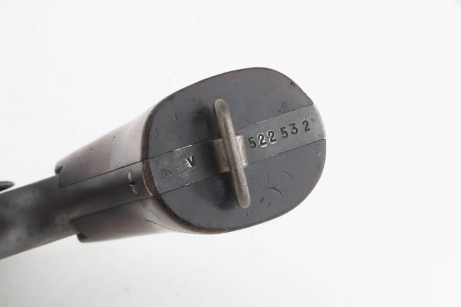 11/25/24 – This is an excellent example of a Smith & Wesson Victory revolver from WW2. There is no “US Property” marking, but there is a military flaming bomb on the butt of the frame. There is a marking on the left side of the frame that reads “Broadcasting Branch – Crosley Corporation”. We couldn’t find much info on this – we assume that’s where the gun was issued. The gun’s original parkerized finish rates about 96-97% with just minor high edge and muzzle wear. Fitted with proper wood grips – the right panel is numbered and matching. Minty bore.