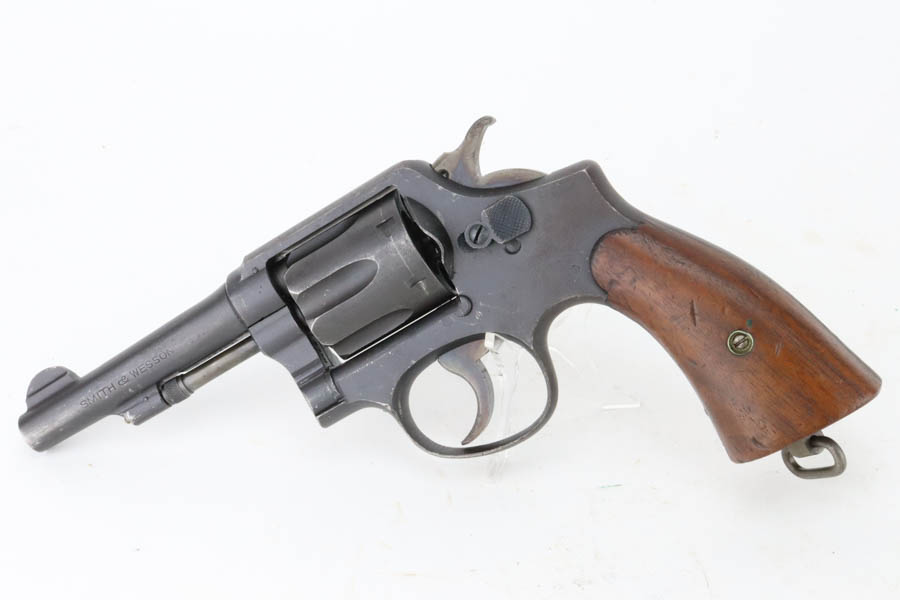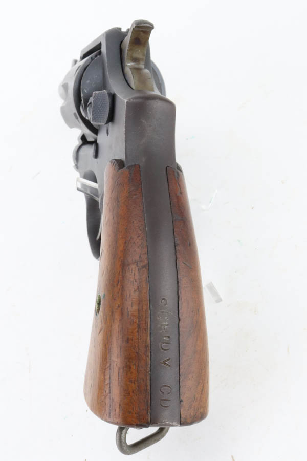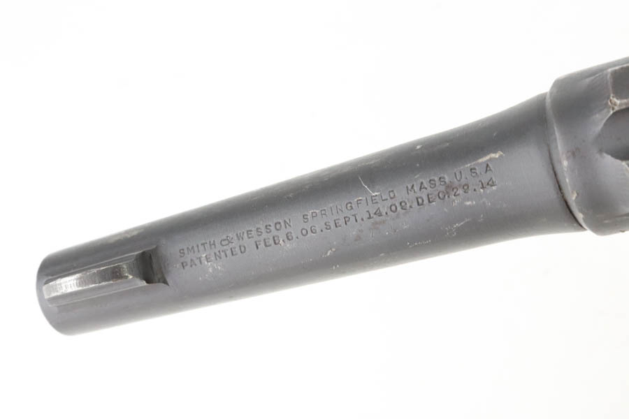 06/06/2024 – For sale is a Smith & Wesson Model Victory revolver chambered in .38 S&W. This revolver is in good condition overall with some finish loss on the barrel and cylinder arm from use. The bore is bright with great rifling. The trigger and hammer still have a nice case hardened finish visible. The wood grips are scratched from use but in good condition. The top of the frame is stamped “US Property” and Inspection initials “GHD.”