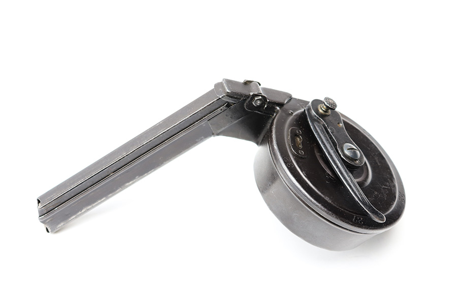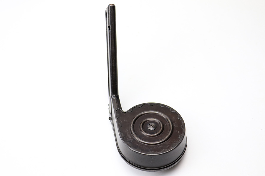 3/22/22 – This is an excellent type 2 Artillery Luger Snail Drum Magazine from WW1. The magazine has beautiful finish throughout with minimal finish loss. There is some mild edge wear but no rust or pitting. The spring is fully functional and strong. The top and bottom circular plates on the magazine are matching numbered and maker stamped. The magazine tube is imperial proof stamped near the top / follower.