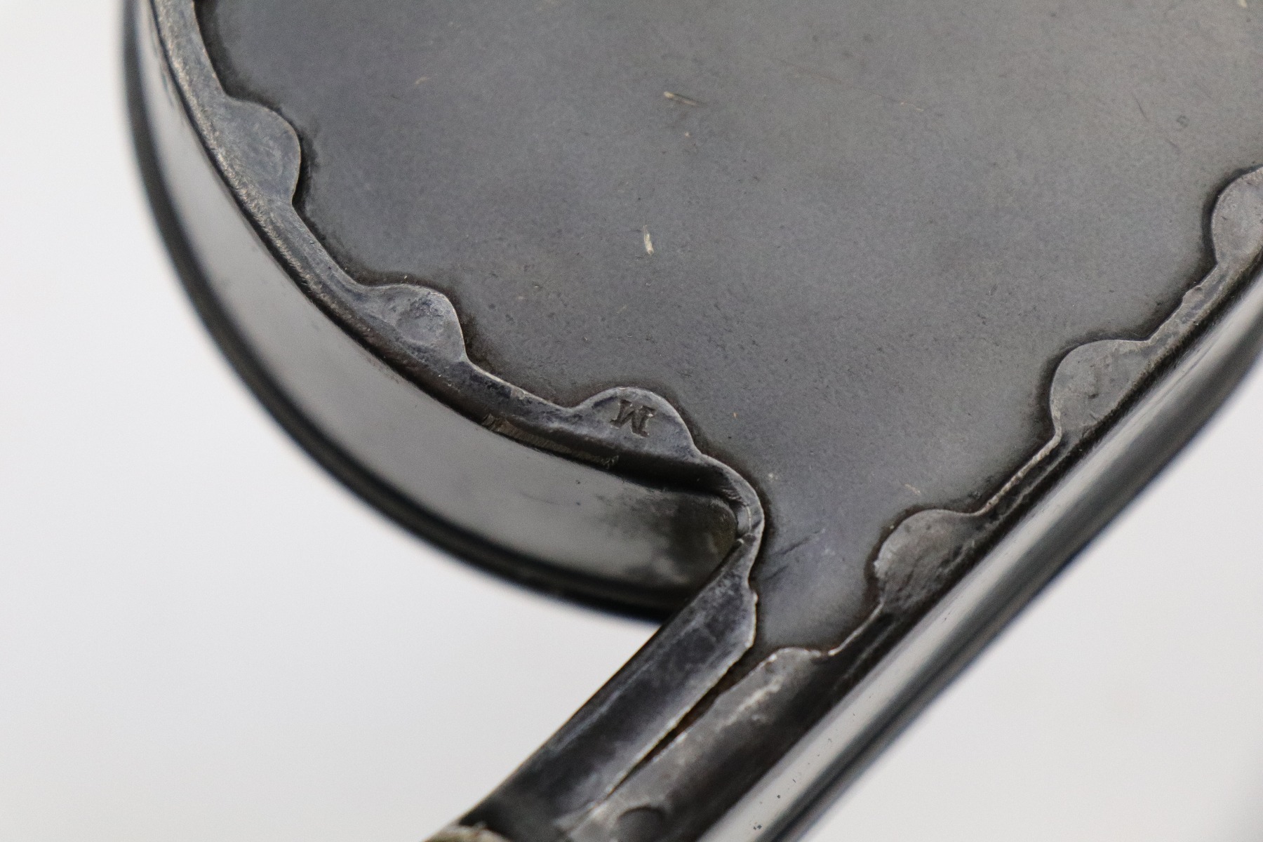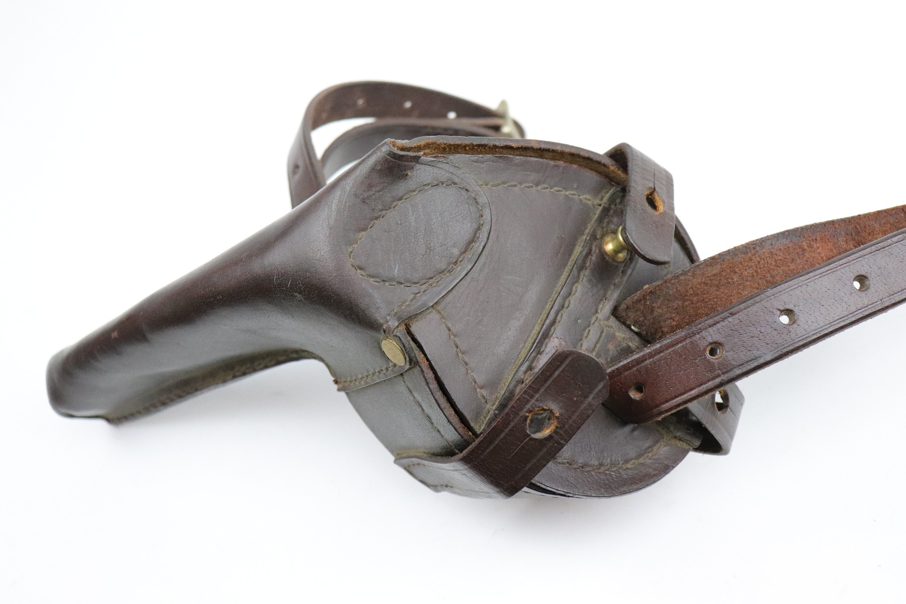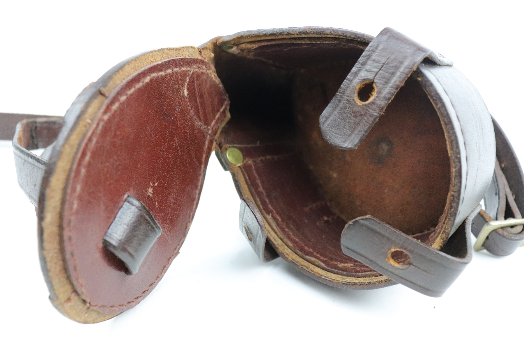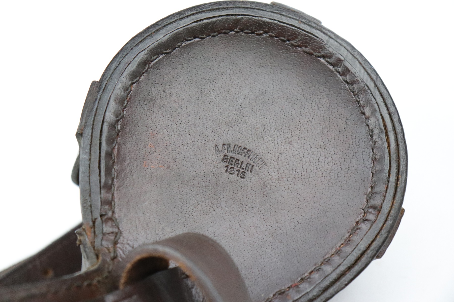 8/18/20 – This is a WW1-era Luger snail drum magazine that comes in a high-quality reproduction leather case. The leather case is dated 1915. The magazine is “B/N” (Bing) makers marked on both sides. There is also an “M” marking on the bottom. Most of the finish is in tact but there is very minor wear along some of the high edges and areas of minor freckling and oxidation here and there. The magazine is still fully functional.