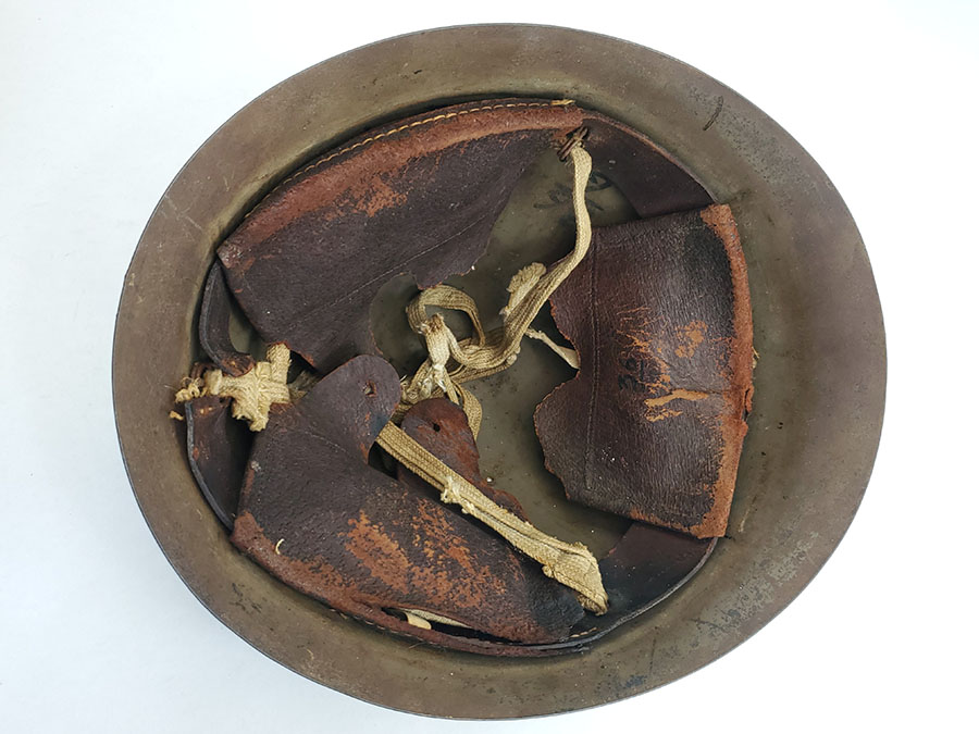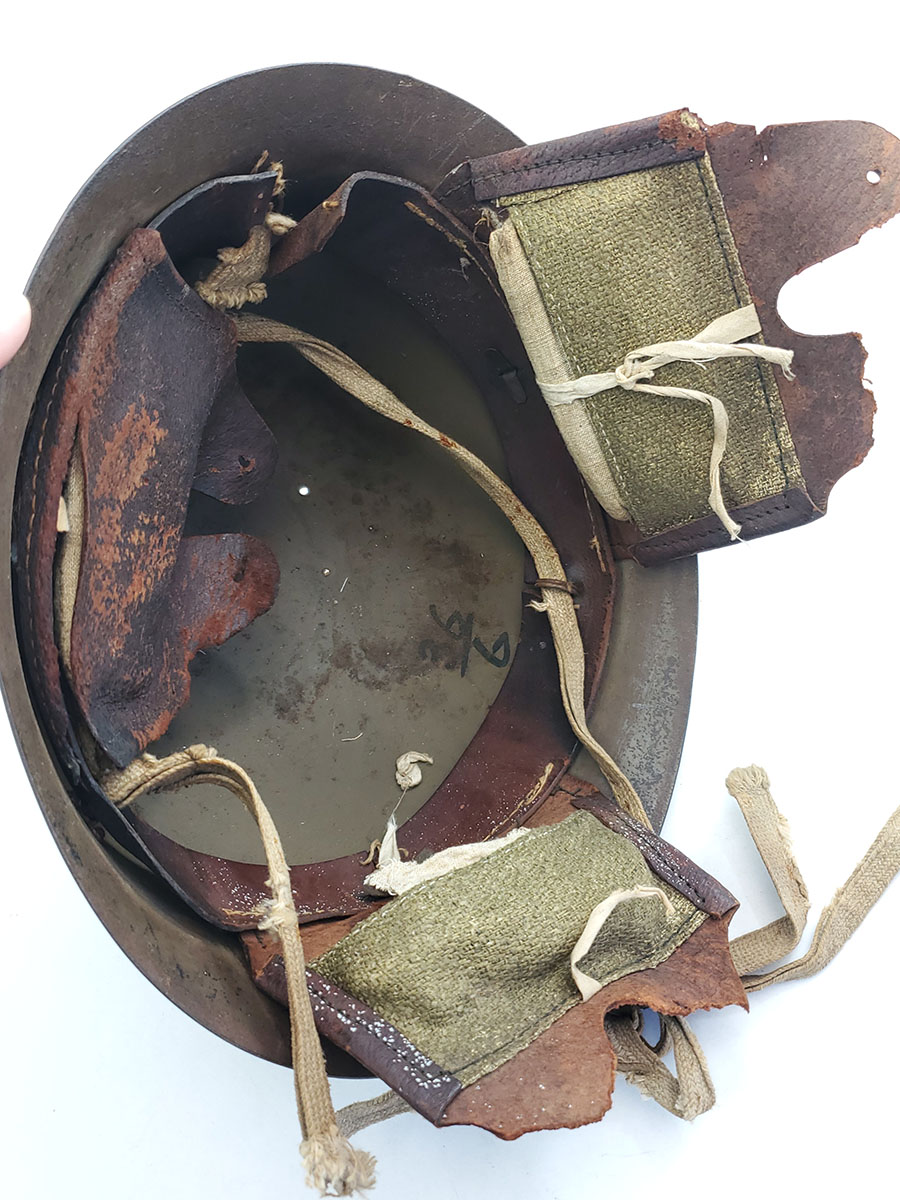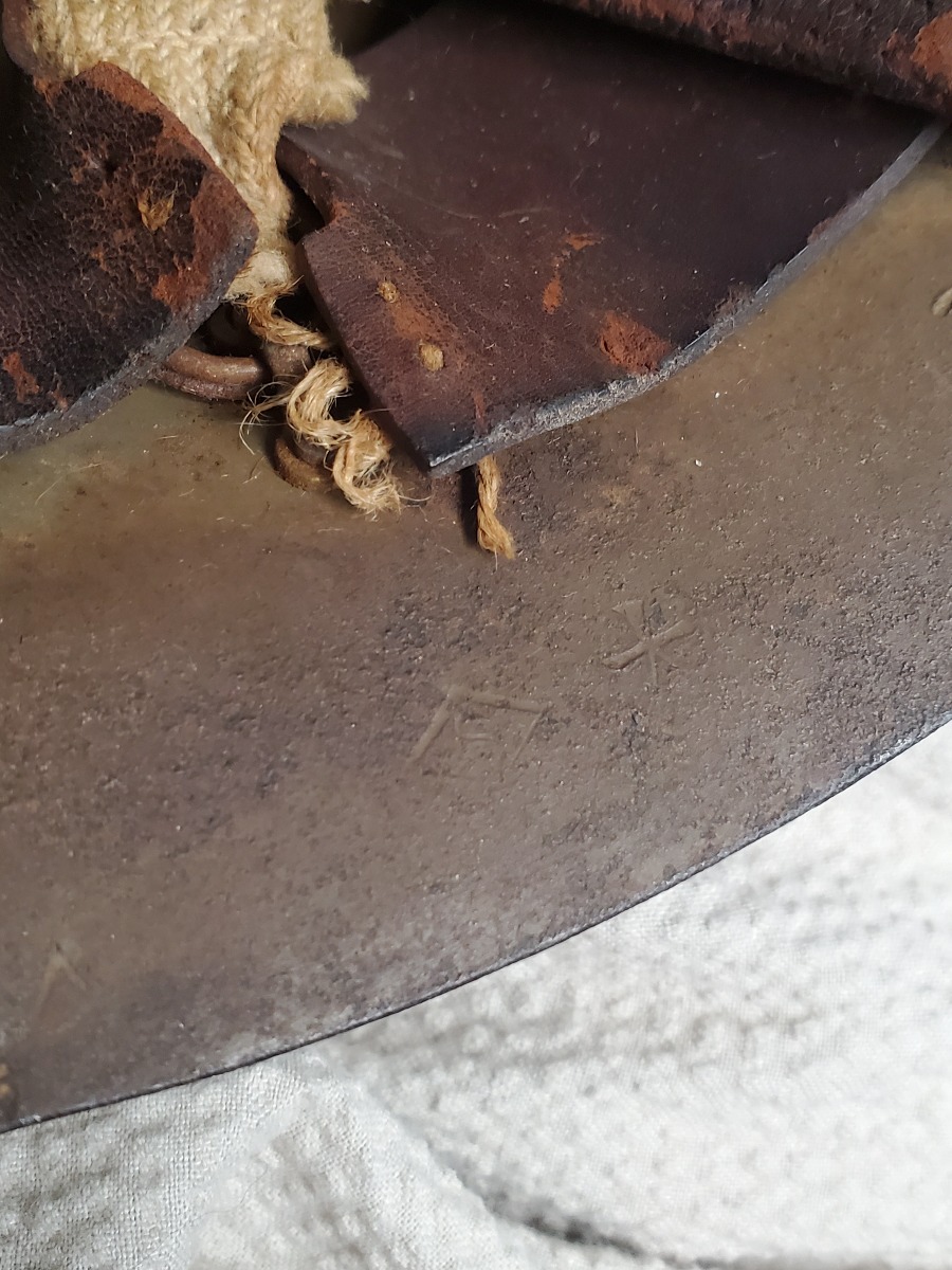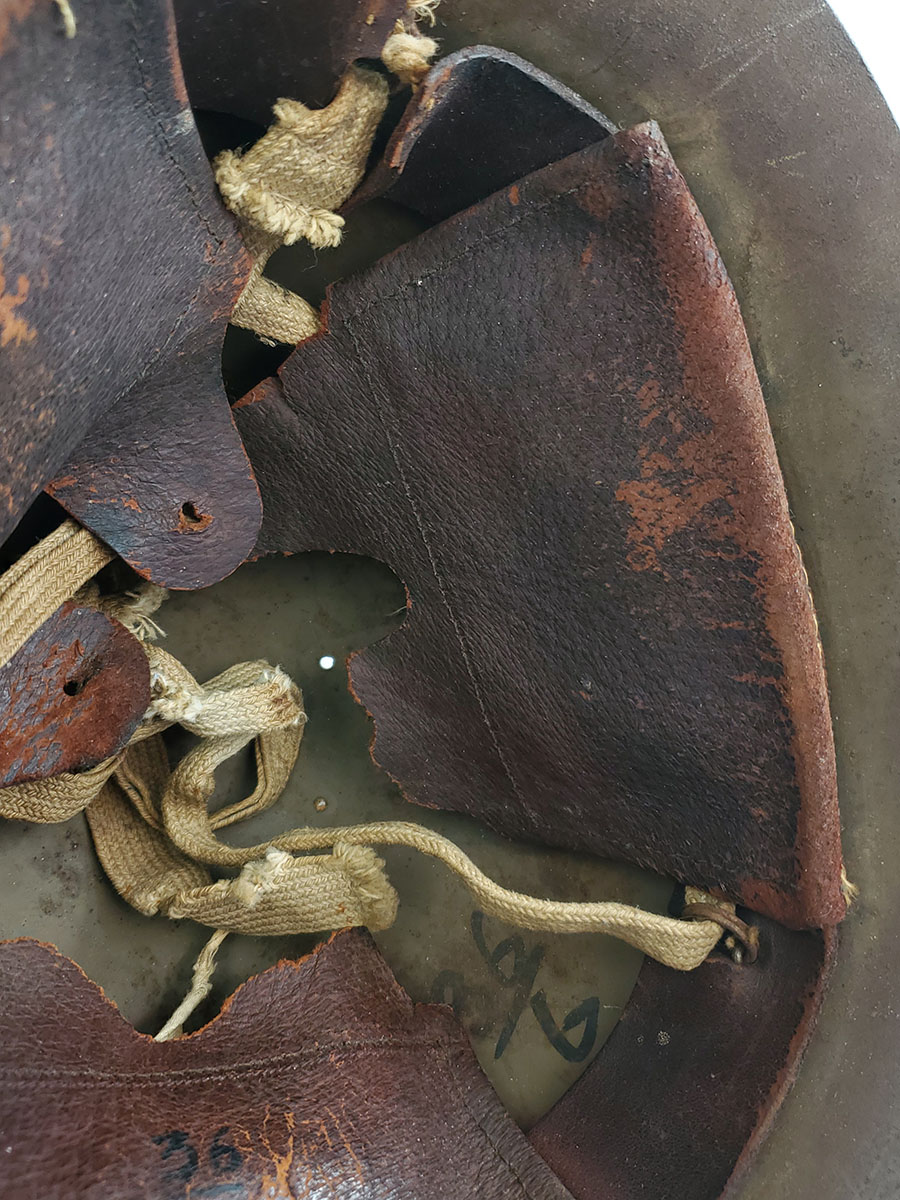 7/17/20 – This is an original WW2 Japanese Naval Landing Forces helmet. These are fairly rare and the equivalent of the USMC for the Japanese military. The helmet is in good overall condition with some typical exterior wear, but no dents or major issues. The interior has two fairly faint stamps into the shell, and has 36/6 in ink. The interior liner is fairly worn, as shown in photos.