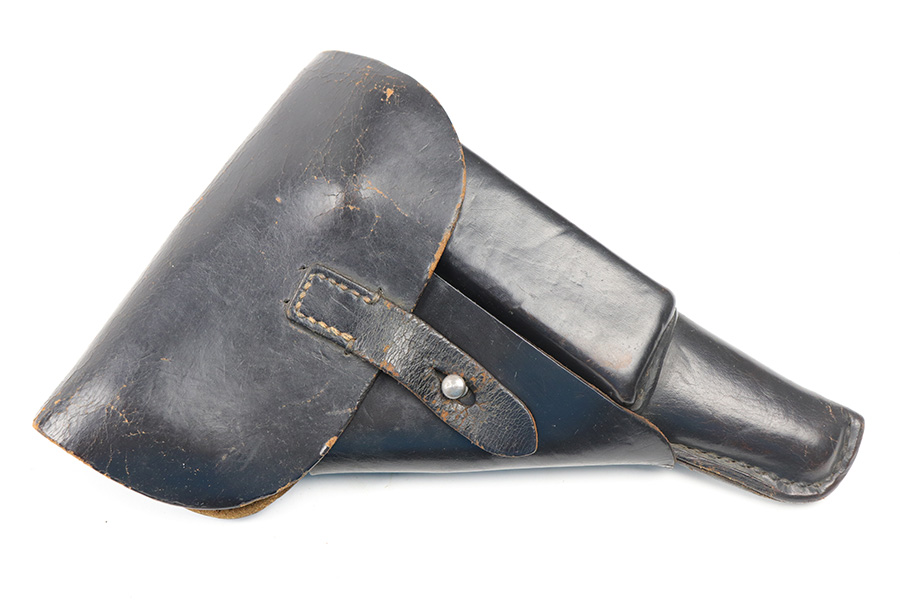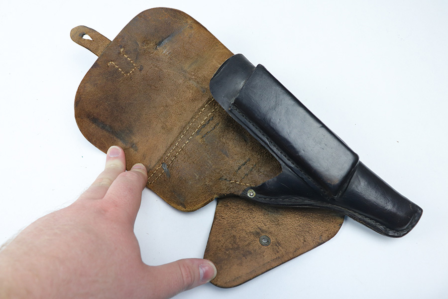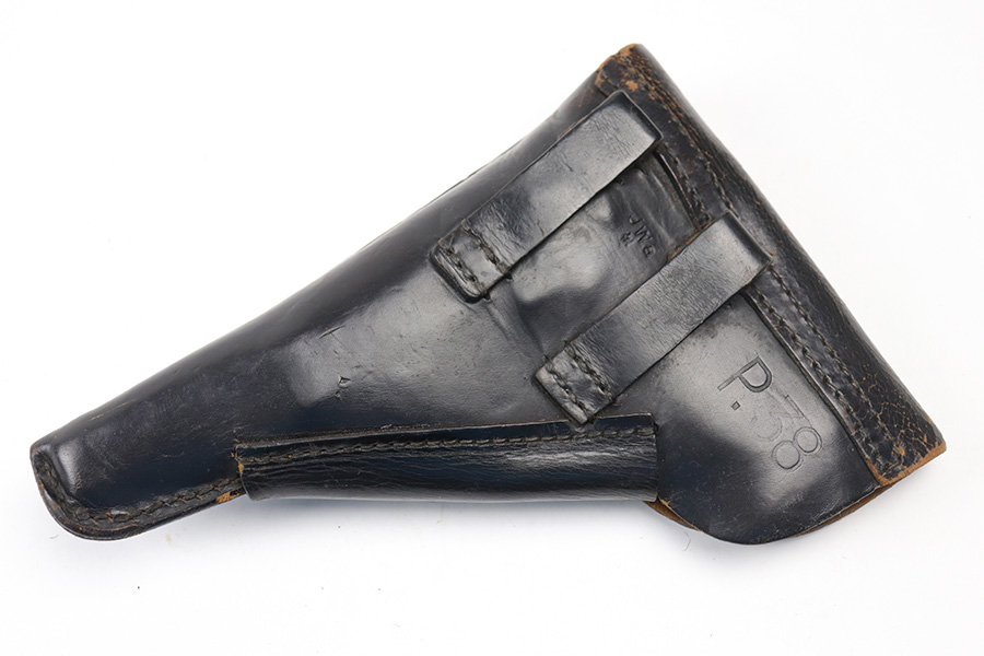 8/26/2021 – This is a nice softshell P.38 holster. It is stamped 1944 and made of black leather. The maker is jWa and the stamp is visible and clean.