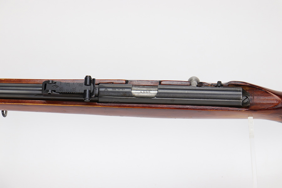 6/16/23 – This is an excellent Soviet T0Z-17-01 Training rifle, chambered in .22 LR and manufactured by Tula in the late 1950’s. The metal parts have retained virtually all of their bluing with almost no signs of wear. The stock is nice overall with no major damage, but there are minor scuffs and scratches throughout. Comes with one proper magazine. Mint bore. Import mark on the barrel.