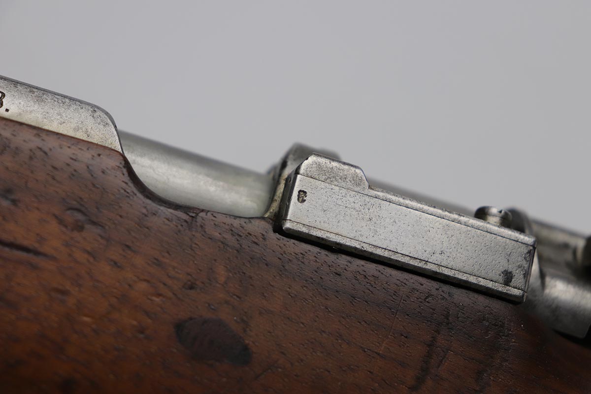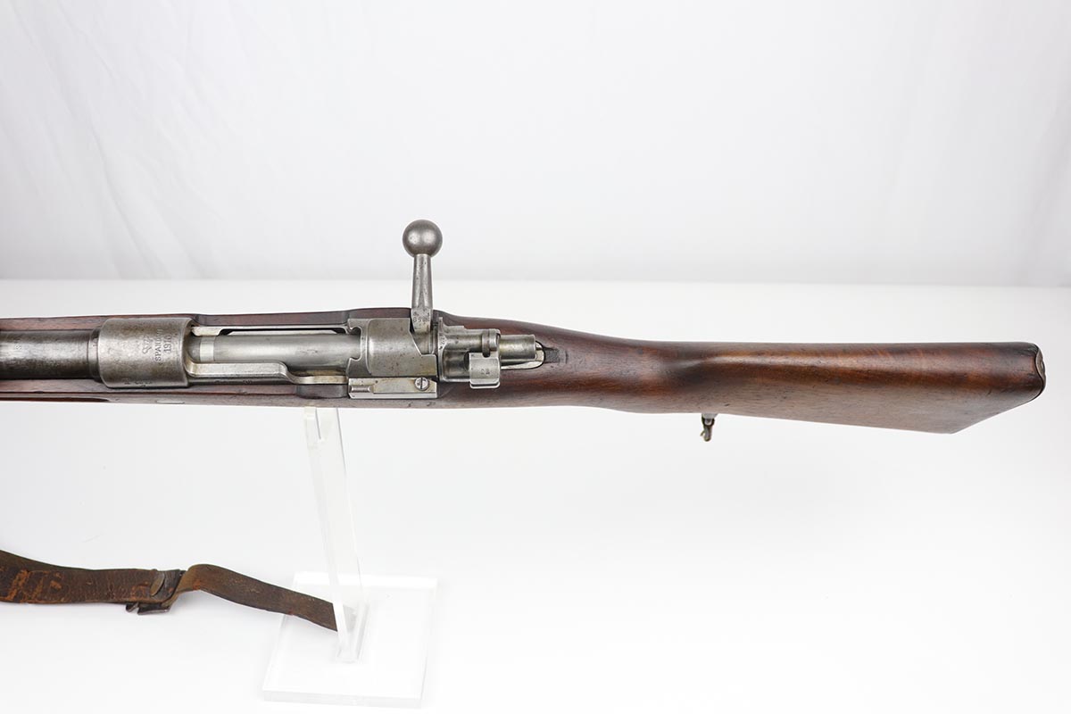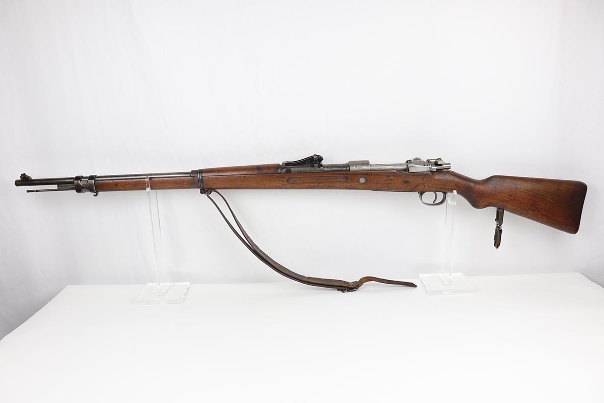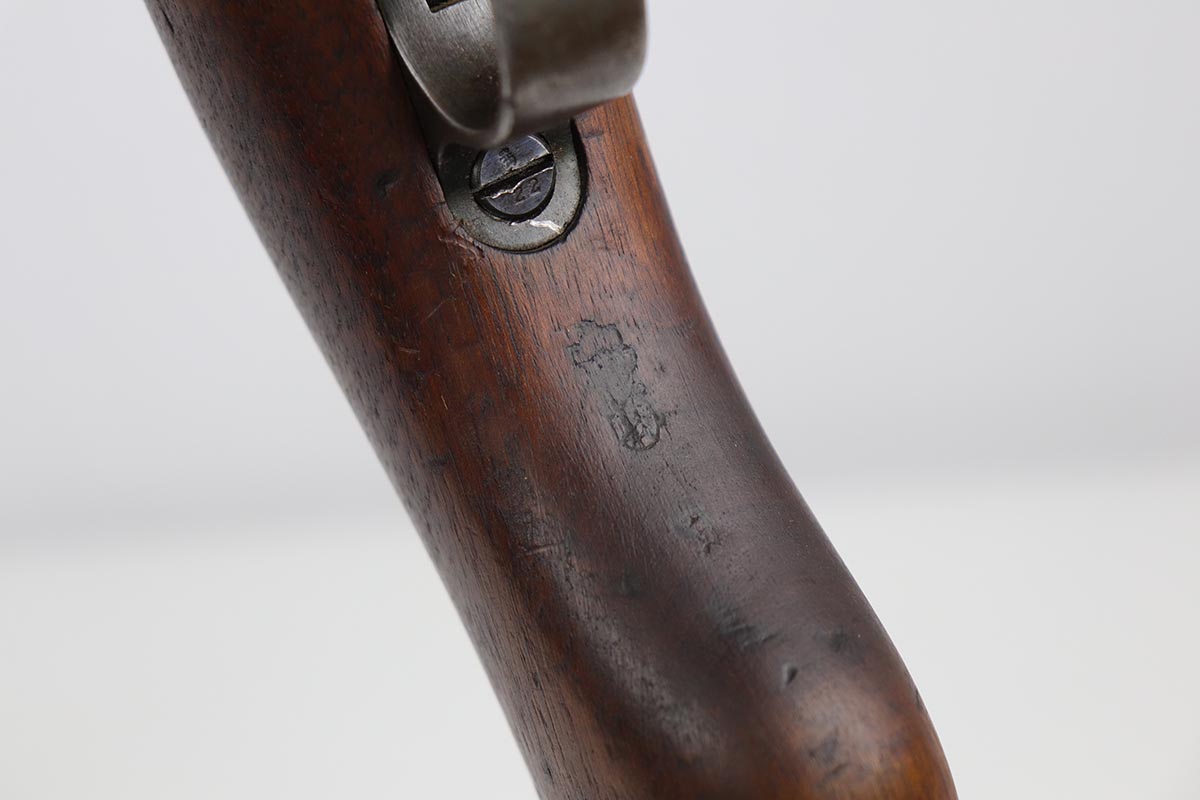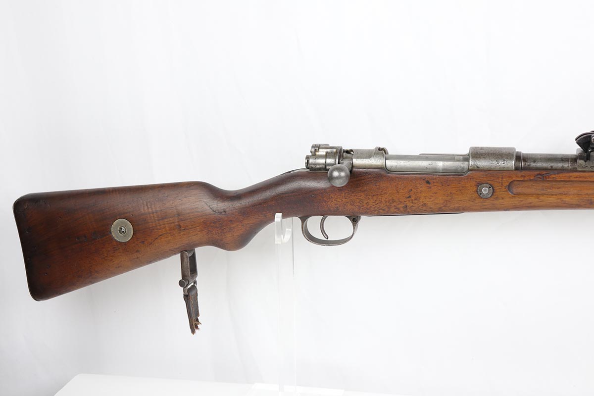 9/12/19 – This is an all matching and original Gewehr 98 that was produced in 1910 at Spandau, the Prussian State Arsenal. These rifles are very difficult to find in all matching and original configuration, and this is the first we’ve had in a a couple years. Matching parts include the stock, buttplate, bolt assembly, receiver, trigger assembly and front band. Only the cleaning rod is mismatched. The rifle even comes with an original sling, though it has obviously been torn. While the finish condition may initially seem poor, it’s worth noting that the receivers and bolts were never blued on this model. There are some areas of discoloration on the receiver and barrel but no corrosion or major defect. The stock is in fantastic shape with several military inspector markings. The bore is incredibly clean and about as nice as you’ll see on this model!