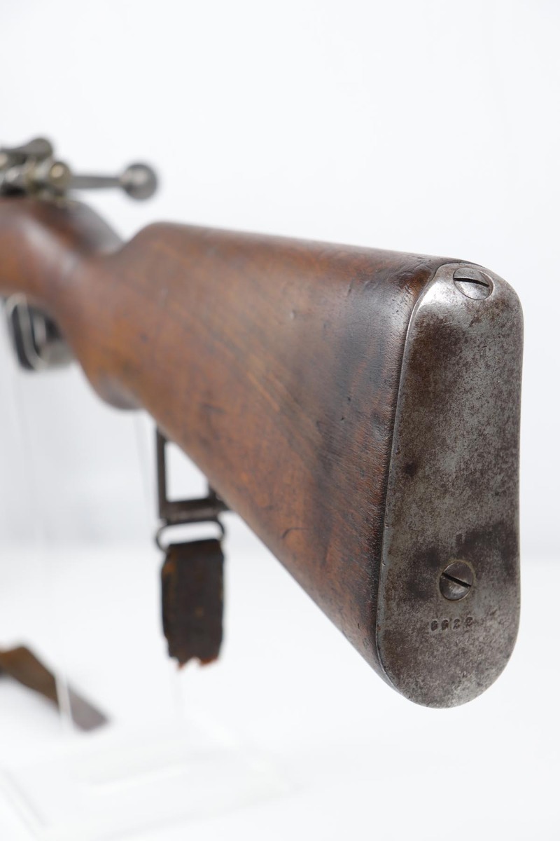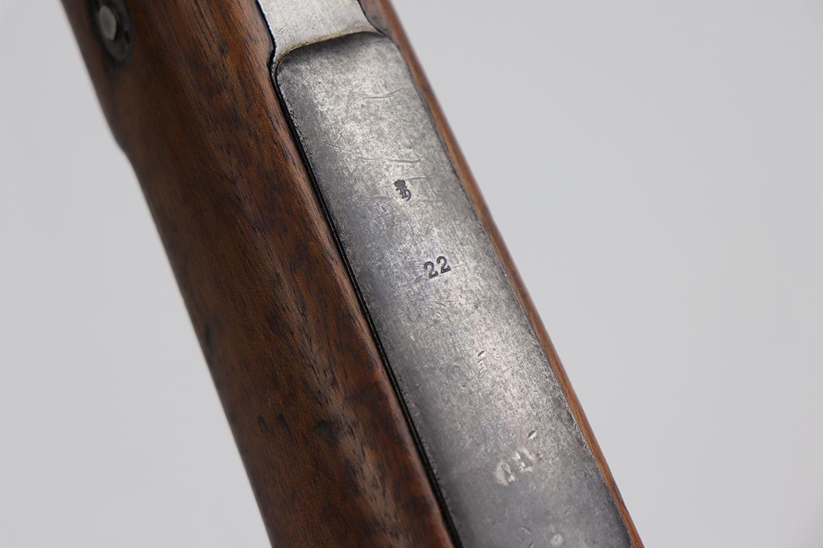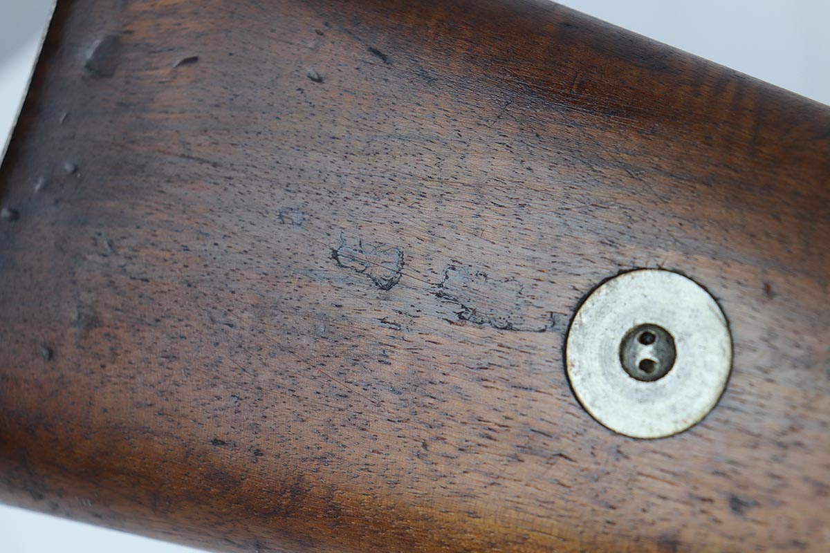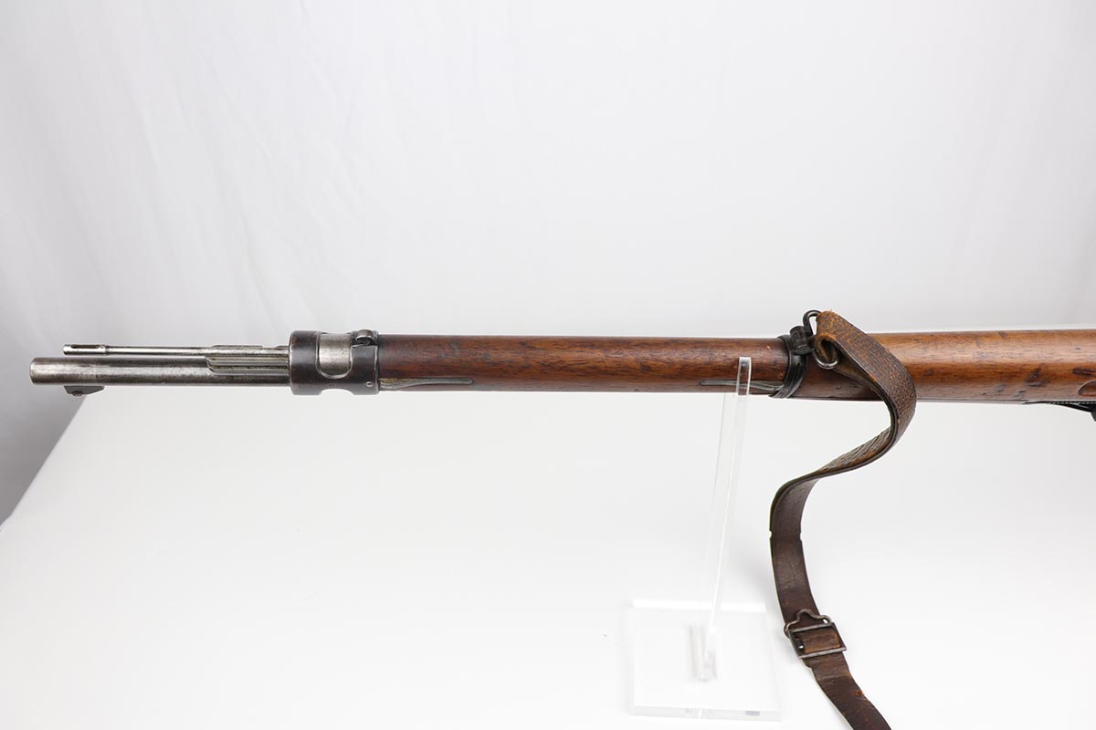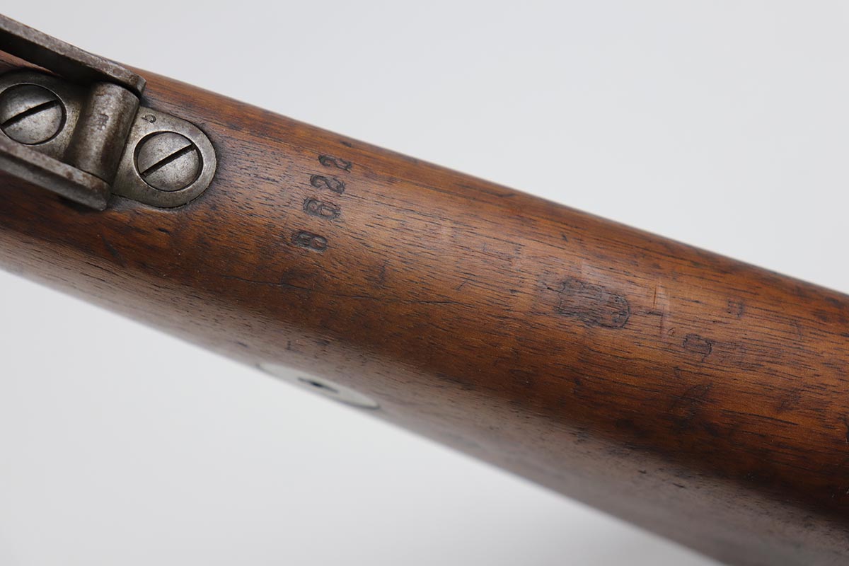 9/12/19 – This is an all matching and original Gewehr 98 that was produced in 1910 at Spandau, the Prussian State Arsenal. These rifles are very difficult to find in all matching and original configuration, and this is the first we’ve had in a a couple years. Matching parts include the stock, buttplate, bolt assembly, receiver, trigger assembly and front band. Only the cleaning rod is mismatched. The rifle even comes with an original sling, though it has obviously been torn. While the finish condition may initially seem poor, it’s worth noting that the receivers and bolts were never blued on this model. There are some areas of discoloration on the receiver and barrel but no corrosion or major defect. The stock is in fantastic shape with several military inspector markings. The bore is incredibly clean and about as nice as you’ll see on this model!