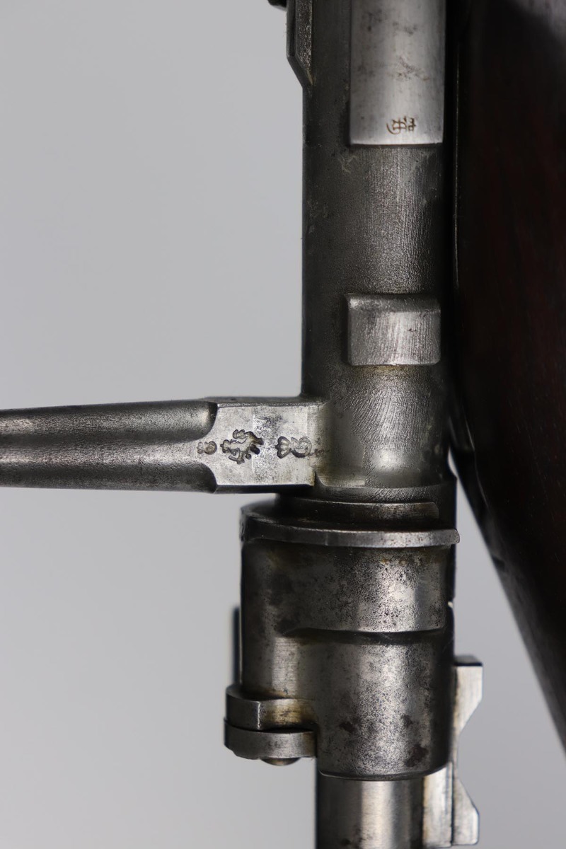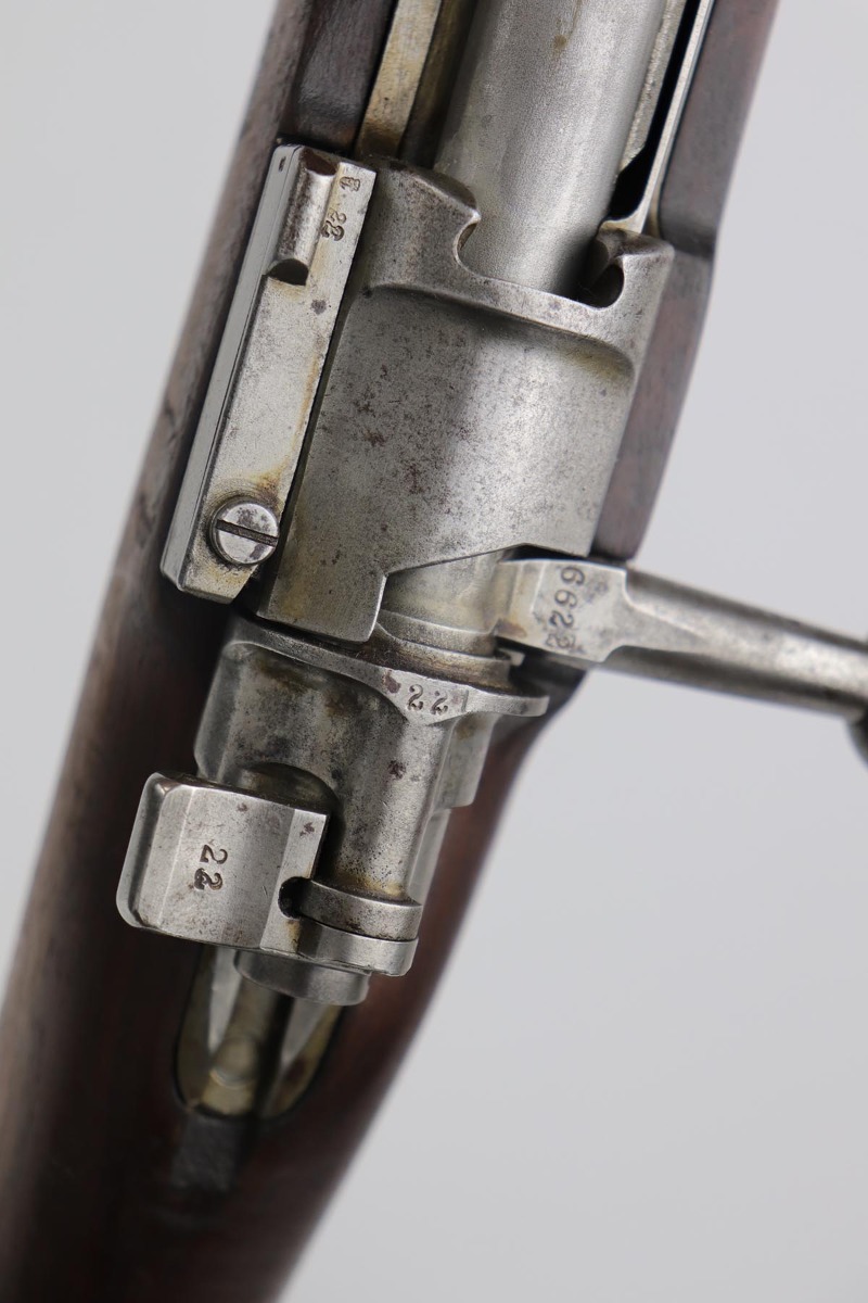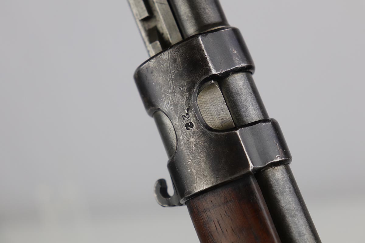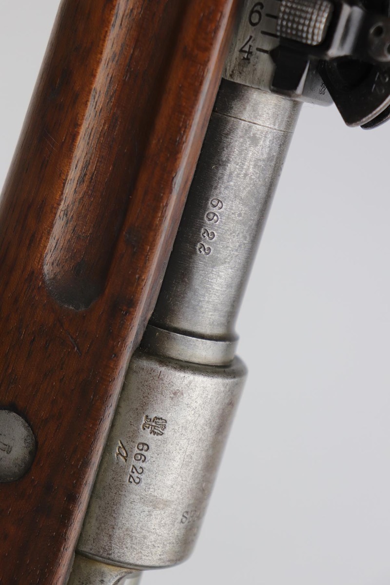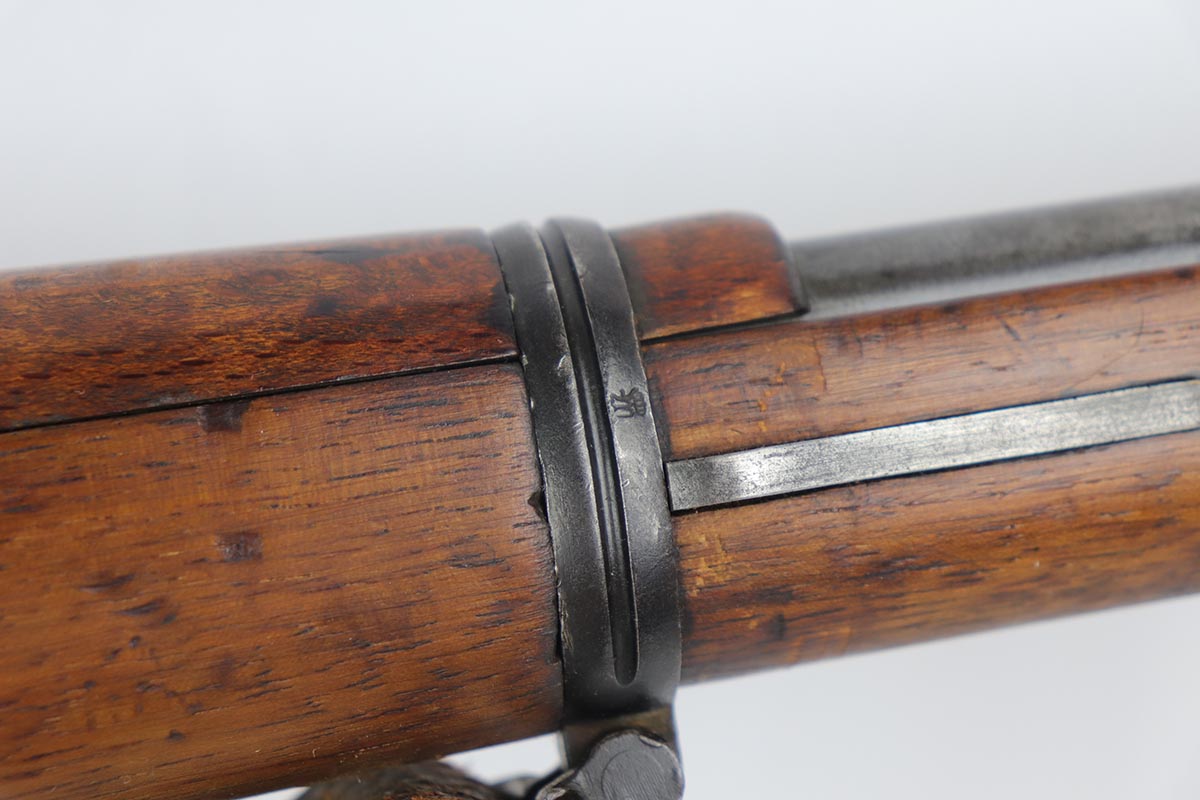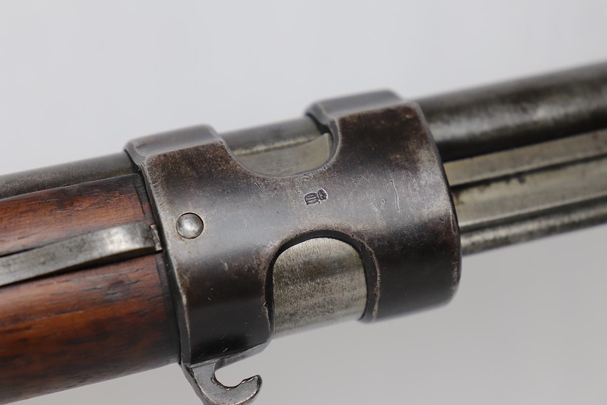 9/12/19 – This is an all matching and original Gewehr 98 that was produced in 1910 at Spandau, the Prussian State Arsenal. These rifles are very difficult to find in all matching and original configuration, and this is the first we’ve had in a a couple years. Matching parts include the stock, buttplate, bolt assembly, receiver, trigger assembly and front band. Only the cleaning rod is mismatched. The rifle even comes with an original sling, though it has obviously been torn. While the finish condition may initially seem poor, it’s worth noting that the receivers and bolts were never blued on this model. There are some areas of discoloration on the receiver and barrel but no corrosion or major defect. The stock is in fantastic shape with several military inspector markings. The bore is incredibly clean and about as nice as you’ll see on this model!