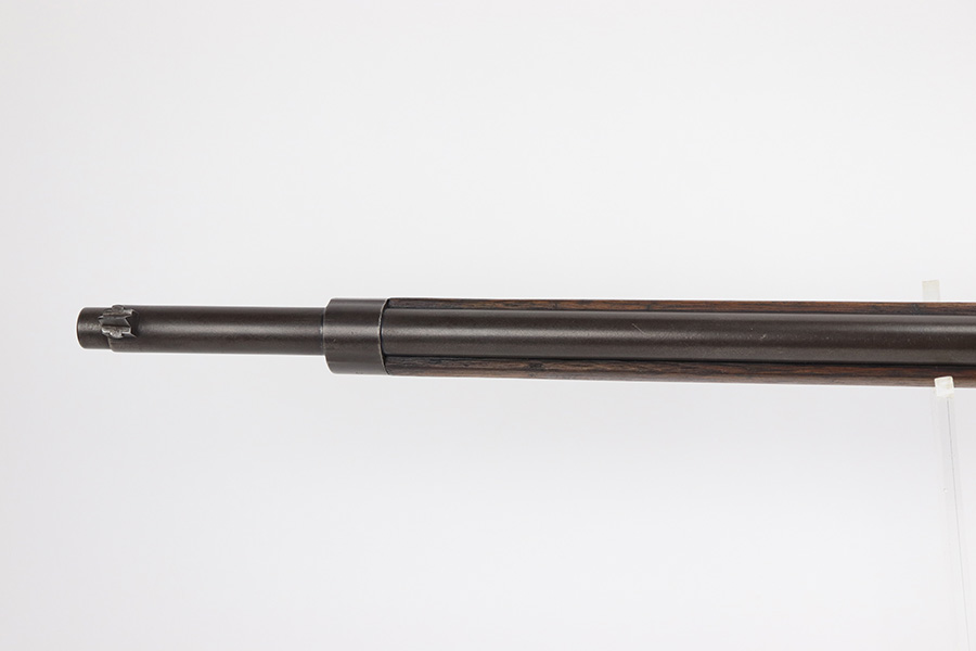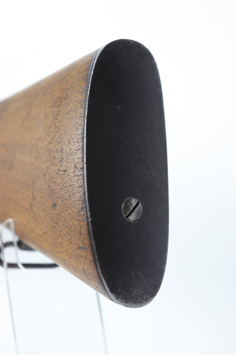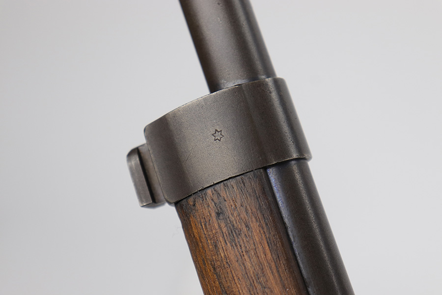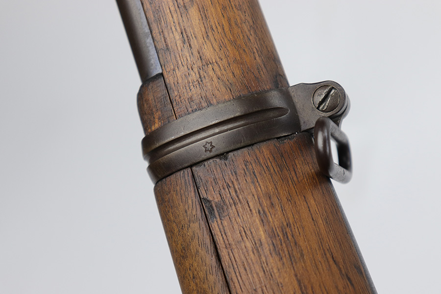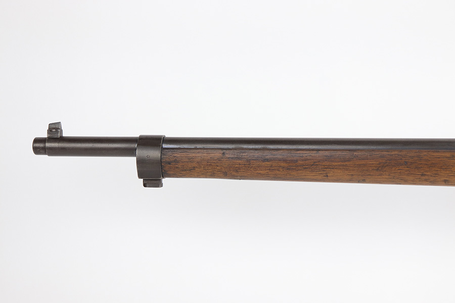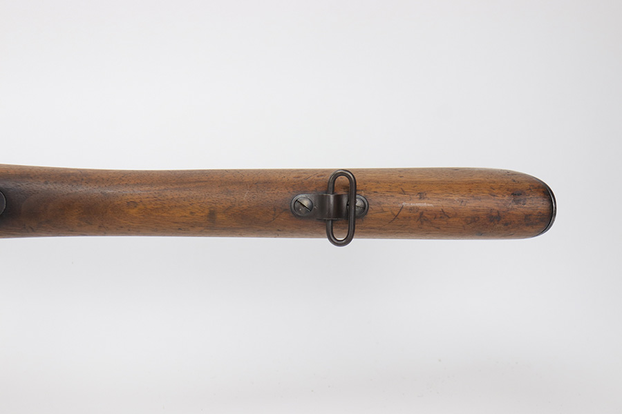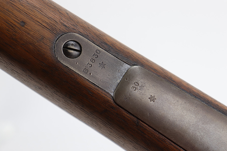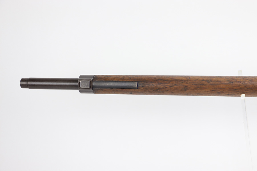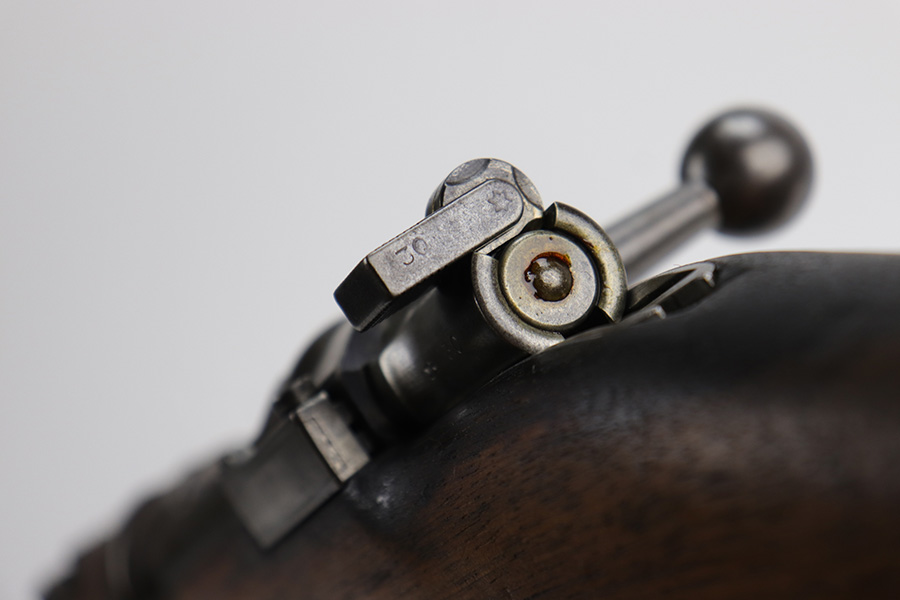 6/21/23 – This is a Spanish American War production Mauser model 1893 Spanish Contract Rifle. This example is early production, as indicated by the date stamp under the Spanish Royal Crest on the receiver, 1894. Manufactured by Ludwig Loewe under Mauser contract. The rifle has all matching numbered parts and is in very good condition with light, natural patina throughout. We rate the finish around 60% although most of the finish is tarnished with brown patina. There is no rust or pitting however, nor any corroded areas of metal. The rear sight is missing the top screw, but this doesn’t seem to affect fit or function of the sight or sight adjustment. The stock is excellent, with evidence of light sanding throughout but no cracks or chips in the wood. The left side of the buttstock still shows the original cartouche stamp of the Royal Crest with date of 1894 underneath. Mechanically sound with a good bore that rates 7/10 overall. The bore has strong rifling but there’s surface patina and mild wear throughout – signs of honest use and aging but no major issues. This is an antique, so no FFL required.