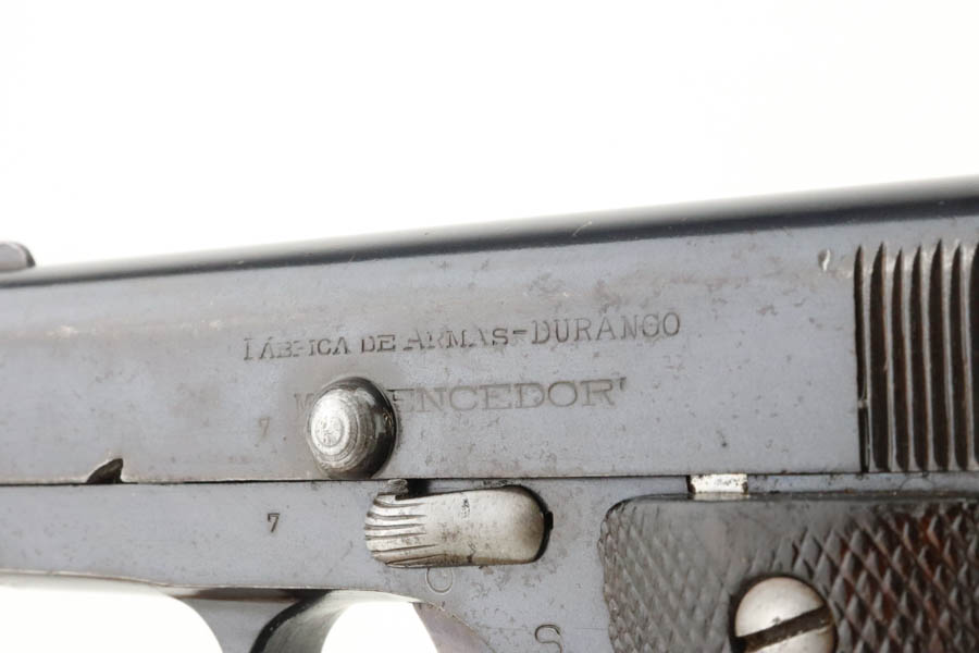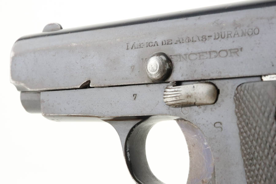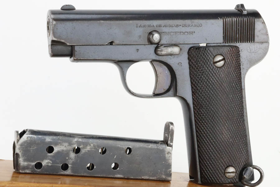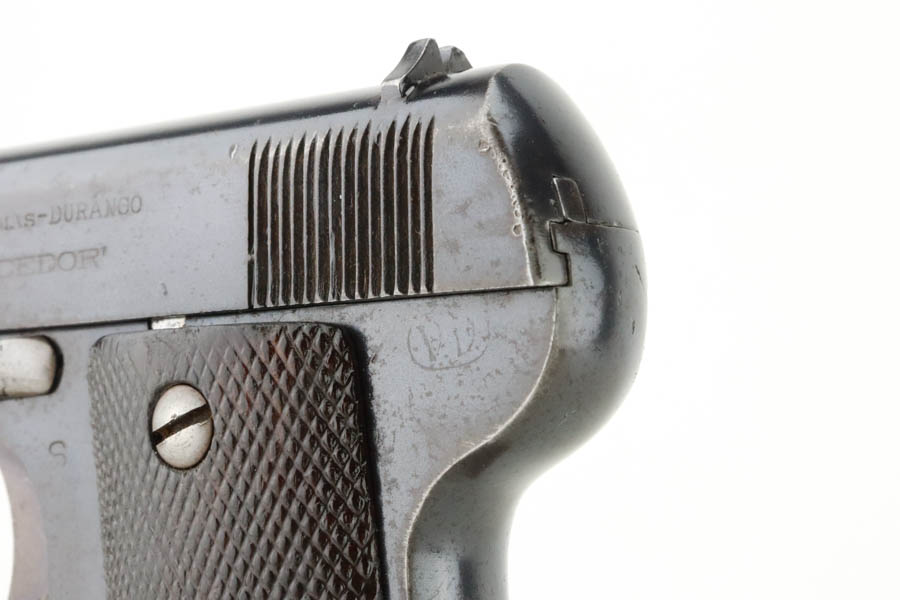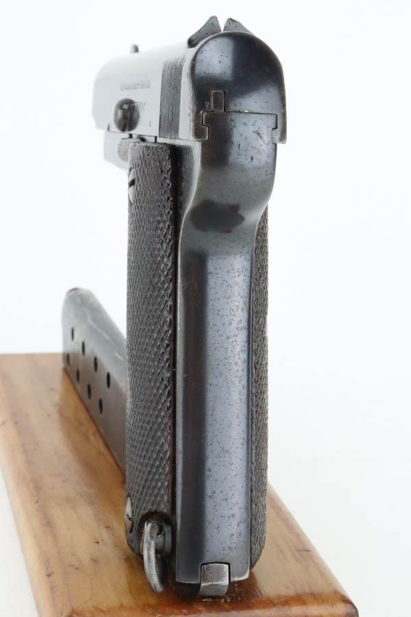 5/31/24 – This is a nice example of a Spanish Eibar / Ruby manufactured in the early 1900’s. Many of these guns were issued to the French military, but this one lacks those French markings. The gun has retained about 93% of its bluing with high edge and muzzle wear. While there is not much actual finish loss, there is light spotty oxidation throughout. Fitted with nice period-correct wood grips. Comes with a numbered but mismatched magazine. Nice bore with good rifling.
