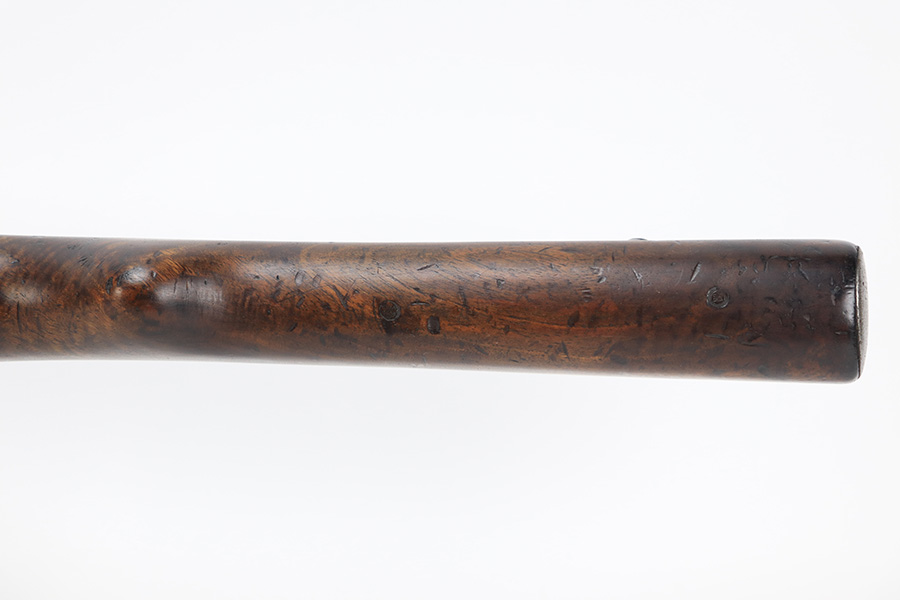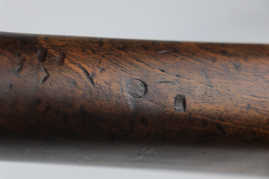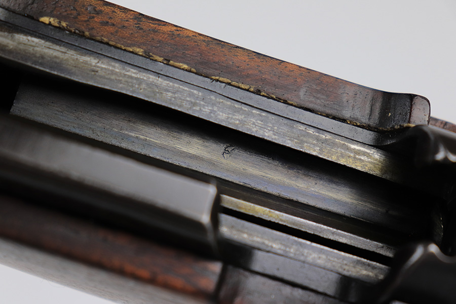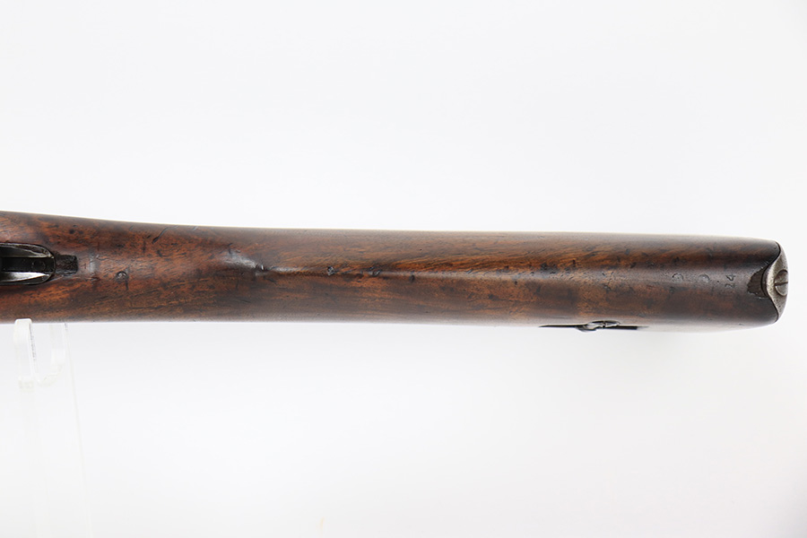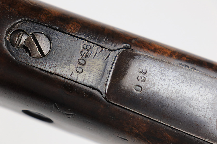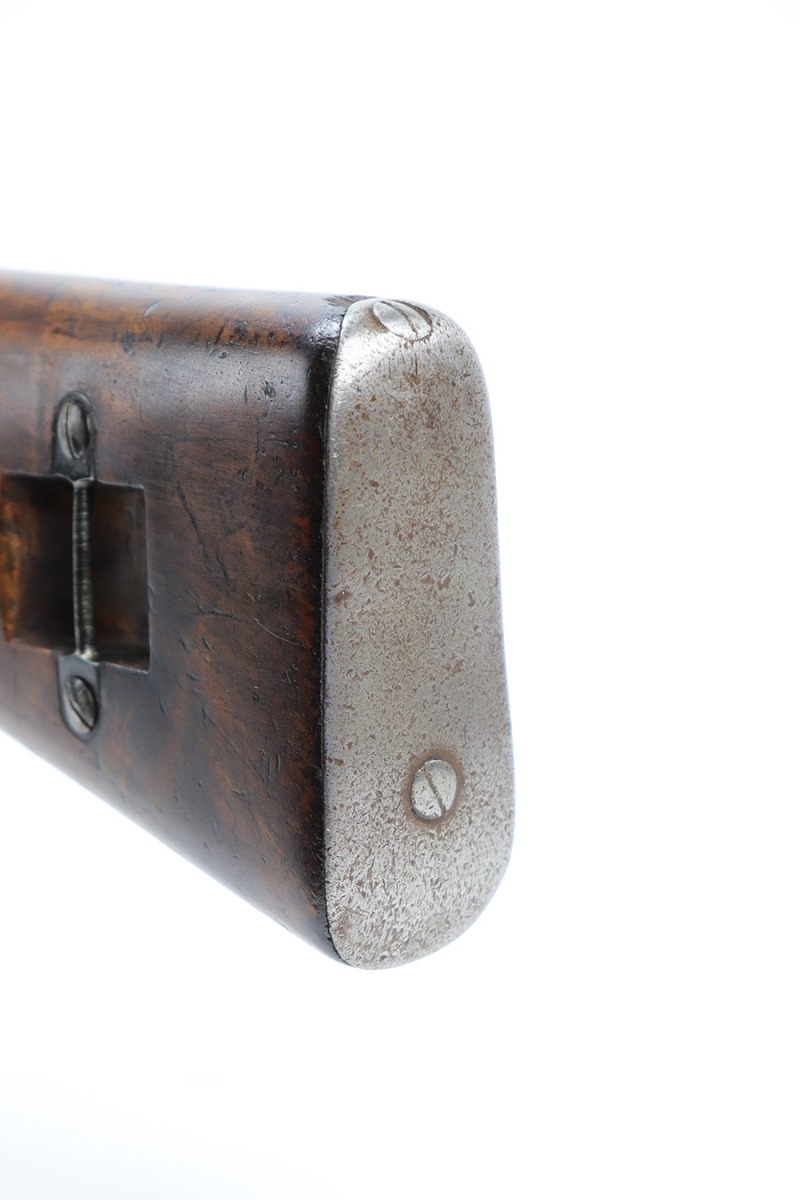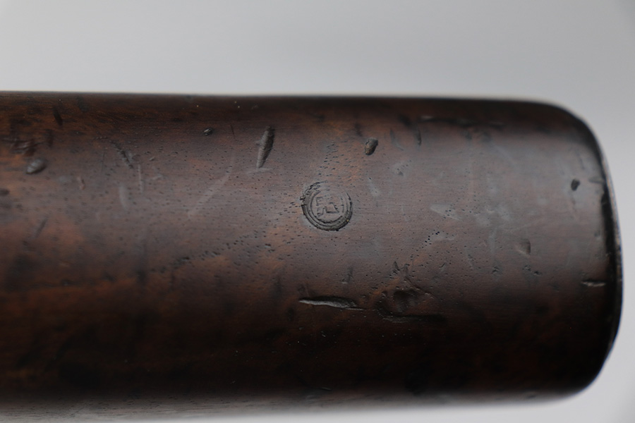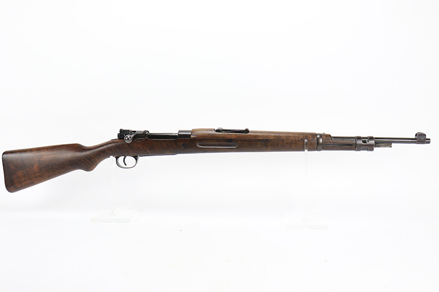 6/2/23 – This is a very nice example of a Spanish Mauser M44, chambered in 8mm Mauser. From the crest on the receiver, this gun was issued to the Spanish Air Force. It is all matching and has no import marks. The metal parts have retained about 92% of their finish with general high edge wear and some thinning on the rear barrel band. While there isn’t a ton of actual finish loss, there is brown patina under the finish on most of the gun. Noticeable dings and spotty brown patina on the butt plate. There are also a few small dings on the floor plate and an area of minor pitting on the trigger guard. There is minor bruising and scratching on the wood furniture and a couple of noticeable gouges on the left side near the rear barrel band. The bore has good rifling, but there is minor frosting in the grooves.
