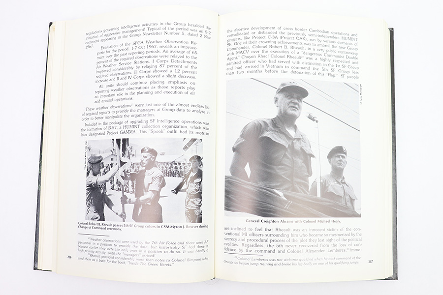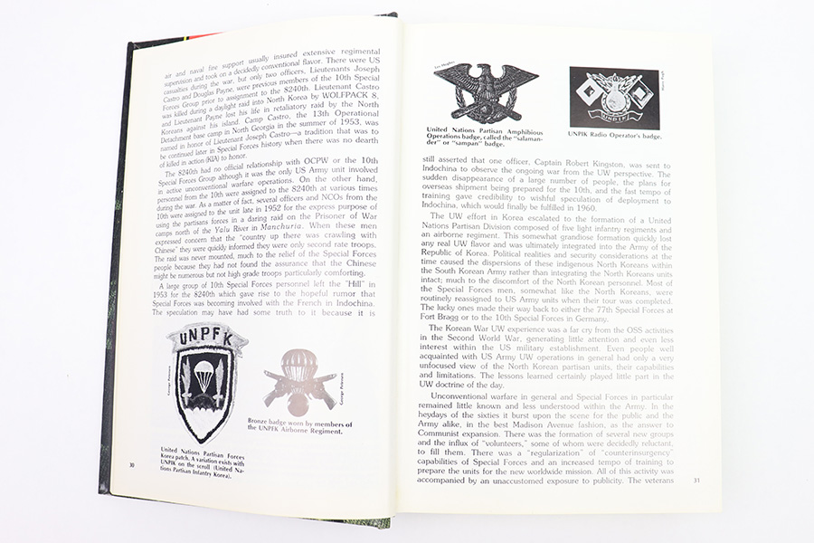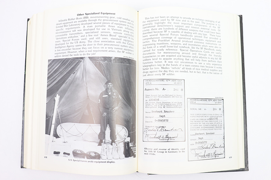 9/20/22 – This is an original 1st edition copy of “1952/1982 Special Forces of the United States Army” by LTC Ian D.W. Sutherland. This book is “an objective, all-encompassing volume the author has provided a wealth of detail concerning Special Forces’ history, organization, training, uniforms, insignia and equipment.” Hardcover book with 723 pages all intact. There are some mild stains on a few pages and signs of aging and previous use but no major issues.
