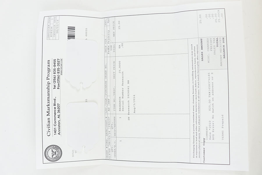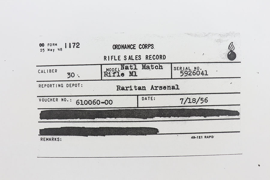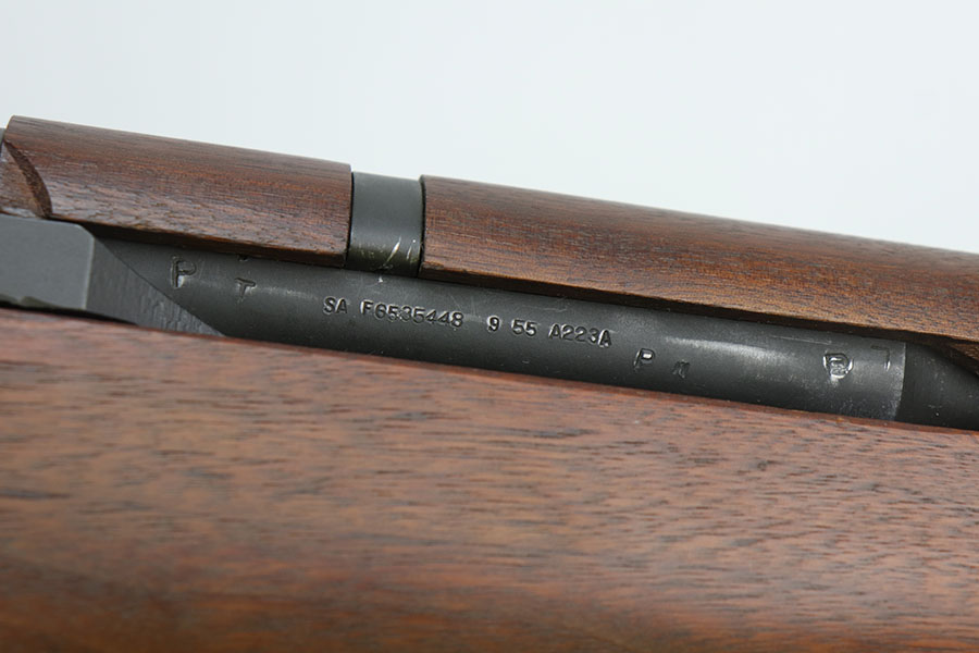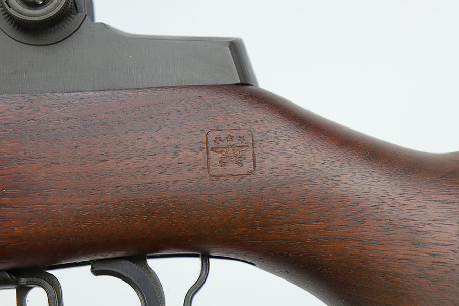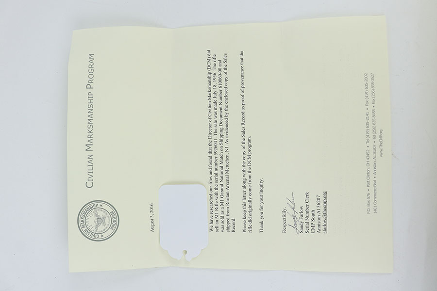 11/16/20 – This is one of the most difficult National Match Garand rifles for collector to acquire. It’s an all original, CMP documented, type 1 gun in mint condition. As the name implies, Type 1 National Match rifles were first introduced in the mid-1950s with the idea of making a rifle that could compete in national match competitions. With that in mind, the best barrels were selected, and paired up with the existing inventory of receivers and using the best components available. These were sold to various shooting clubs, at Camp Perry events and to individuals through the DCM (Director of Civilian Marksmanship) – predecessor of CMP. Only Springfield arsenal parts were used, and the barrel was the only part marked with a “NM” on the left side. Springfield Arsenal stocks were used as well as were marked with a “serifed P in the circle” and a DOD cartouche on the left side. This particular gun is all correct and has all of the distinguishing characteristics mentioned above. It is in spectacular mint condition with beautiful parkerizing on the metal and practically no wear on the stock. Sharp DOD cartouche and and the “Circled P” on the stock. Barrel dated 9/55. It is accompanied by a letter from CMP (Civilian Marksmanship Program), verifying that the rifle was indeed sold as a National Match rifle. Many of these were eventually converted to Type 2 configurations, with very few originals (like this one) remaining in factory Type 1 configuration. Impossible to upgrade!