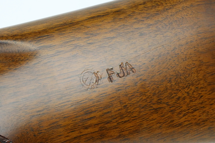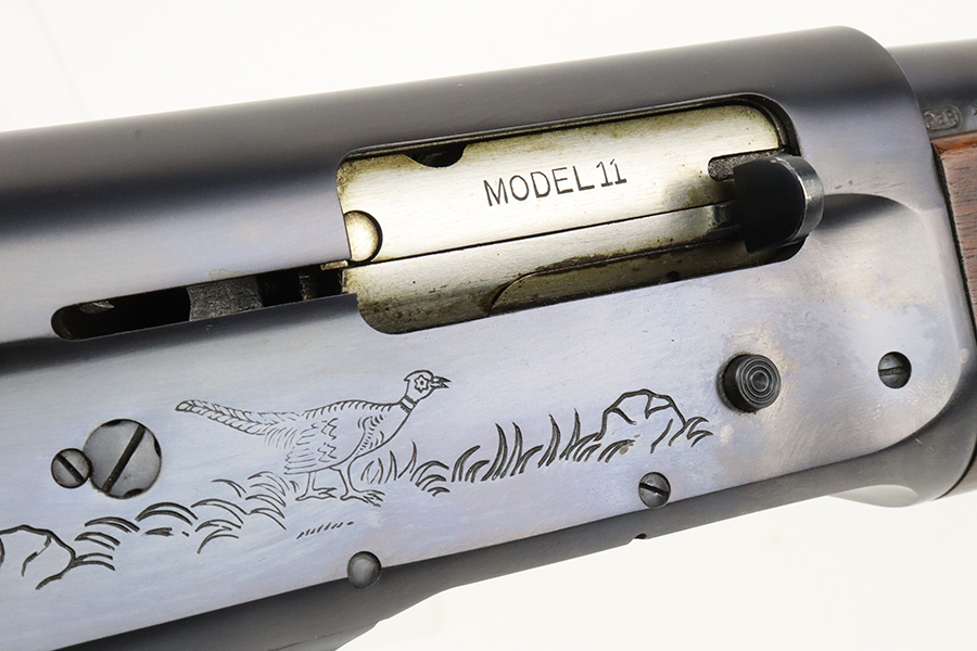 2/3/24 – This is a spectacular example of a US Military issued Remington Model 11 riot shotgun. This example has a crisp duck scene on each side, with ‘U.S.’ and flaming bomb proofs present on receiver and barrel. The stock is marked with crossed cannons cartouche. This particular gun is stunning and has retained virtually all of its original finish with no signs of wear to note. Beautiful wood stock. Minty bore.