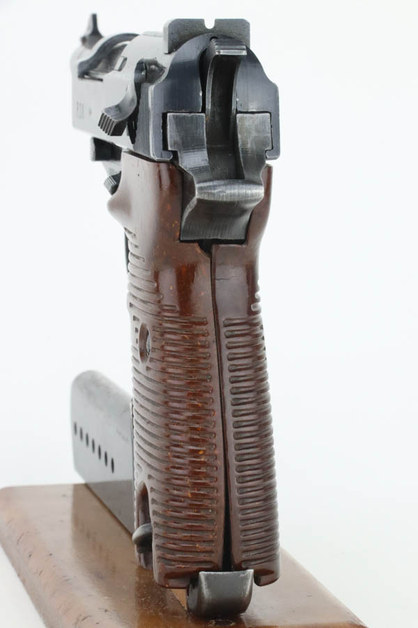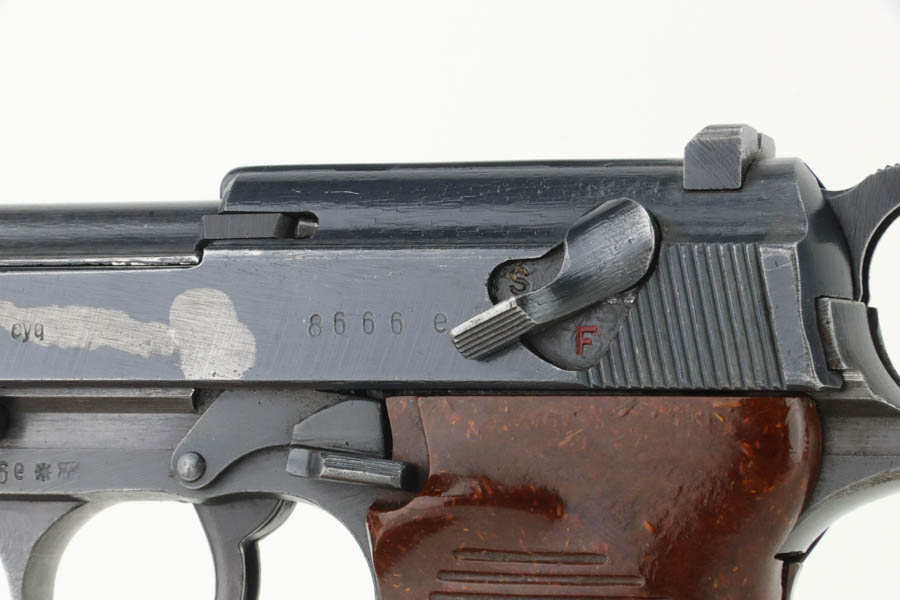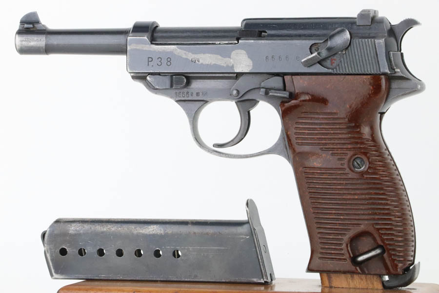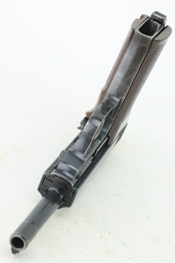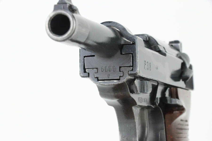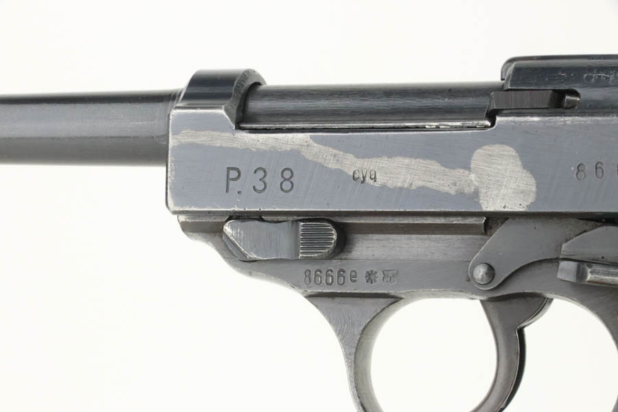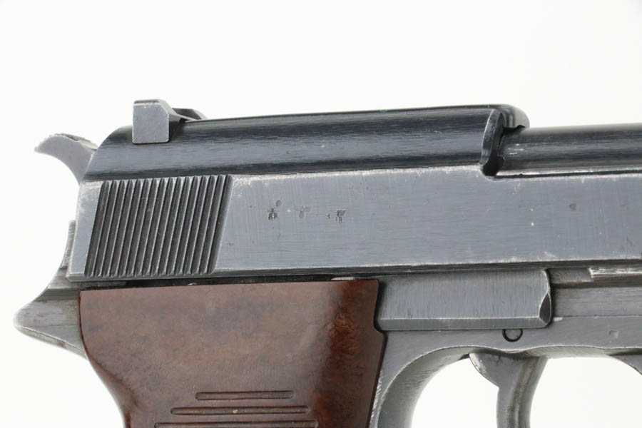 09/13/2024 – For sale is a P.38 pistol made at the Spreewerk Factory in 1943. The pistol has a very nice bluing but sadly there was a solvent that spilled onto the gun and stripped some of the finish on the slide. There is some finish wear on the front grip as well. The bore is bright with good rifling. The pistol has matching serial numbers on the frame, slide, barrel, and locking block.
